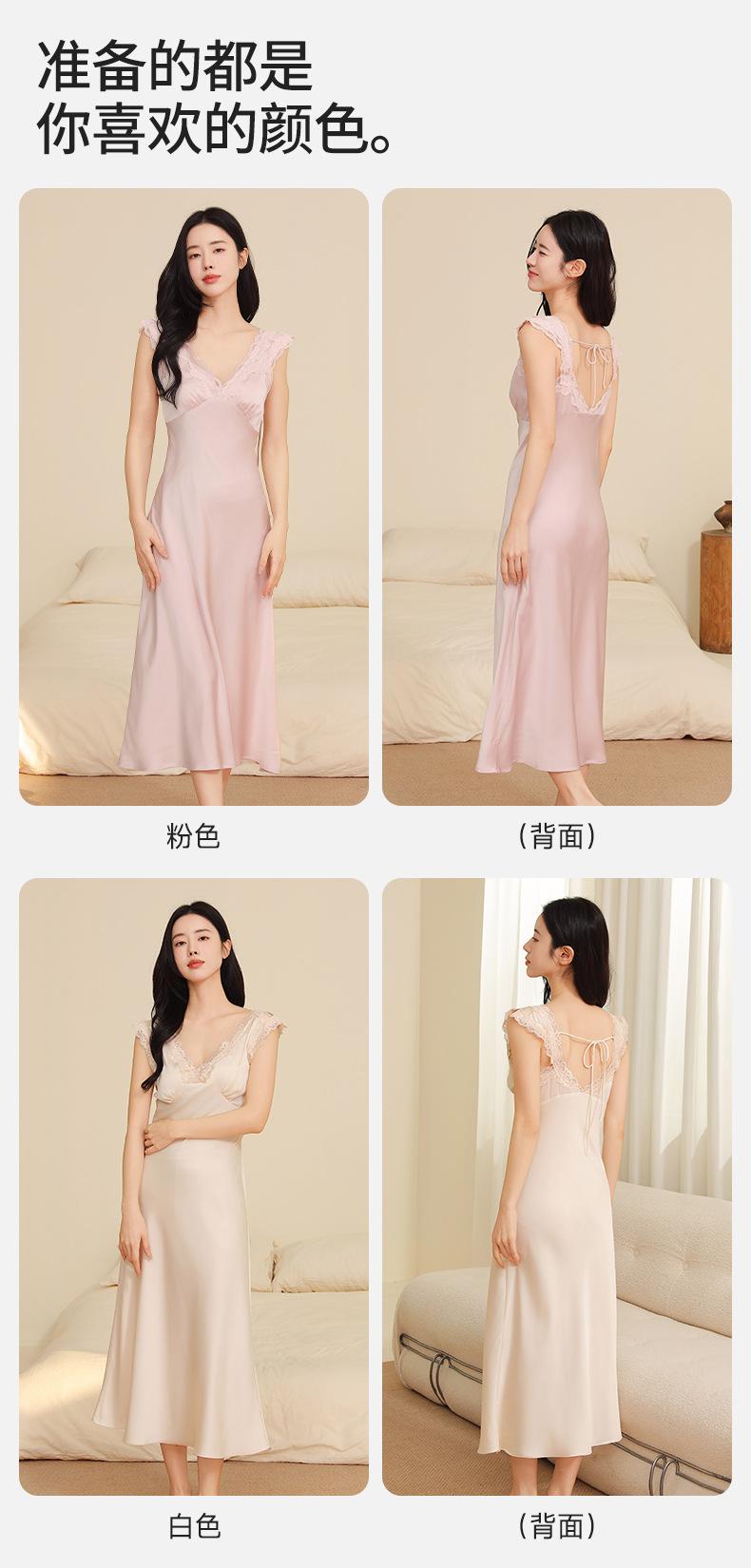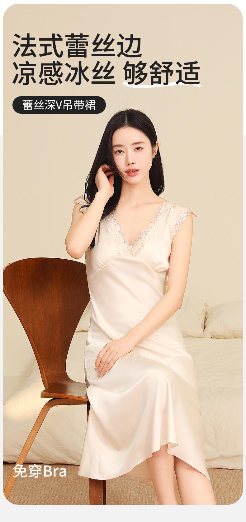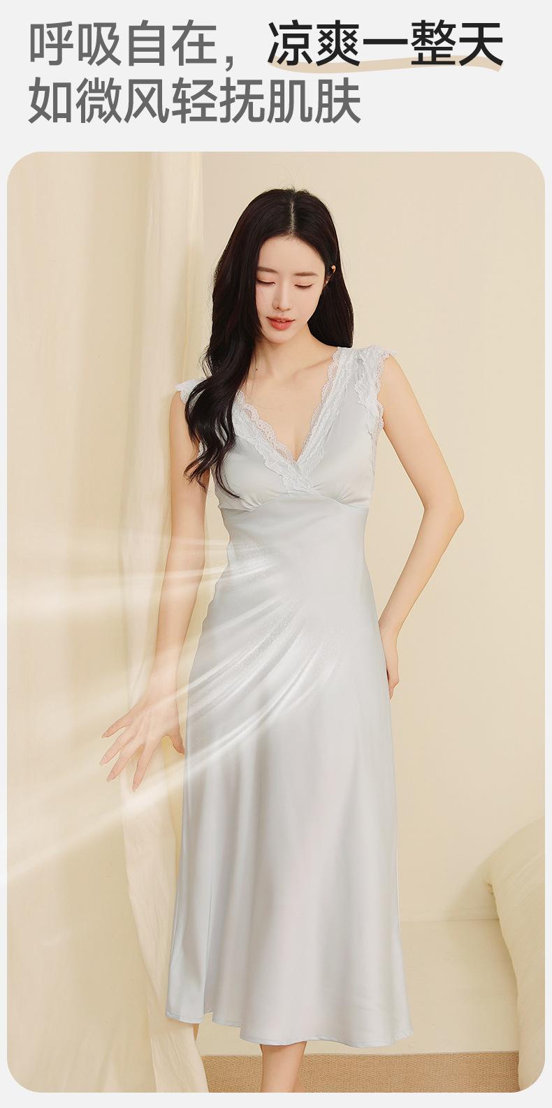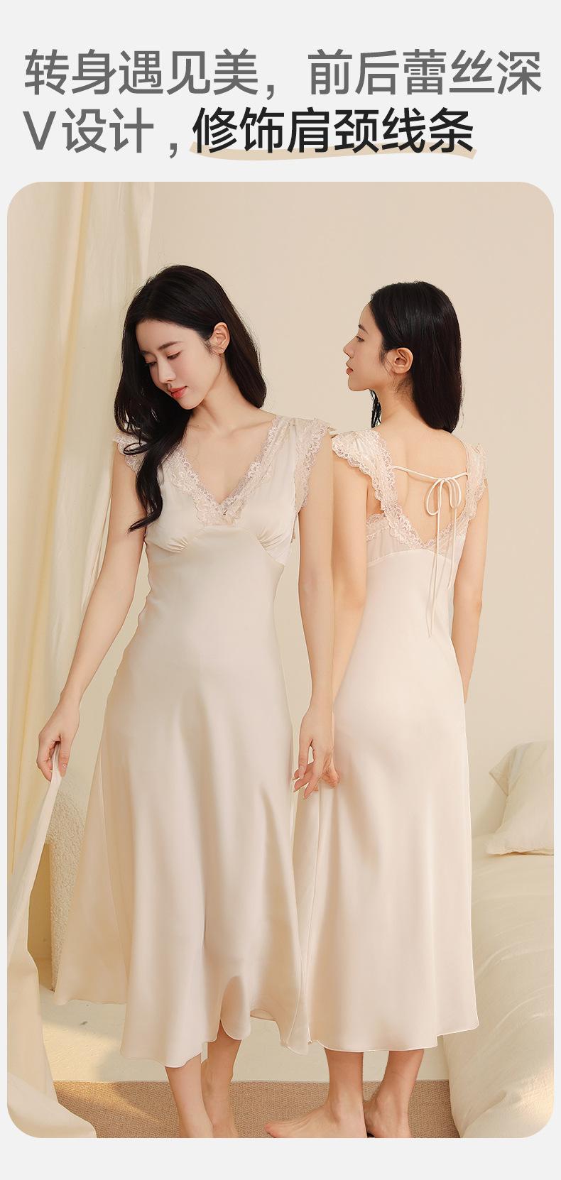 Camisón Yu Zhaolin Encaje Francés de Alta Gama Estilo Pura Lujuria Pijama Sexy Vestido Largo de Seda de Hielo para Mujer