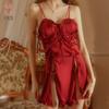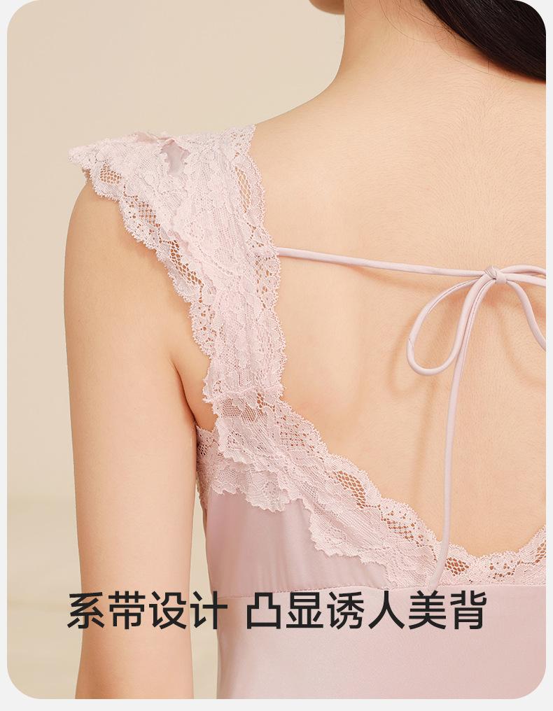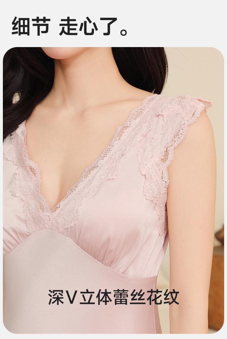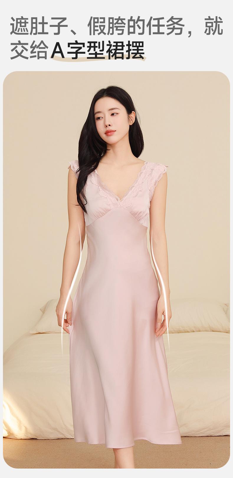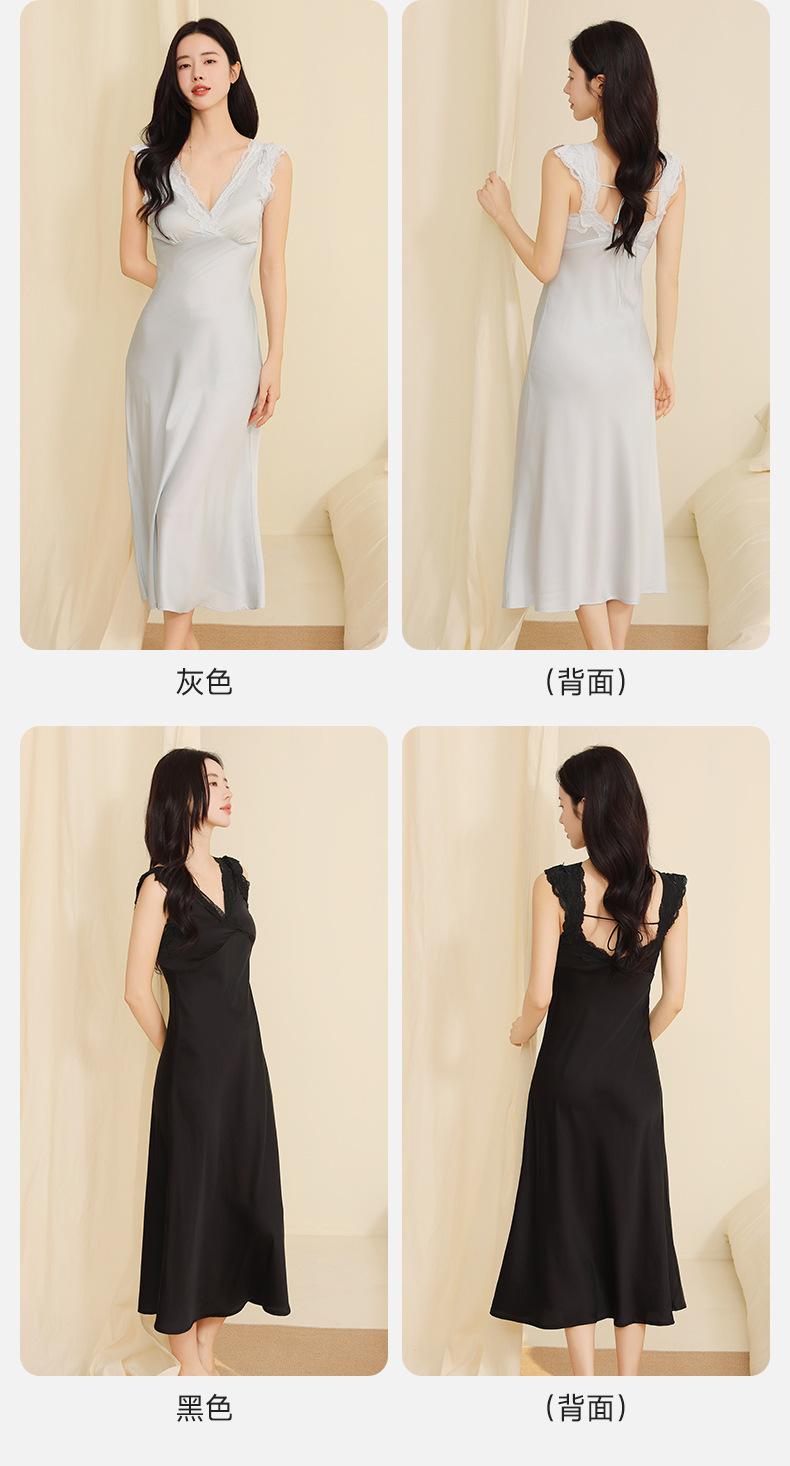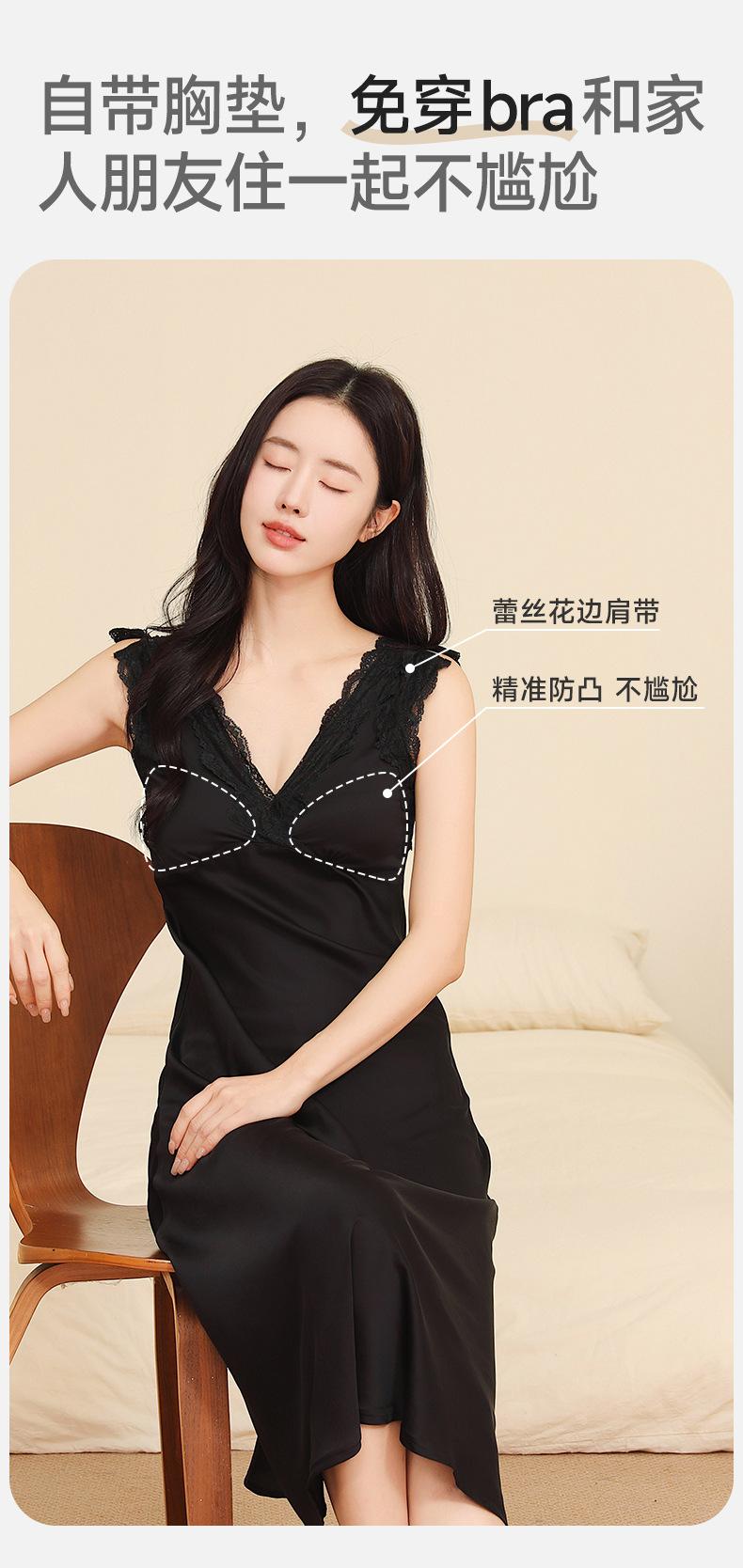 Camisón Yu Zhaolin Encaje Francés de Alta Gama Estilo Pura Lujuria Pijama Sexy Vestido Largo de Seda de Hielo para Mujer