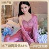Pijama Sexy Transfronterizo de Comercio Exterior Europeo y Americano Encaje Casual Ropa para el Hogar Traje Camisola Corazón Rojo Talla Grande