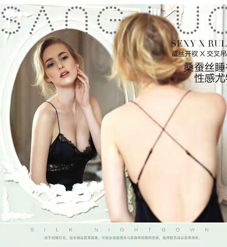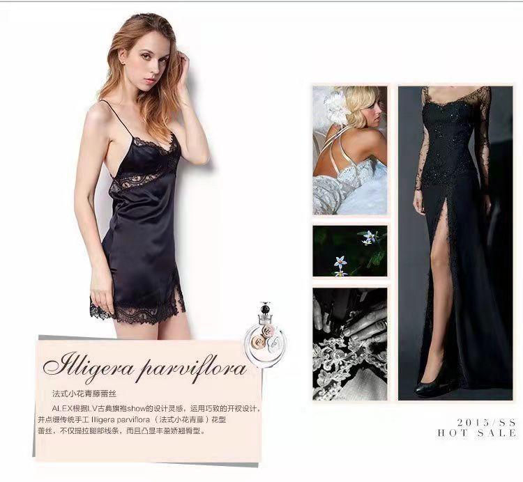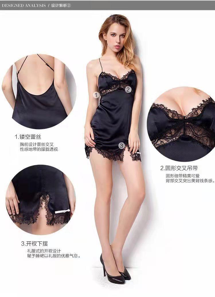 Nuevo estilo de ropa interior sexy con tirantes y espalda descubierta, pijama fino para mujer, vestido de encaje sexy de verano, ropa de hogar de imitación de seda