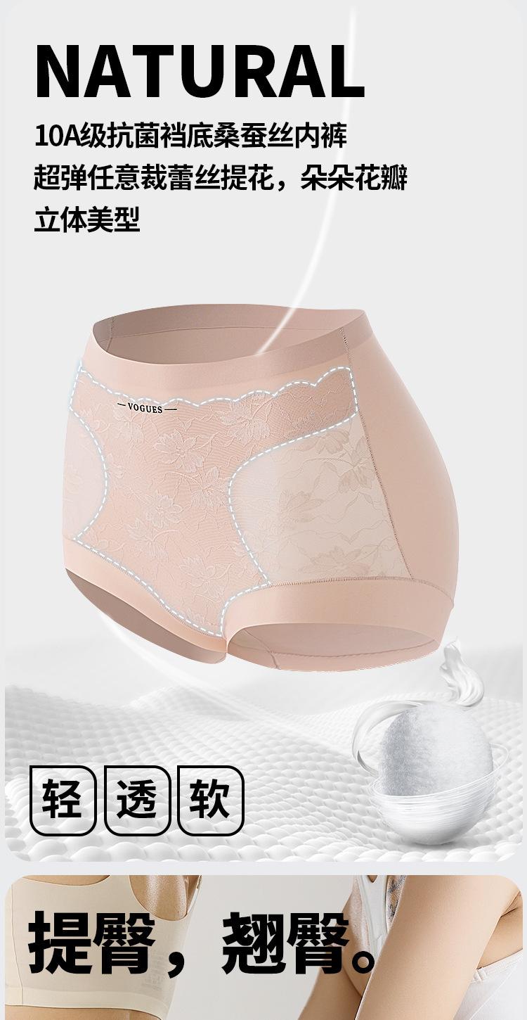 Pantalones Abdominales de Cintura Alta Pantalones de Cadera para Mujer 10A Seda de Morera Antibacterianos Cintura Transpirables Nuevos Calzoncillos Moldeadores sin Marcas para Mujer