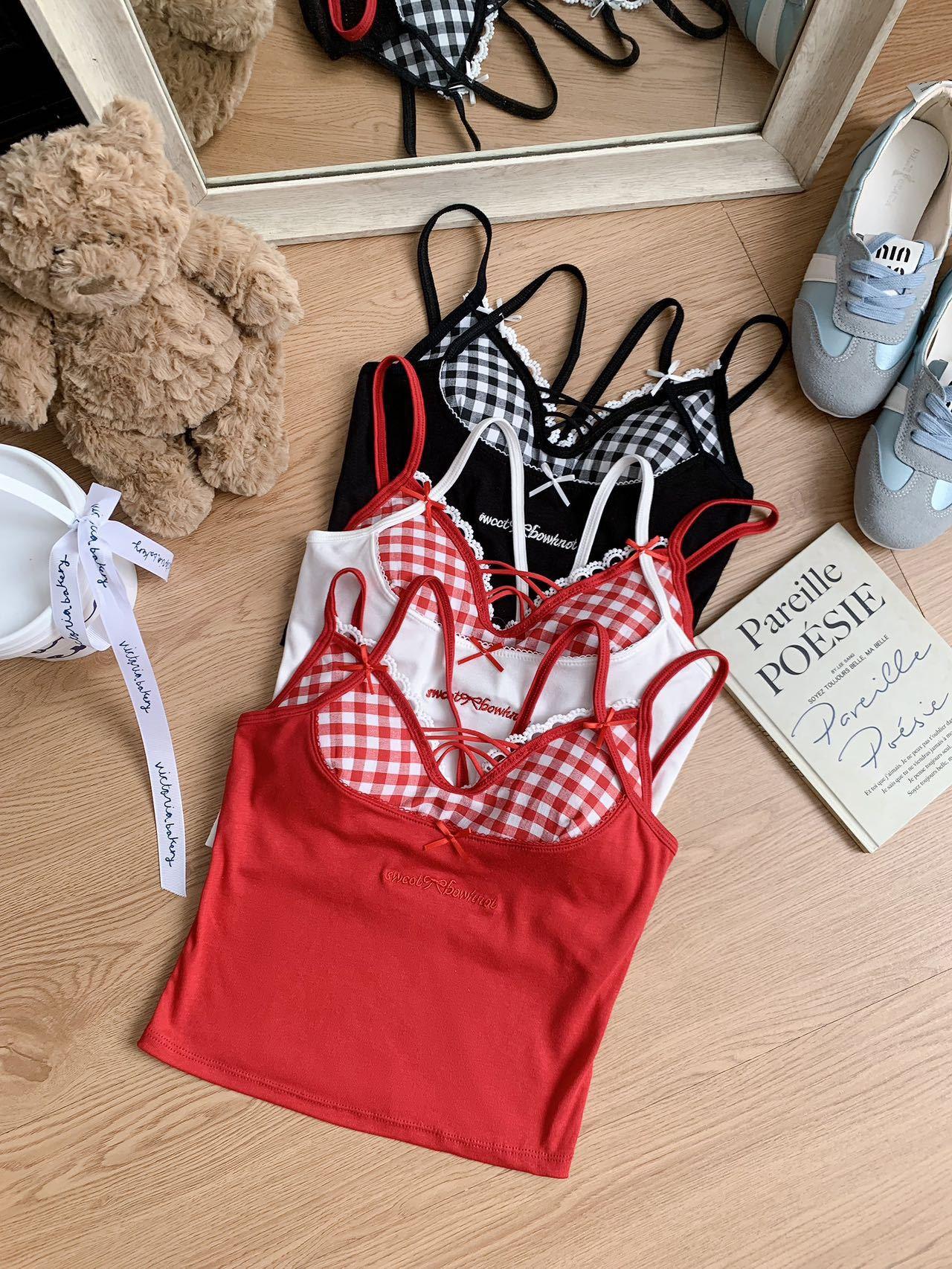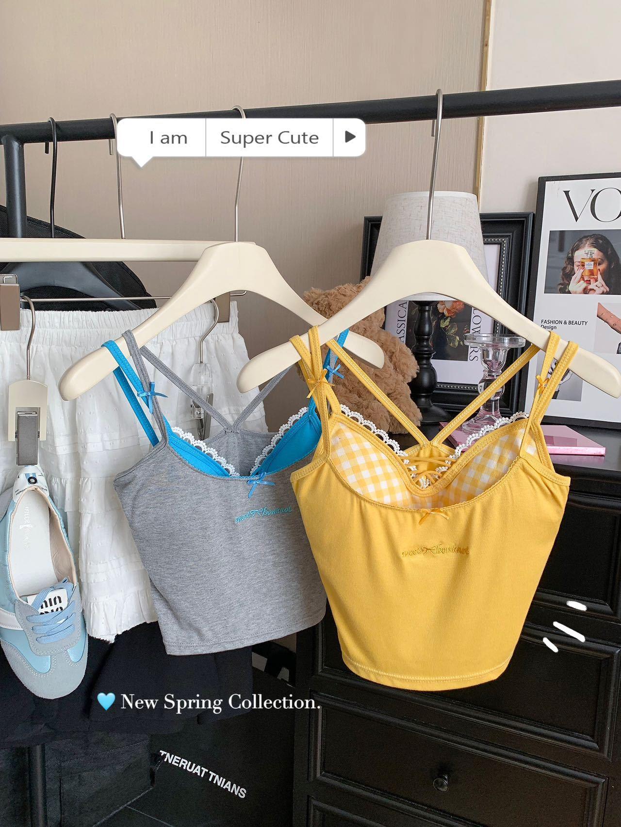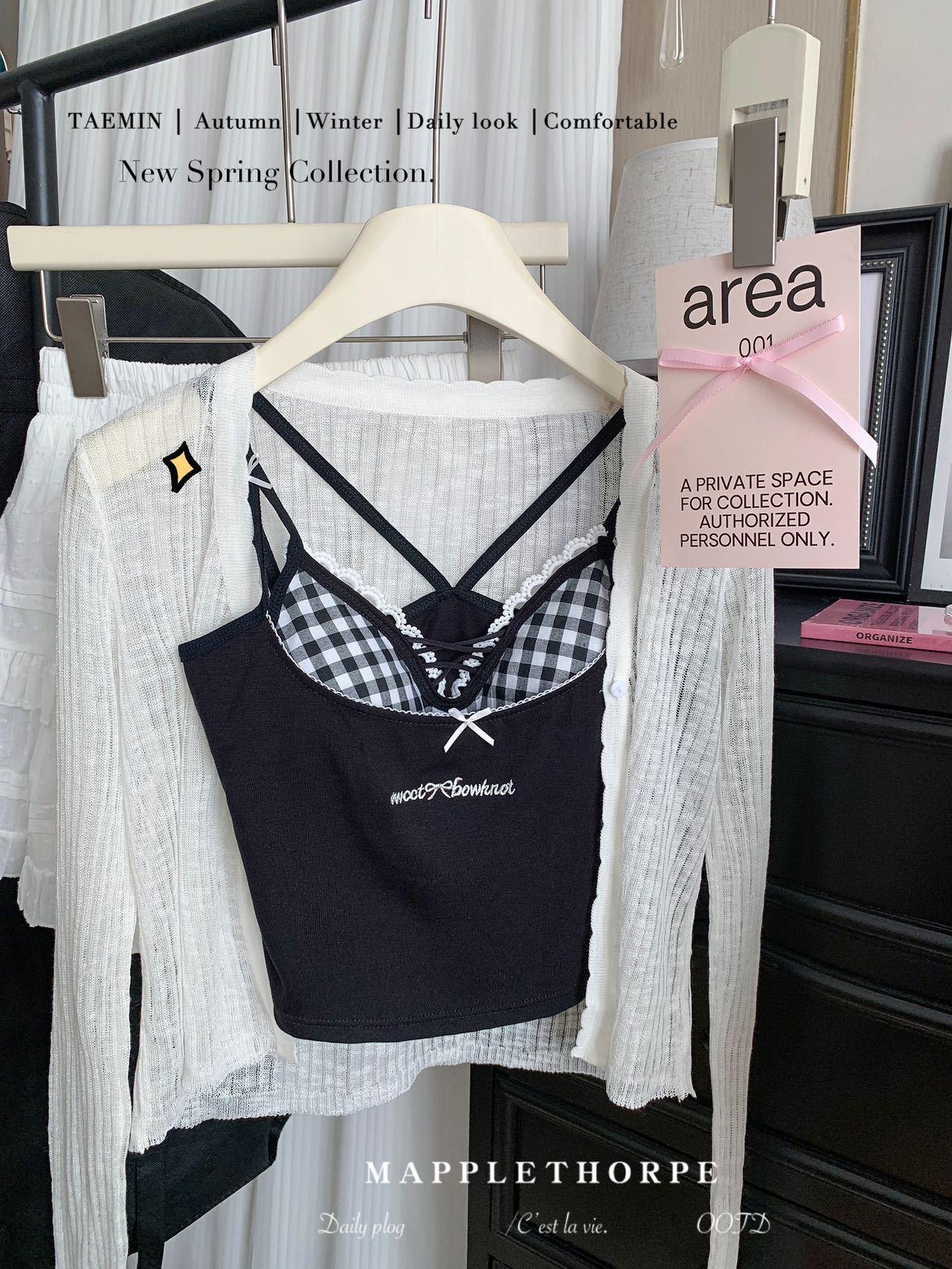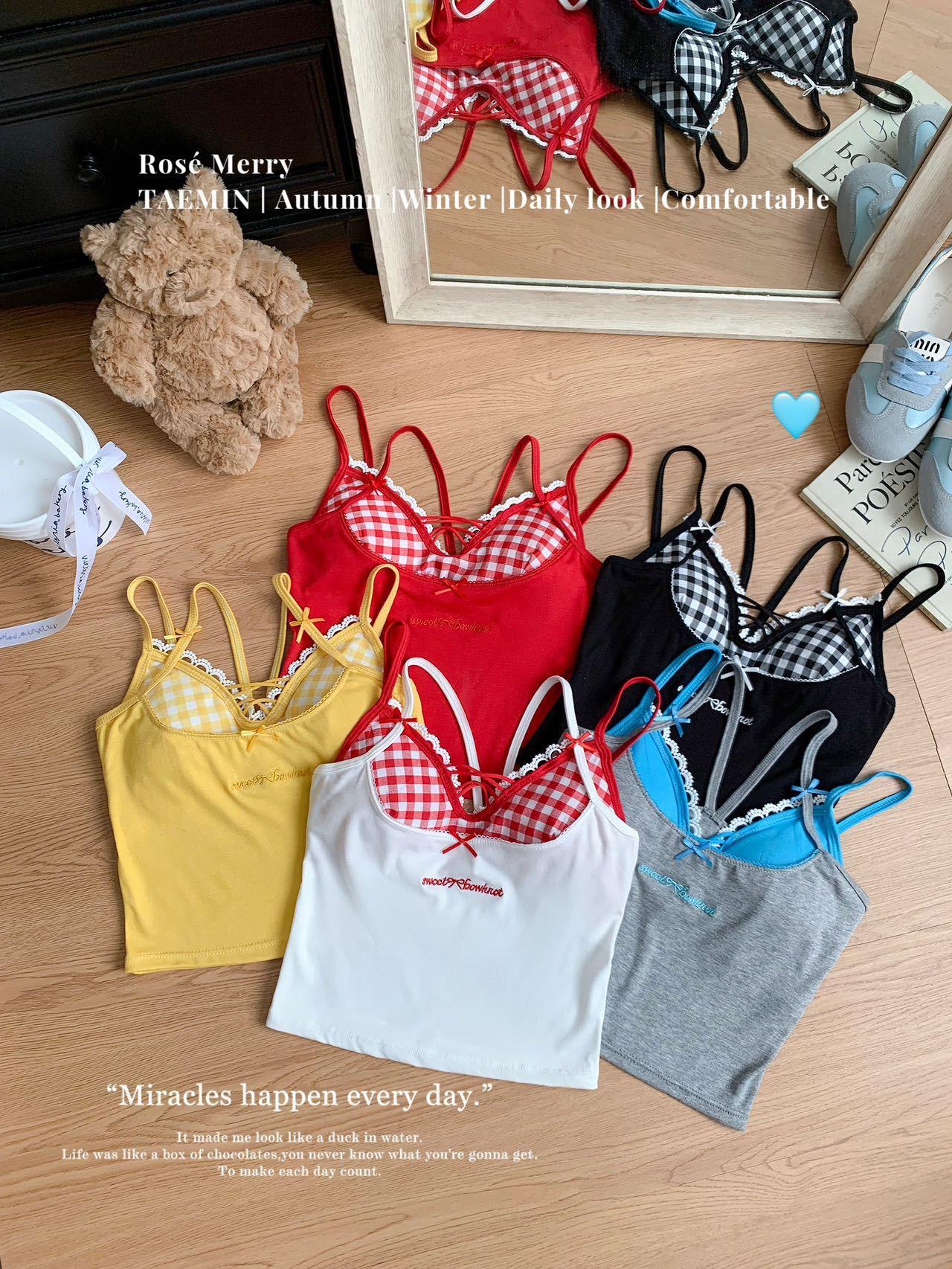 Estilo Deseo Puro Falso Dos Piezas Camisola Colorida a Cuadros con Tirantes Cruzados Verano de Chica Caliente Sexy Versátil Ropa Exterior Top Base