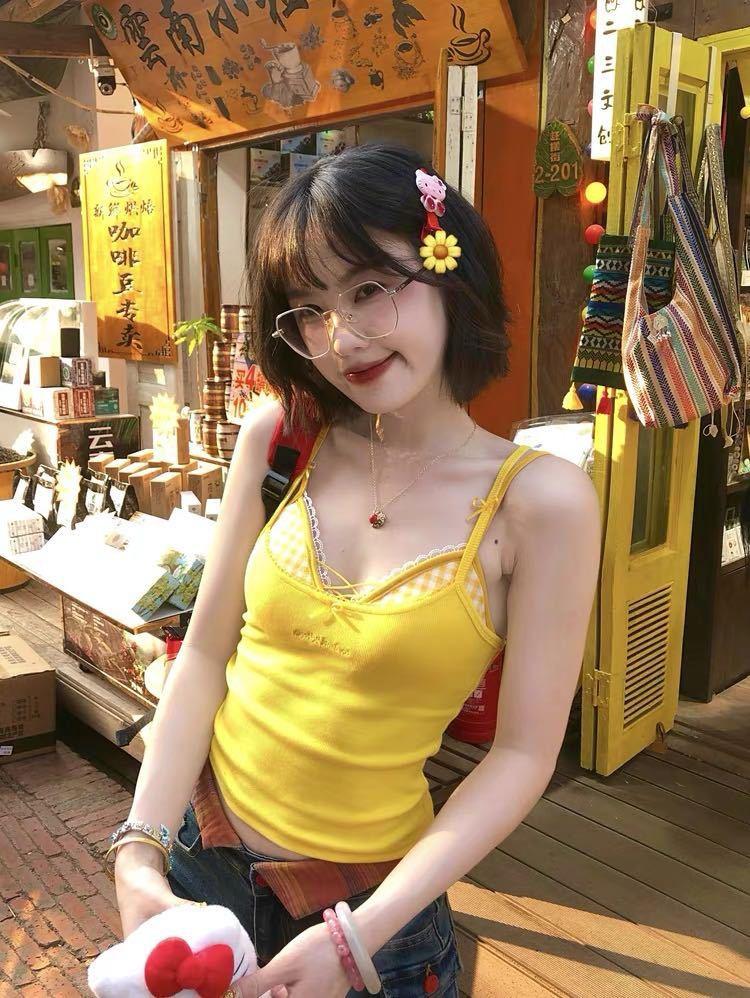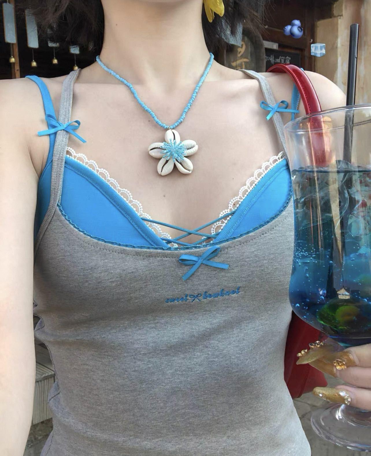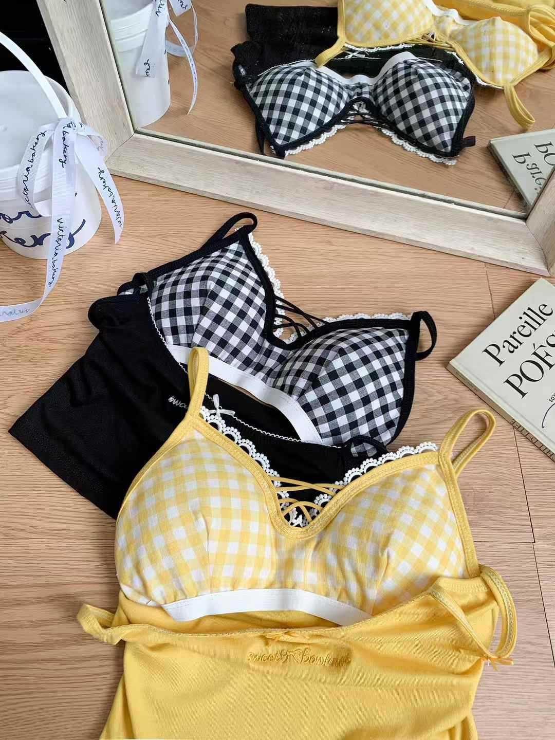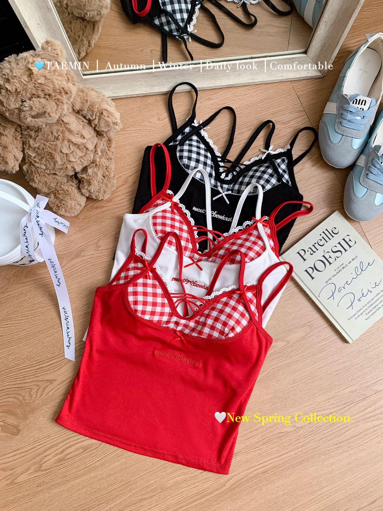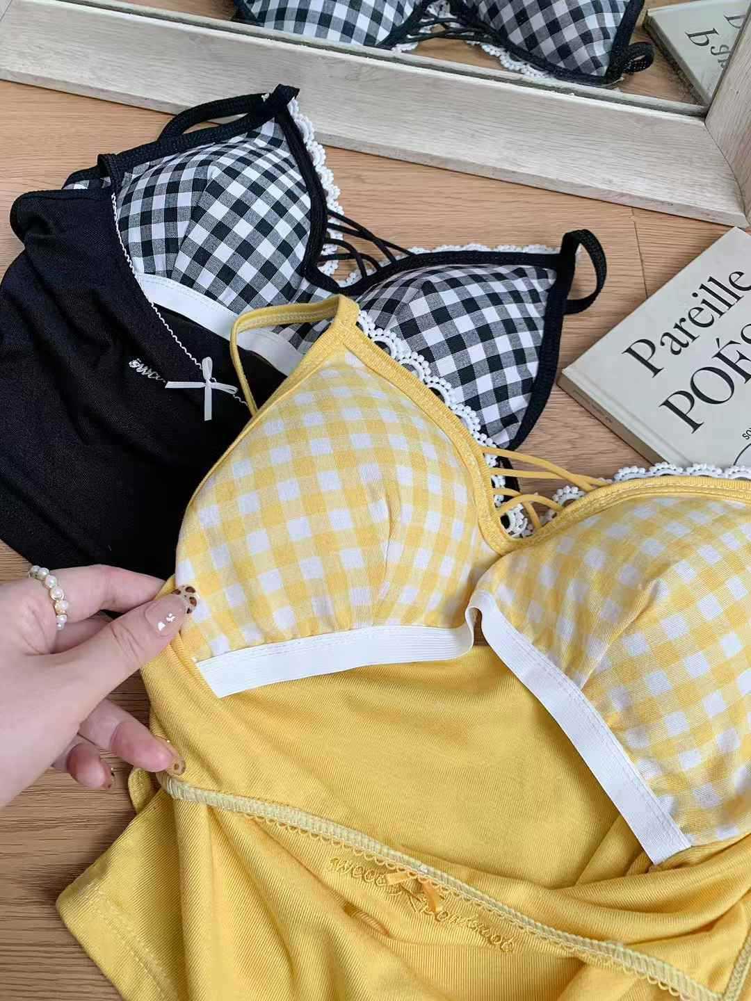 Estilo Deseo Puro Falso Dos Piezas Camisola Colorida a Cuadros con Tirantes Cruzados Verano de Chica Caliente Sexy Versátil Ropa Exterior Top Base