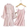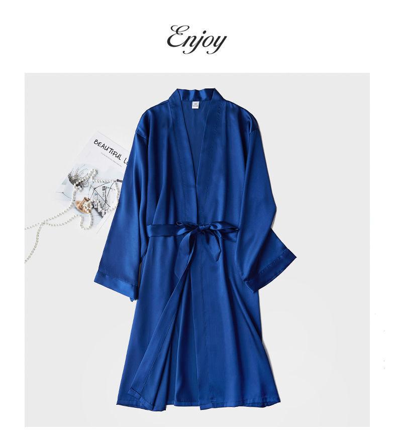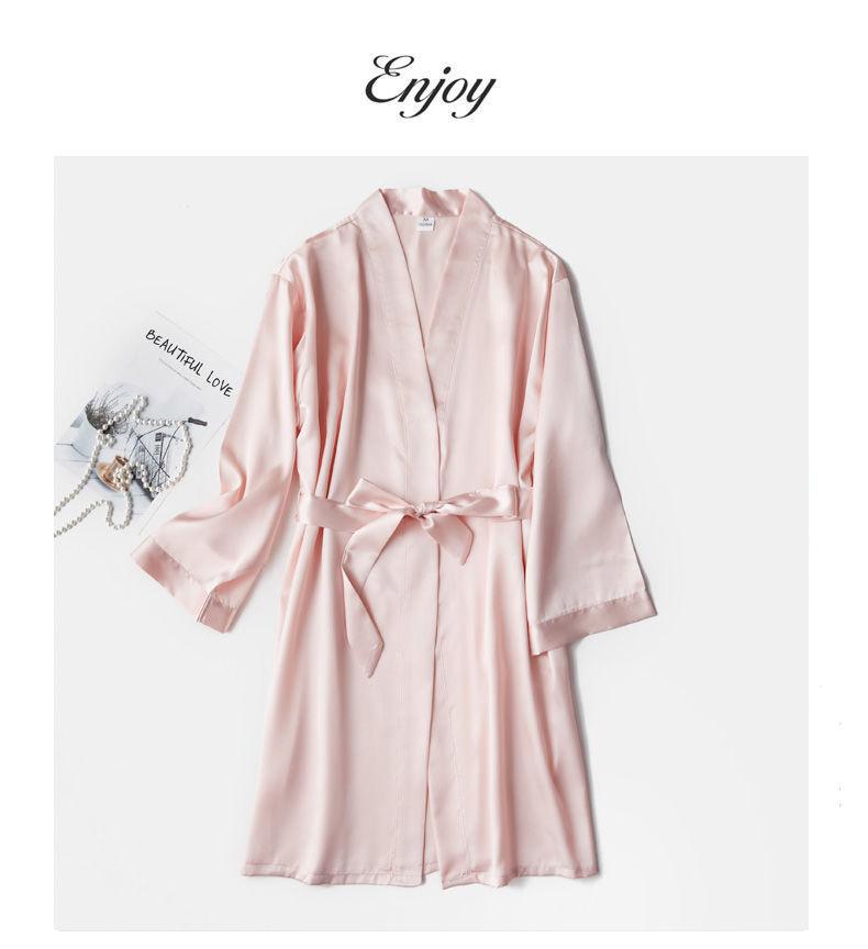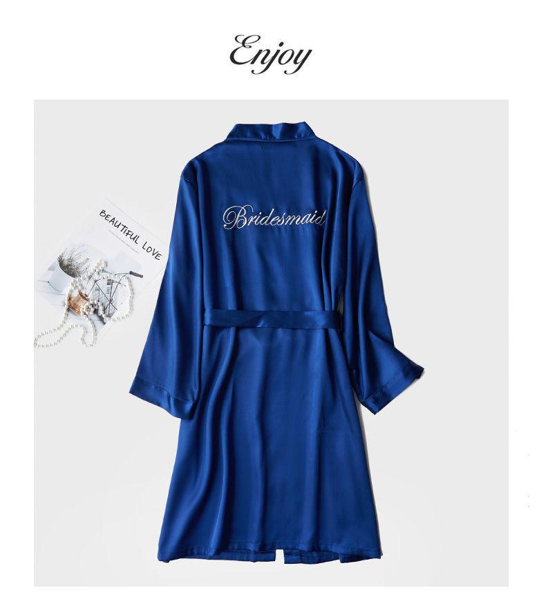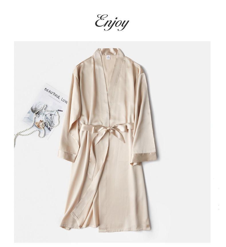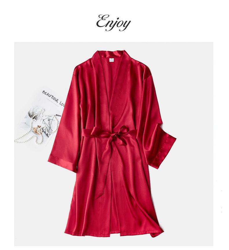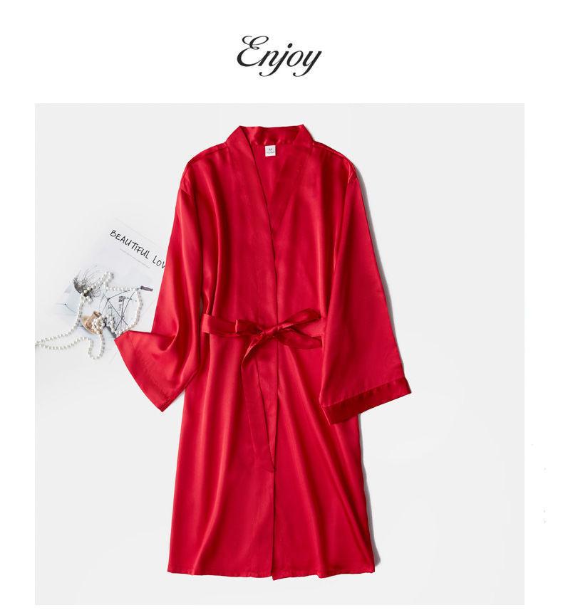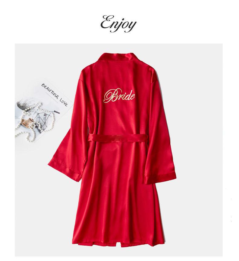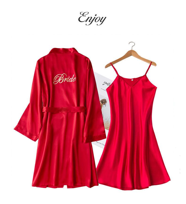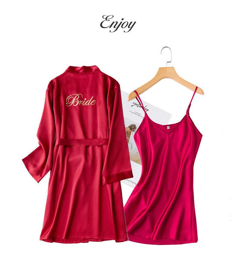 Camisón de Boda Manga Larga Primavera y Otoño Seda de Hielo Sexy Imitación Seda Pijama de Seda Dama de Honor Rojo Bata de Boda Femenina Novia
