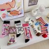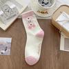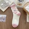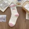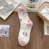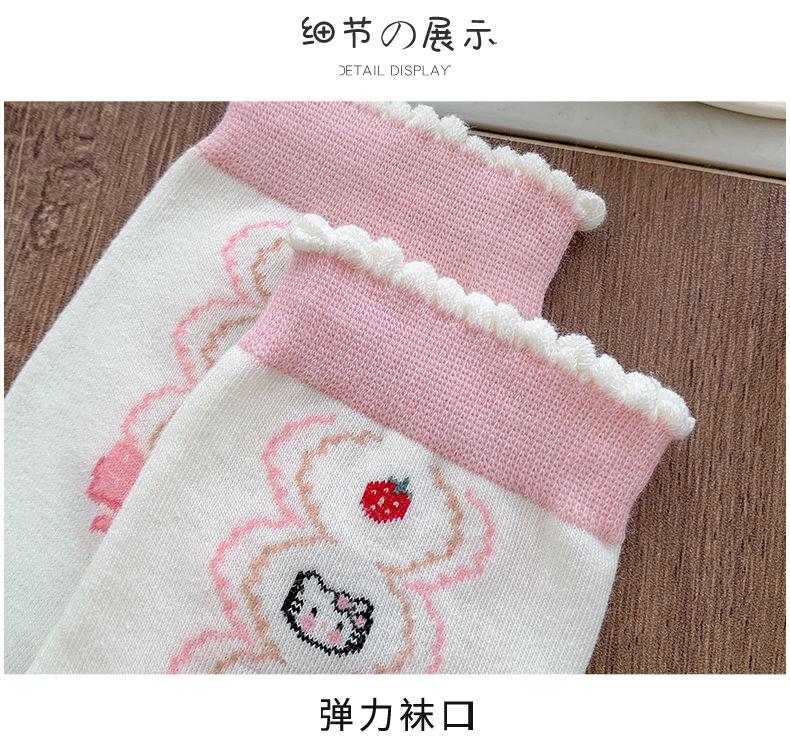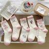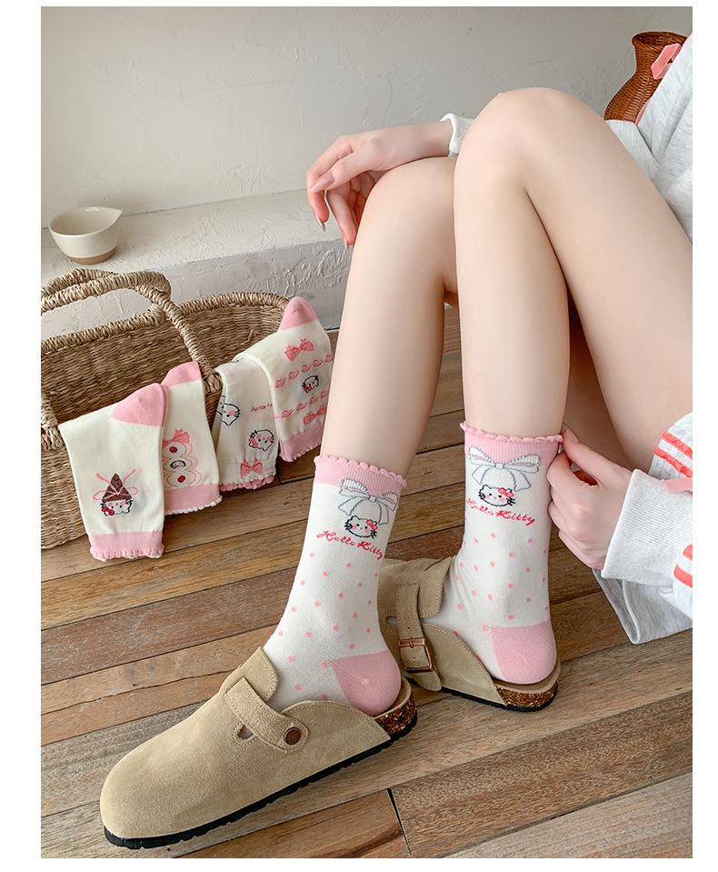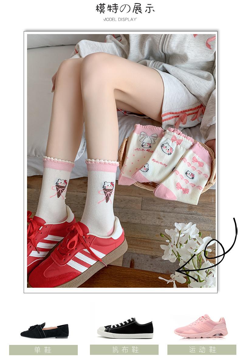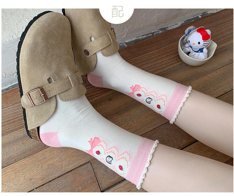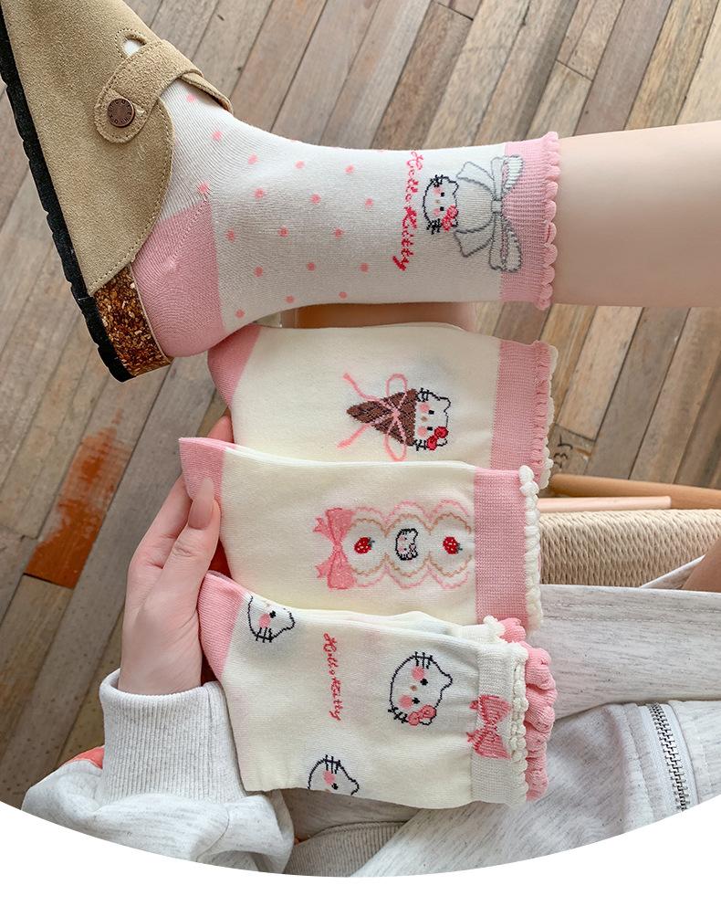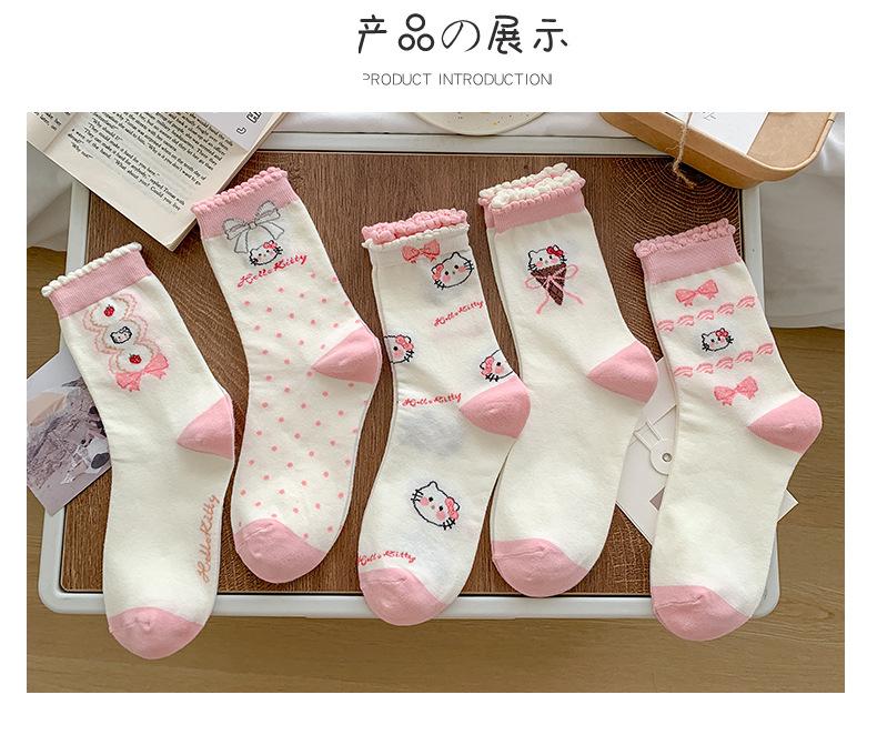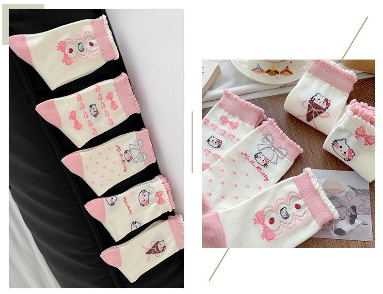 Calcetines de Gato Kt Calcetines de Media Caña para Mujer Primavera y Verano Delgados Estilo Japonés Dulces de Dibujos Animados Calcetines de Encaje Blancos Largos Rosas