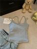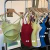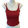 Camisola de verano para mujer con tirantes dobles y espalda hermosa, hueca, de color puro, con almohadilla interior para el pecho, corte entallado, sin tirantes