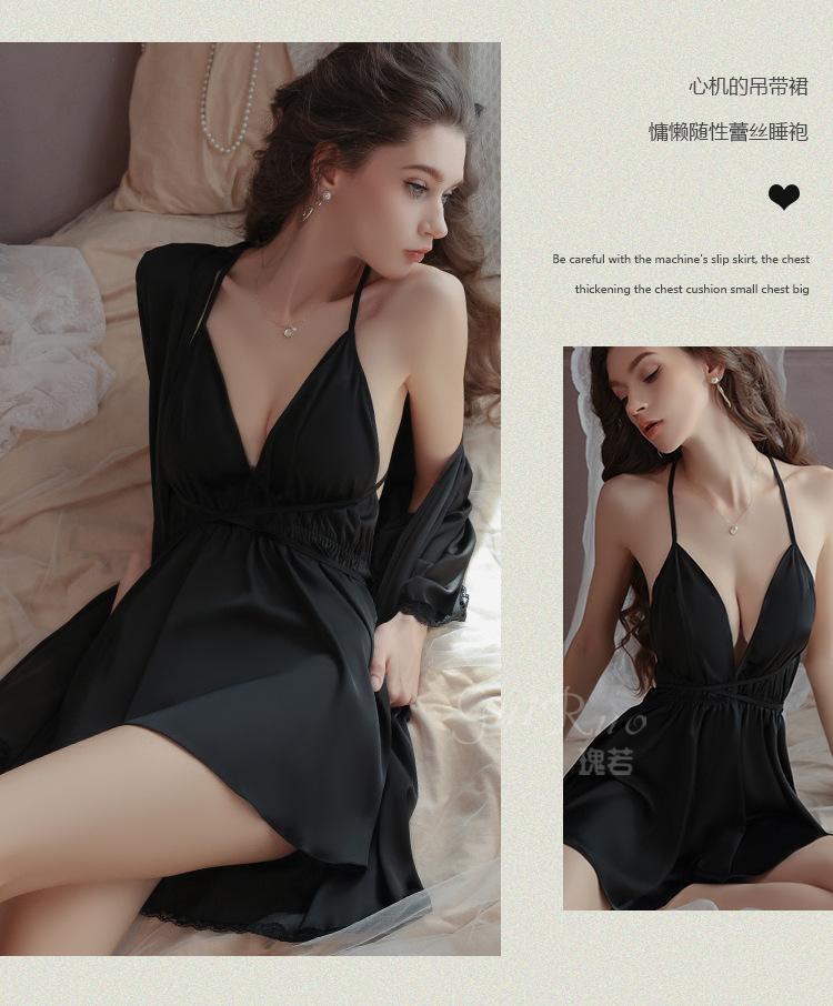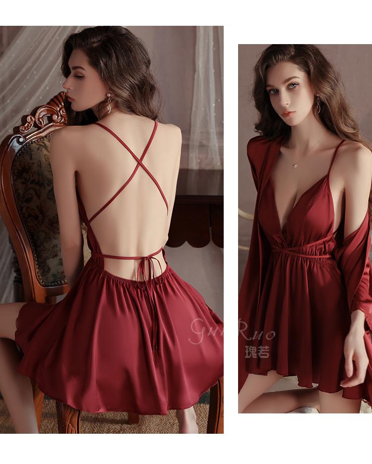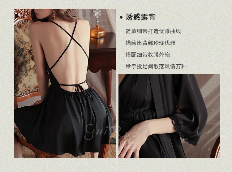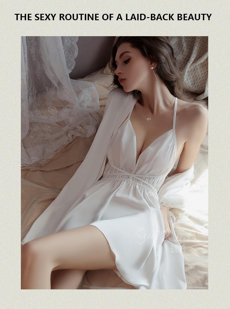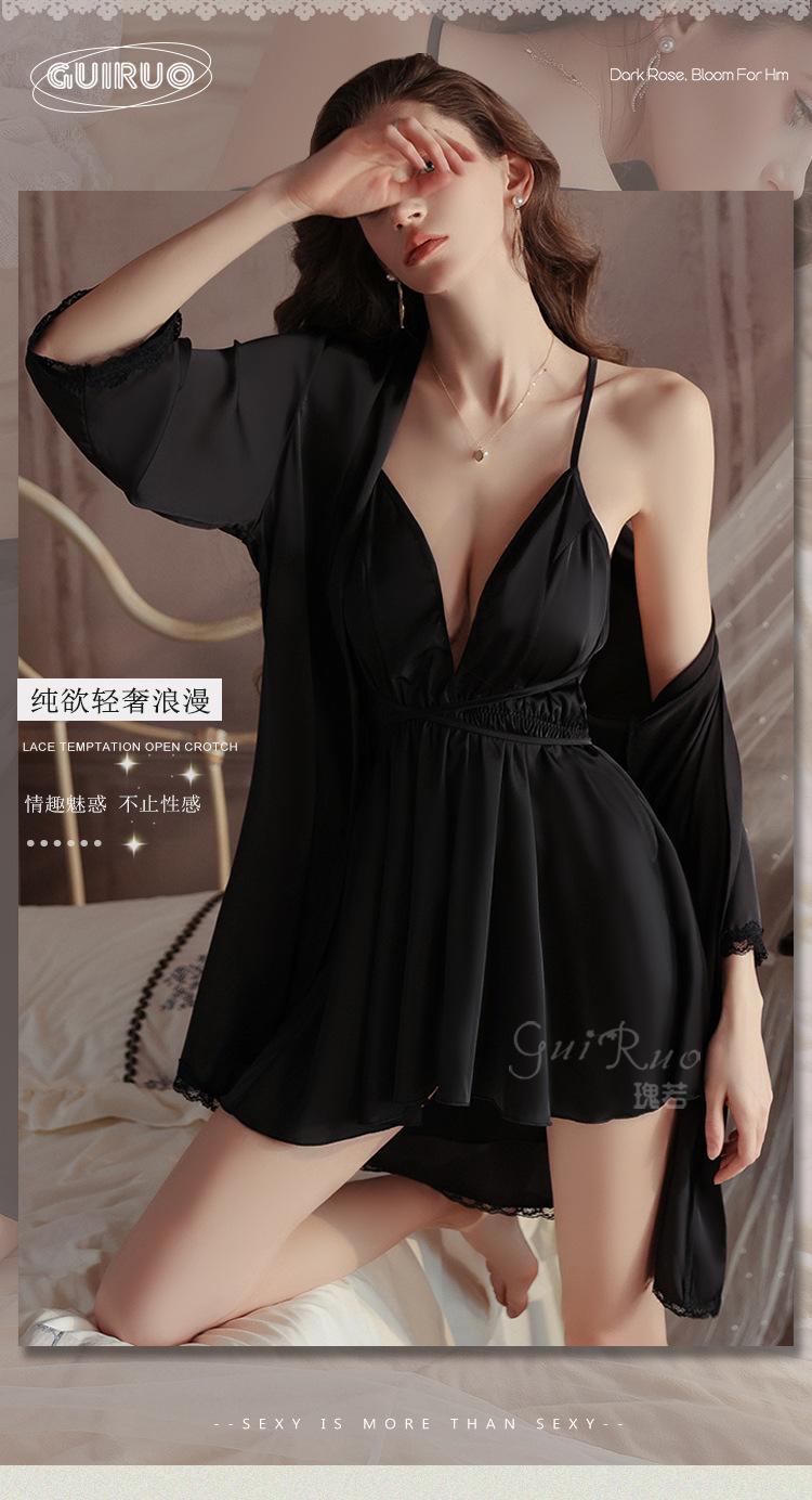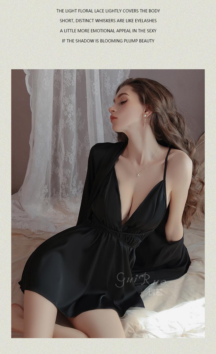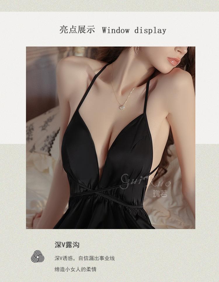 DZ Guiruo talla grande Lencería de satén de lujo ligero Apasionado Corte V profundo Escote bajo Sexy Espalda descubierta Camisón Bata Traje de mujer 4582