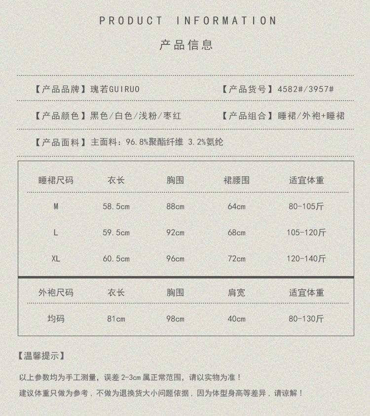 4582 black (nightgown), 3957 black (robe + belt), 4582 white (nightgown), 3957 white (robe + belt), 4582 maroo...