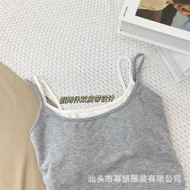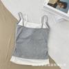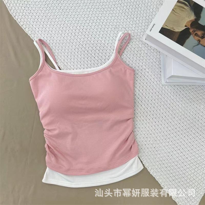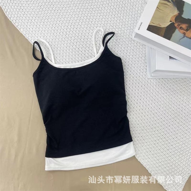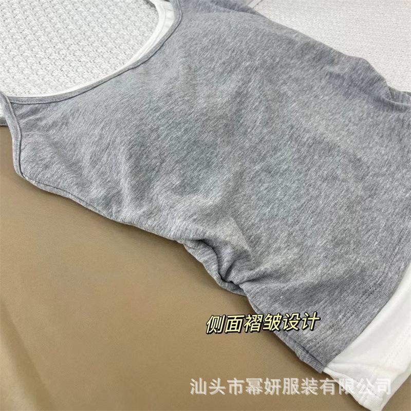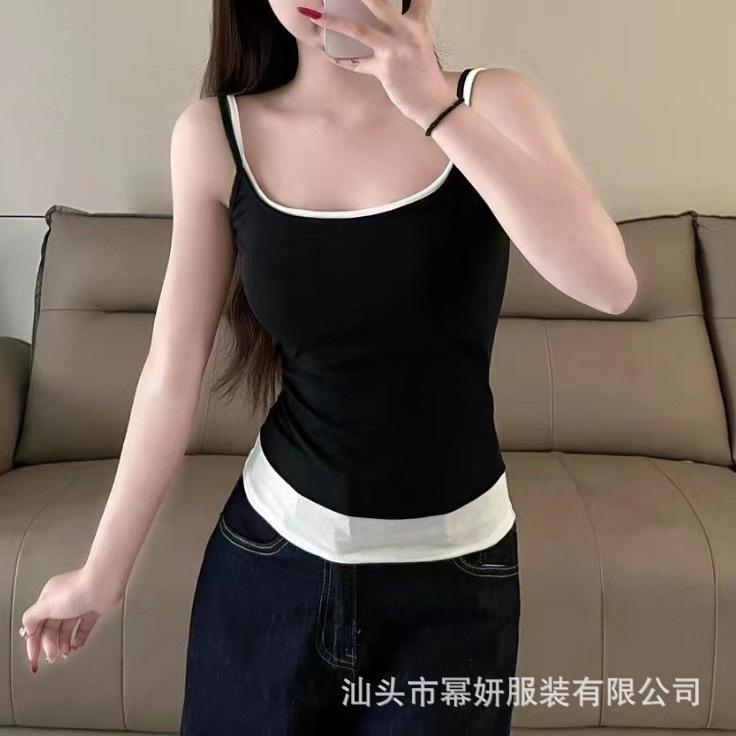 Dulce Spice Girl Costuras en Color de Contraste Falso Dos Piezas Hermosa Espalda Tirantes Envolventes Pecho Chaleco Verano Cinturón Almohadilla para el Pecho Versátil Ajustado Deseo Puro Top