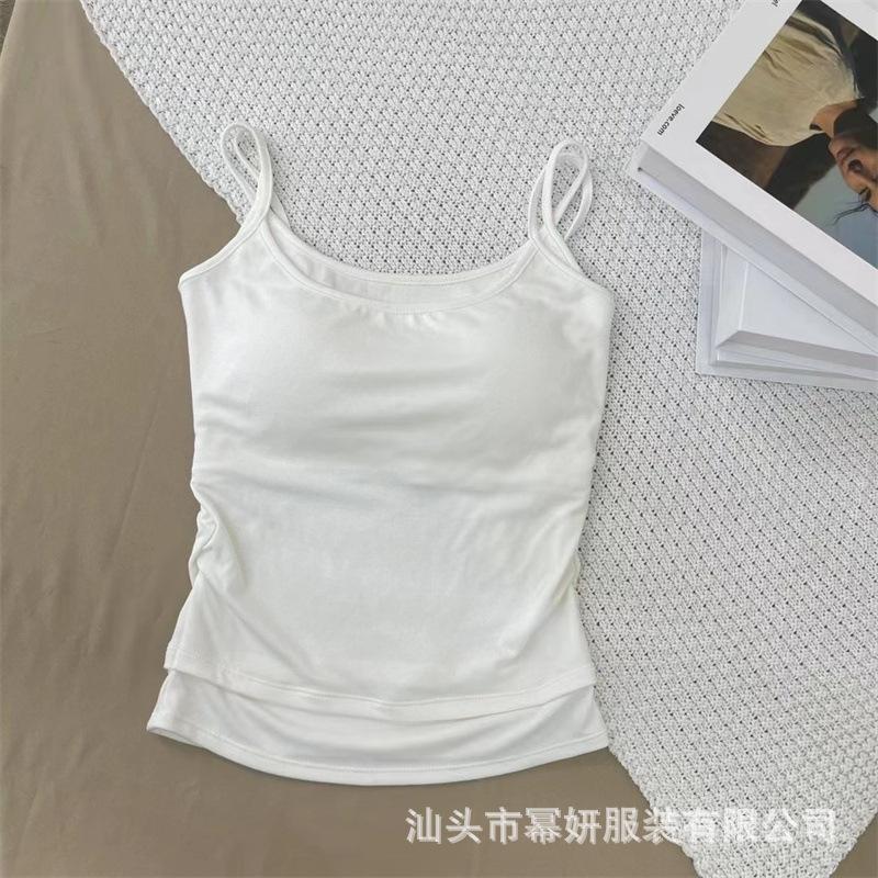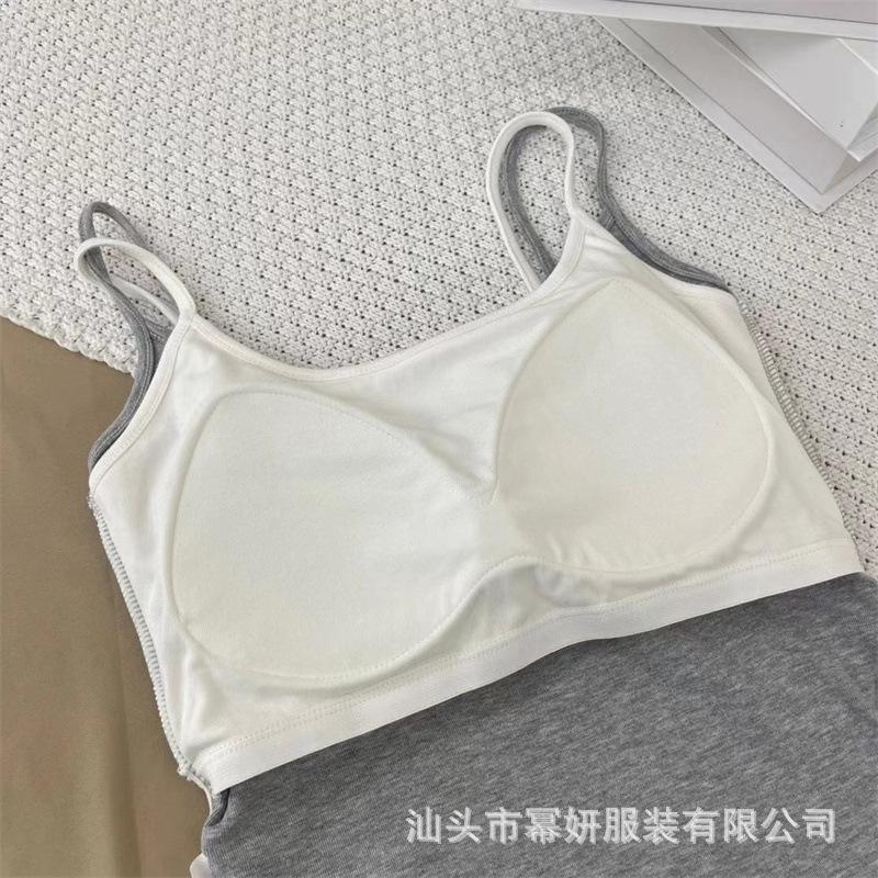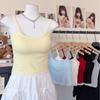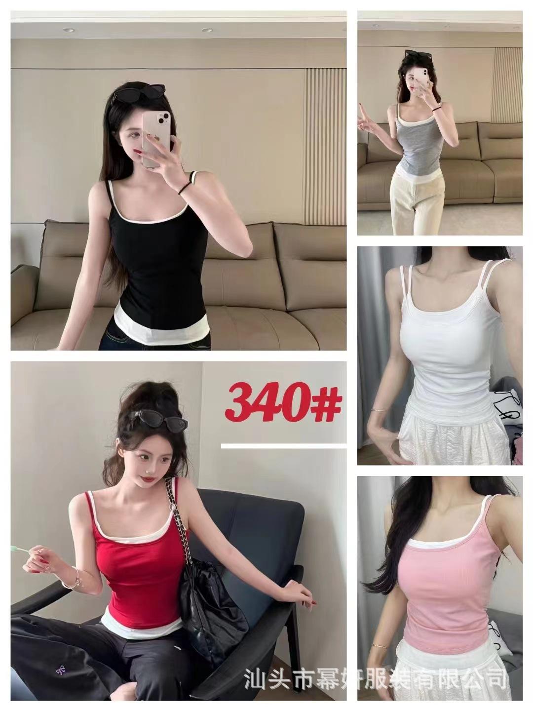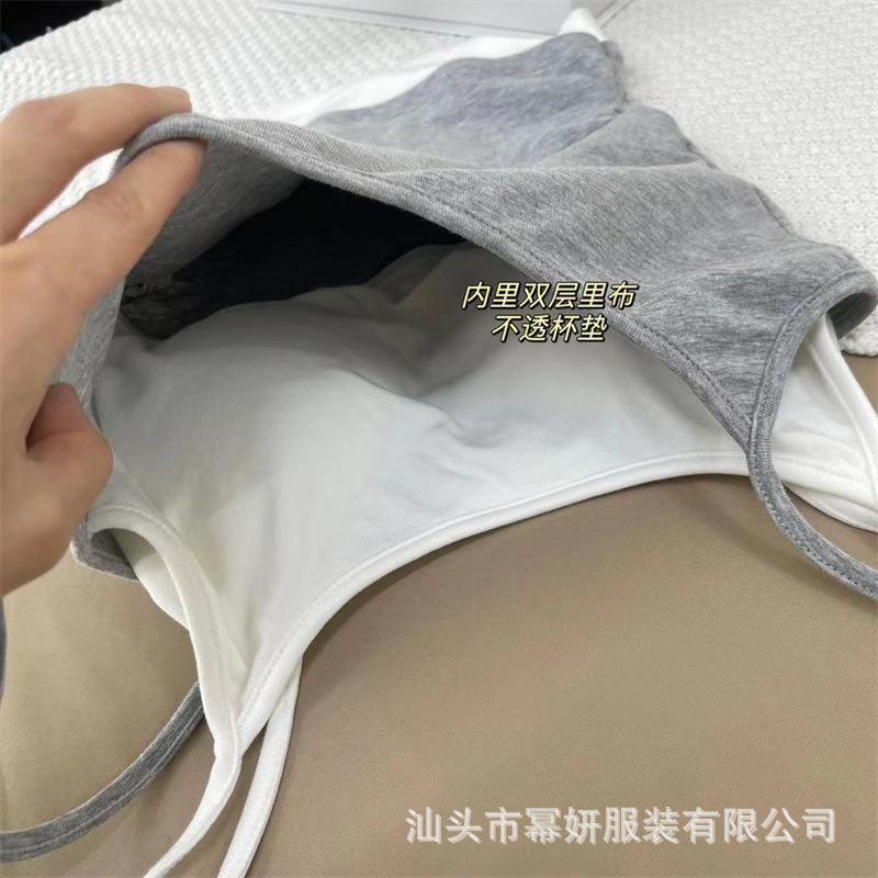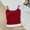 Dulce Spice Girl Costuras en Color de Contraste Falso Dos Piezas Hermosa Espalda Tirantes Envolventes Pecho Chaleco Verano Cinturón Almohadilla para el Pecho Versátil Ajustado Deseo Puro Top