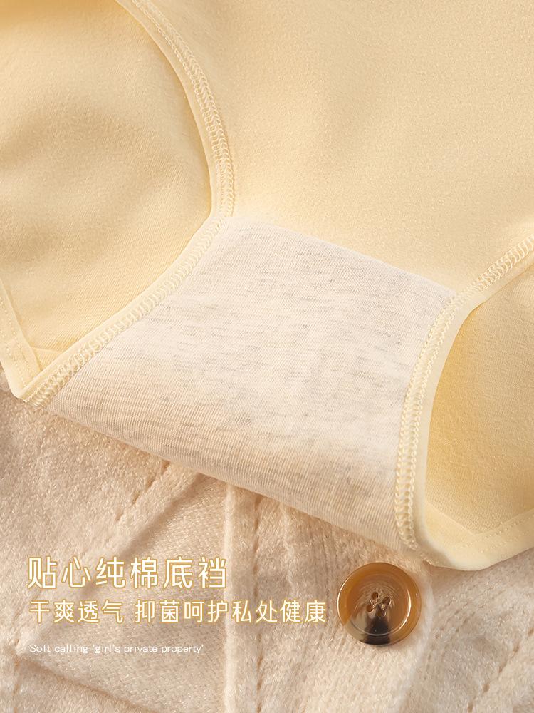 Ropa interior sencilla de color sólido para niña, algodón sin costuras, suave y cómodo, algodón transpirable, perfil antibacteriano, calzones de cintura media para mujer