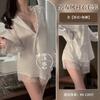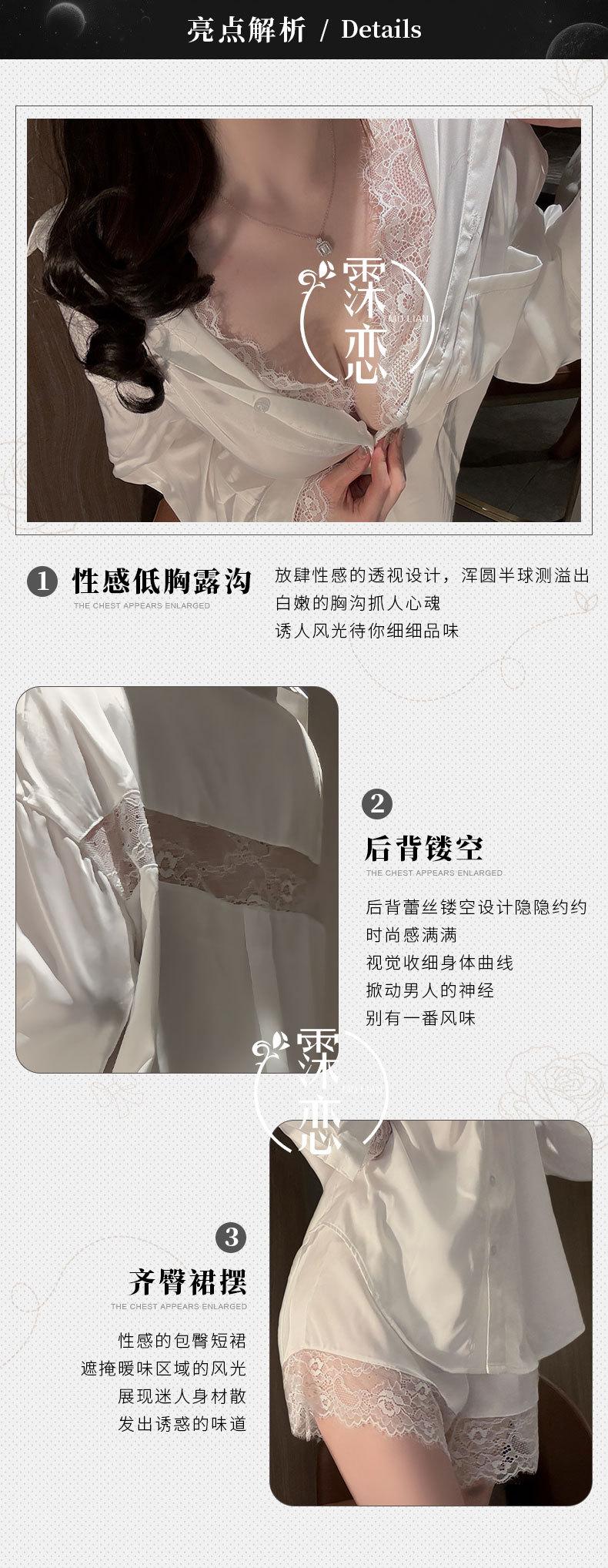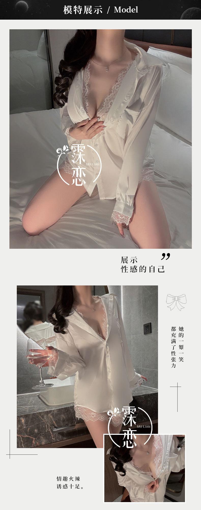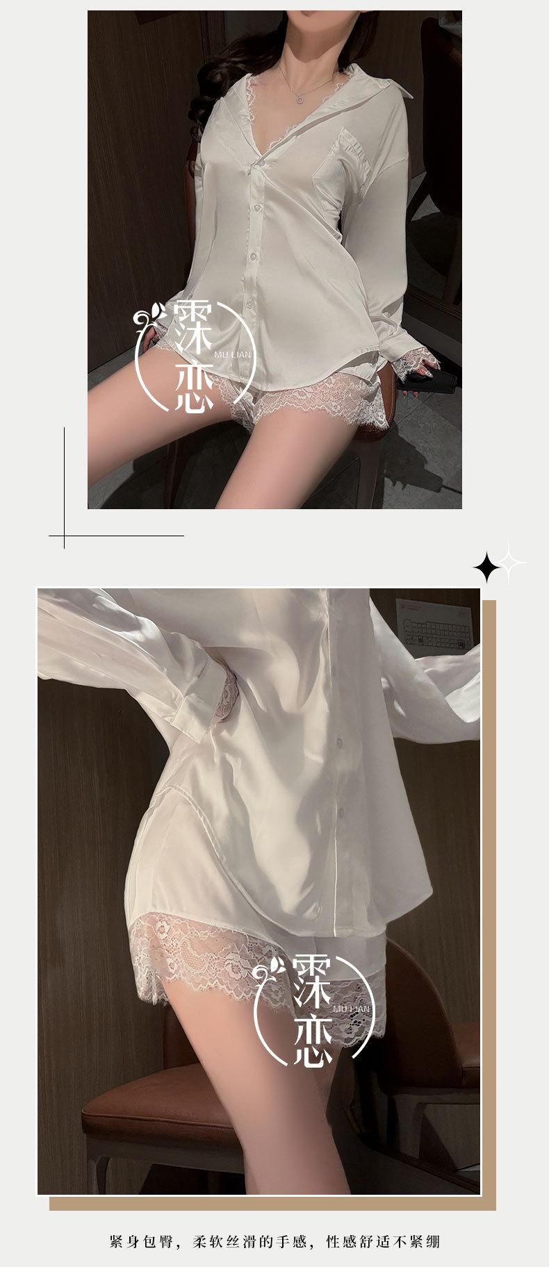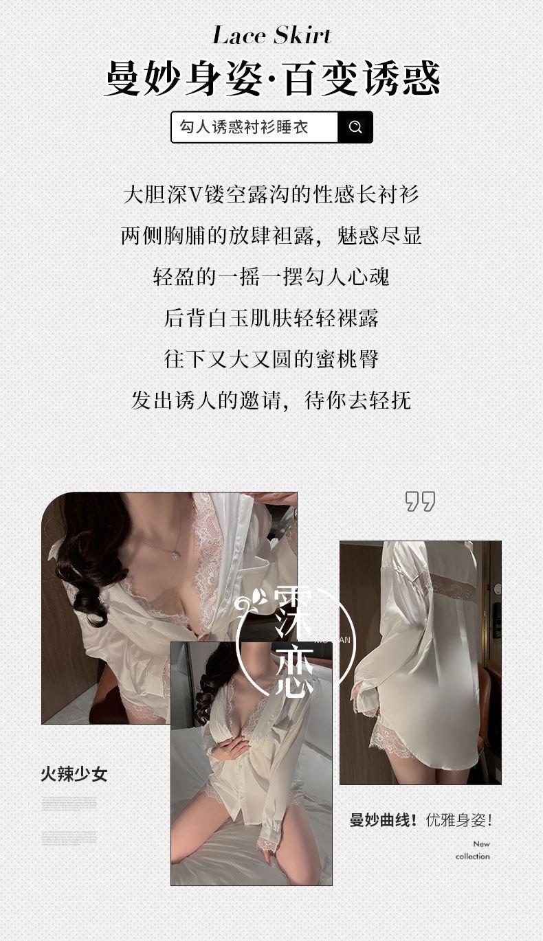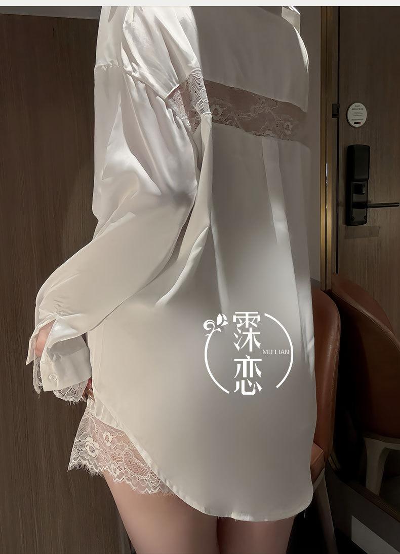 Lencería Sexy Camisa de Encaje Sexy Camisón de Manga Larga Estilo Boyfriend Ropa de Dormir de Verano para Mujer Conjunto de Pijama de Camisa Blanca