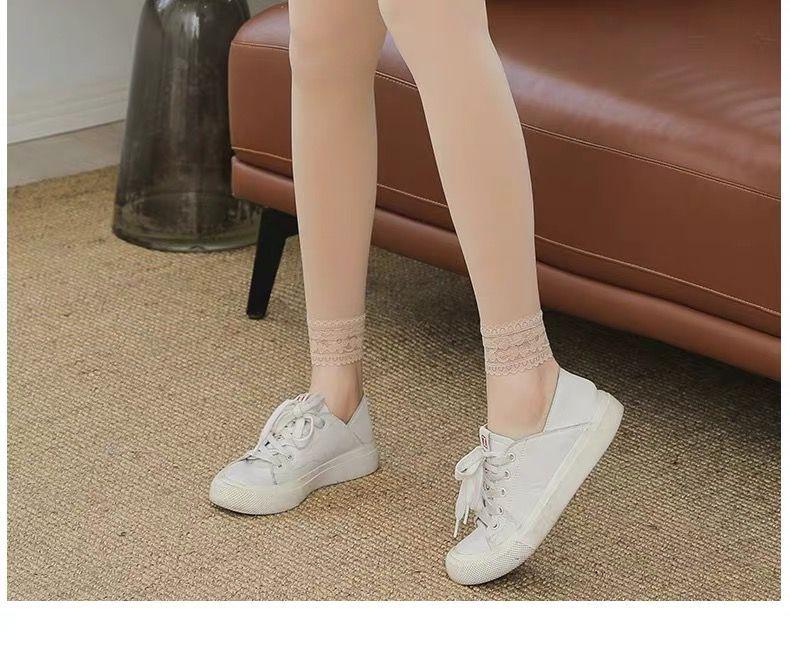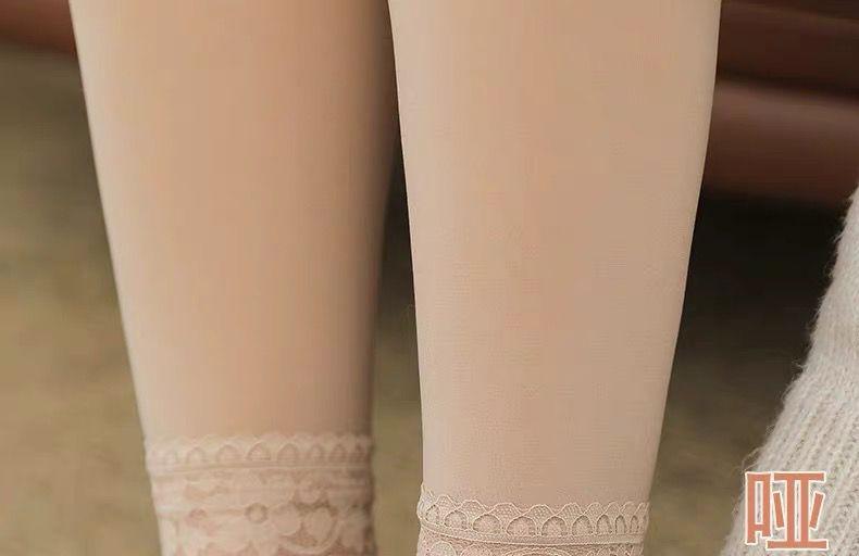 Calcetines ligeros para agua, artefacto ligero para piernas con forro polar integrado, terciopelo fino, primavera, otoño, invierno, gruesos, color carne, leggings de encaje hasta la rodilla para mujer