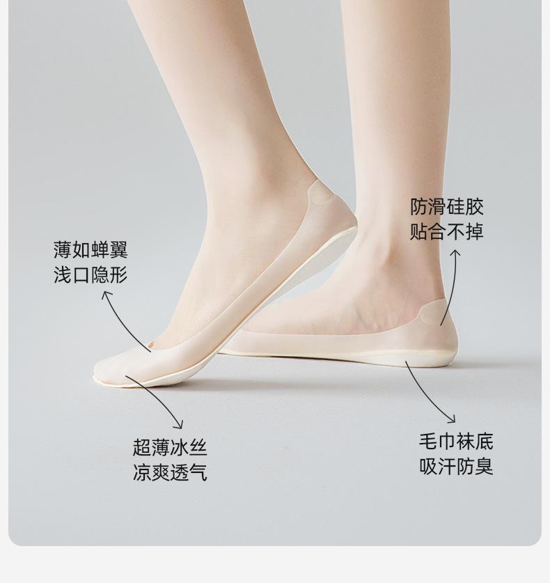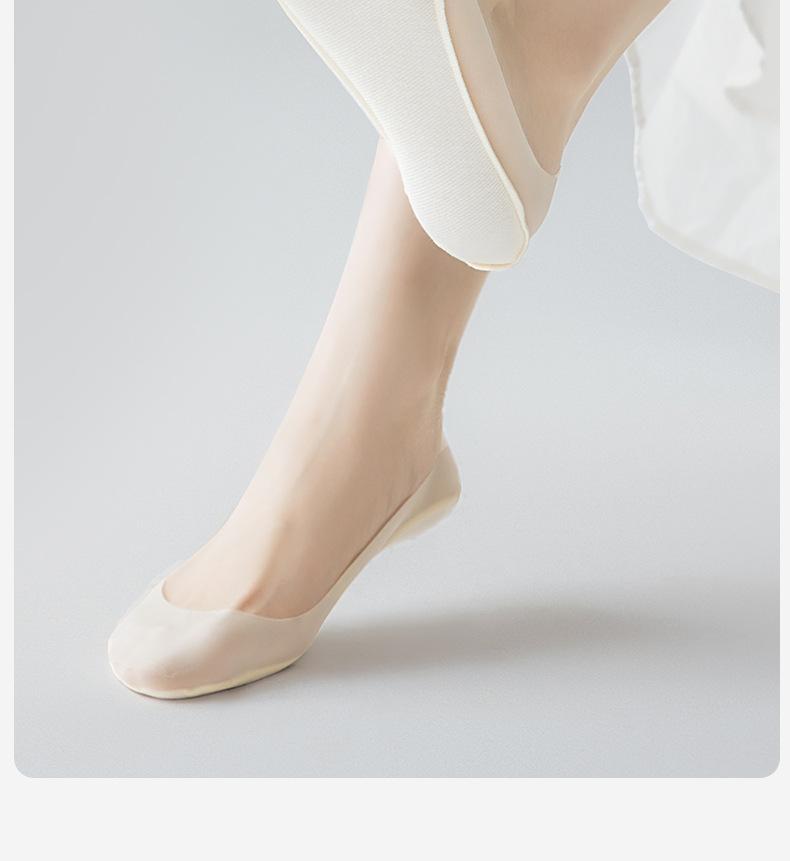 Calcetines Invisibles de Seda de Hielo para Mujer Verano Delgados Calcetines de Barco Parte Inferior de Algodón Puro Silicona Antideslizante No se Caen del Talón Calcetines de Boca Baja Calcetines para Zapatos