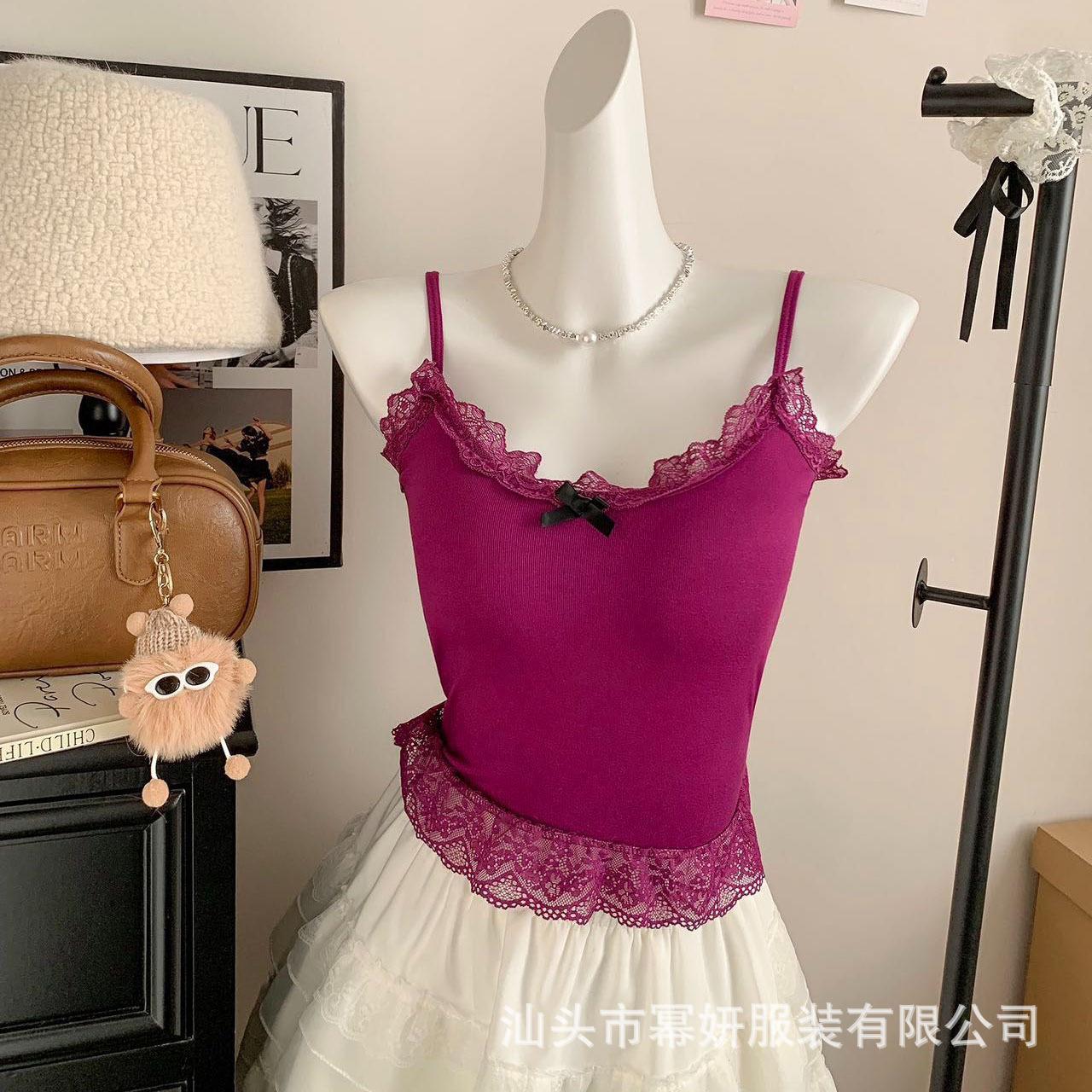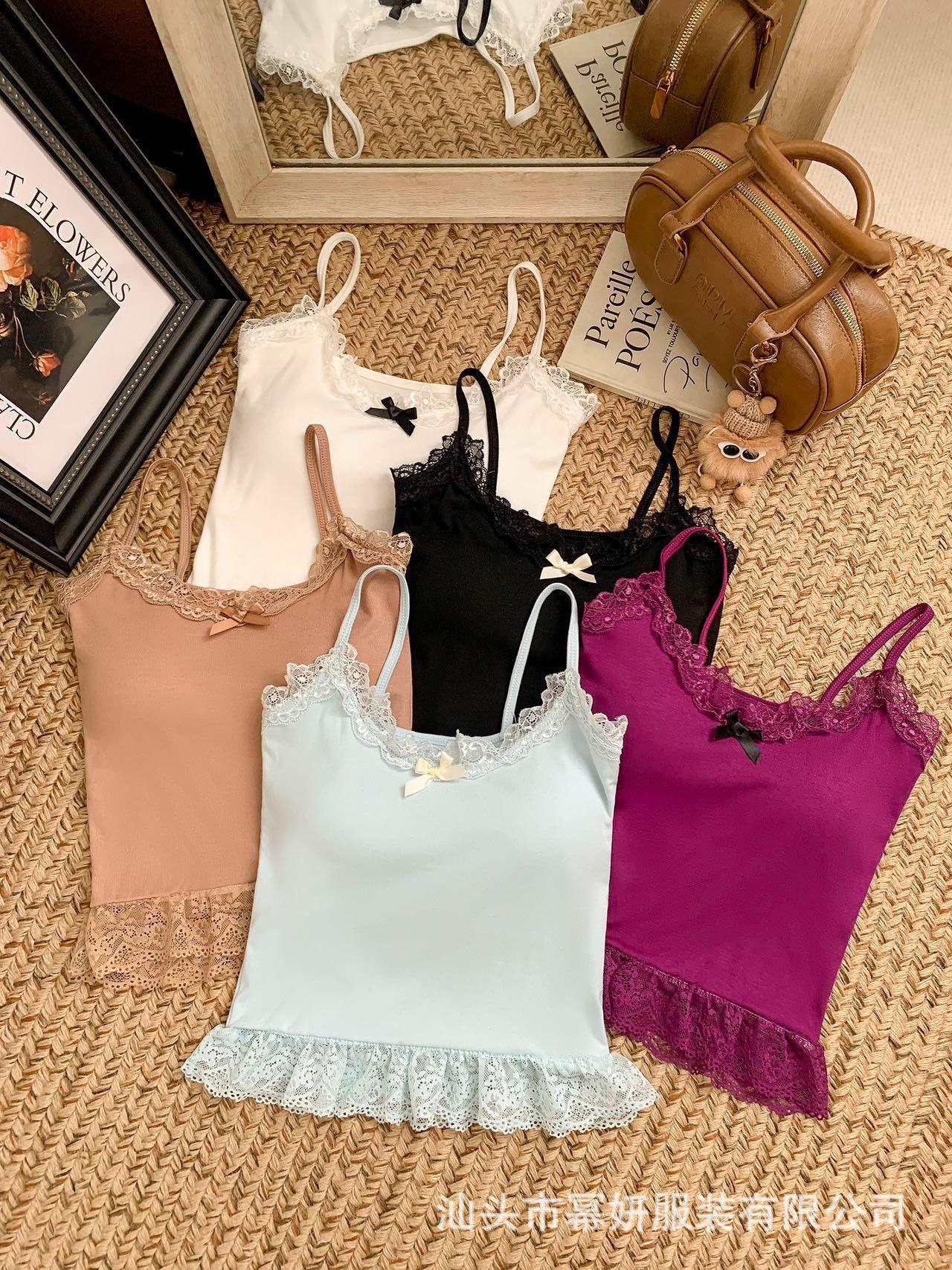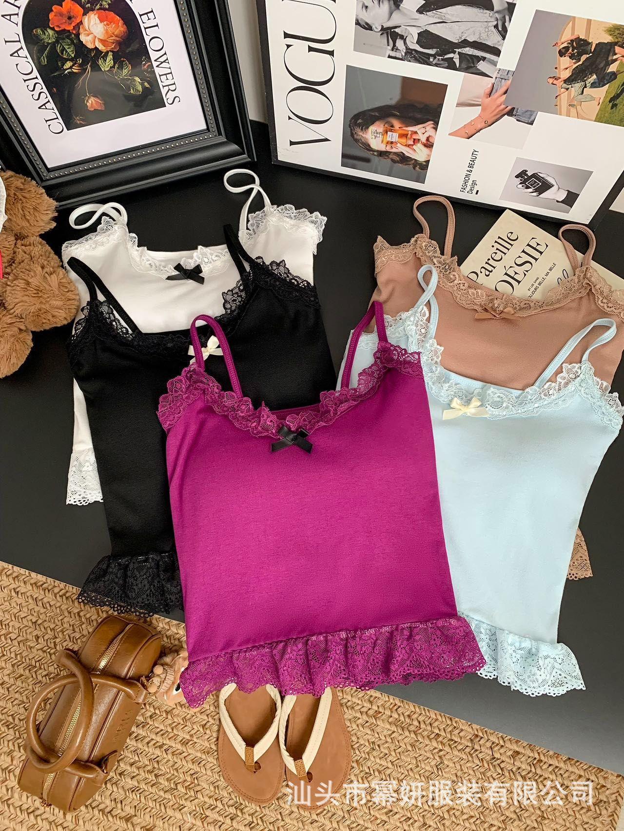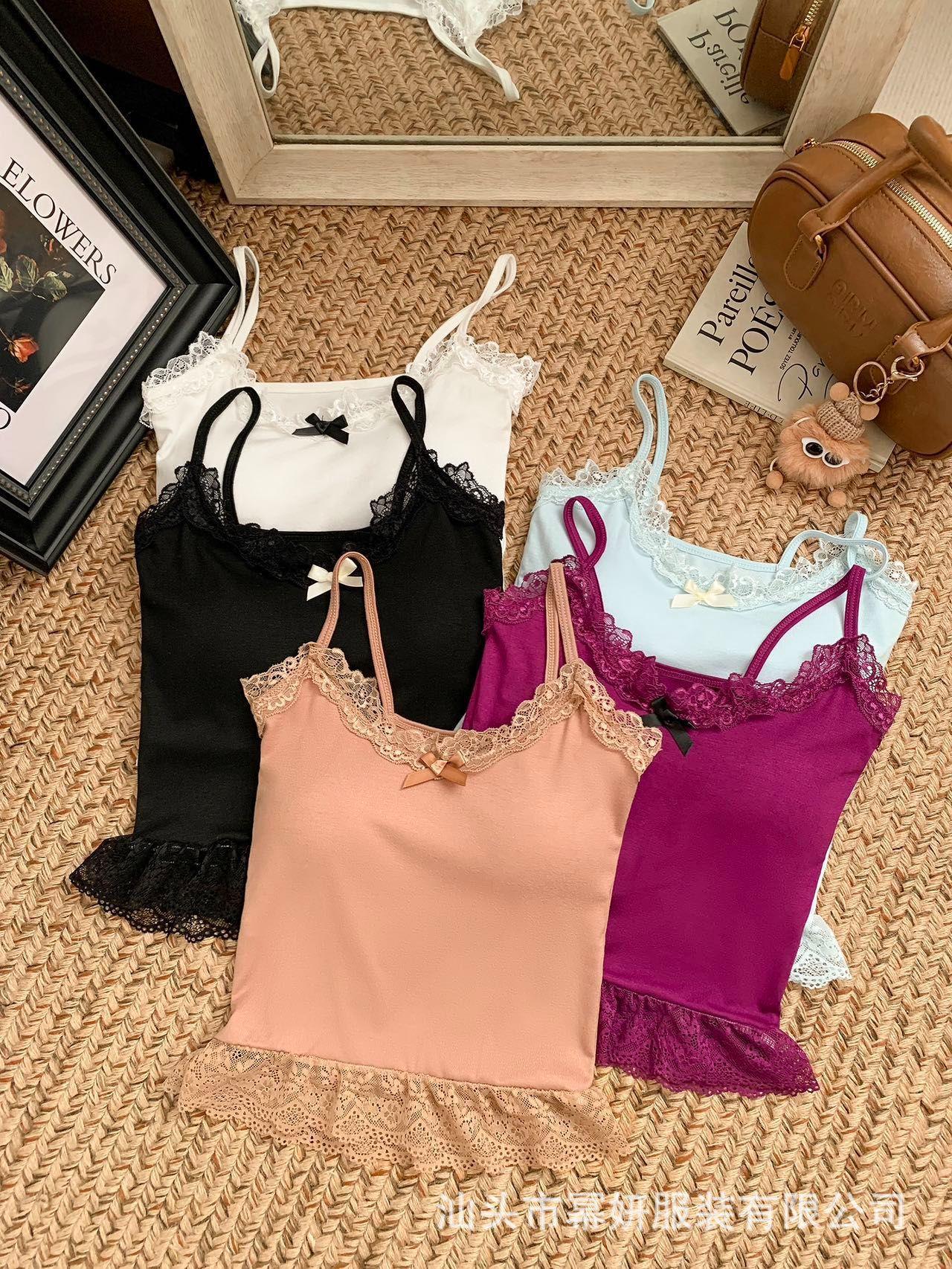 Algodón Chica Picante Dulce Lazo Encaje Camisola Pequeña para Mujer Puro Deseo Top Interior con Almohadilla en el Pecho Top Strapless de Espalda Hermosa
