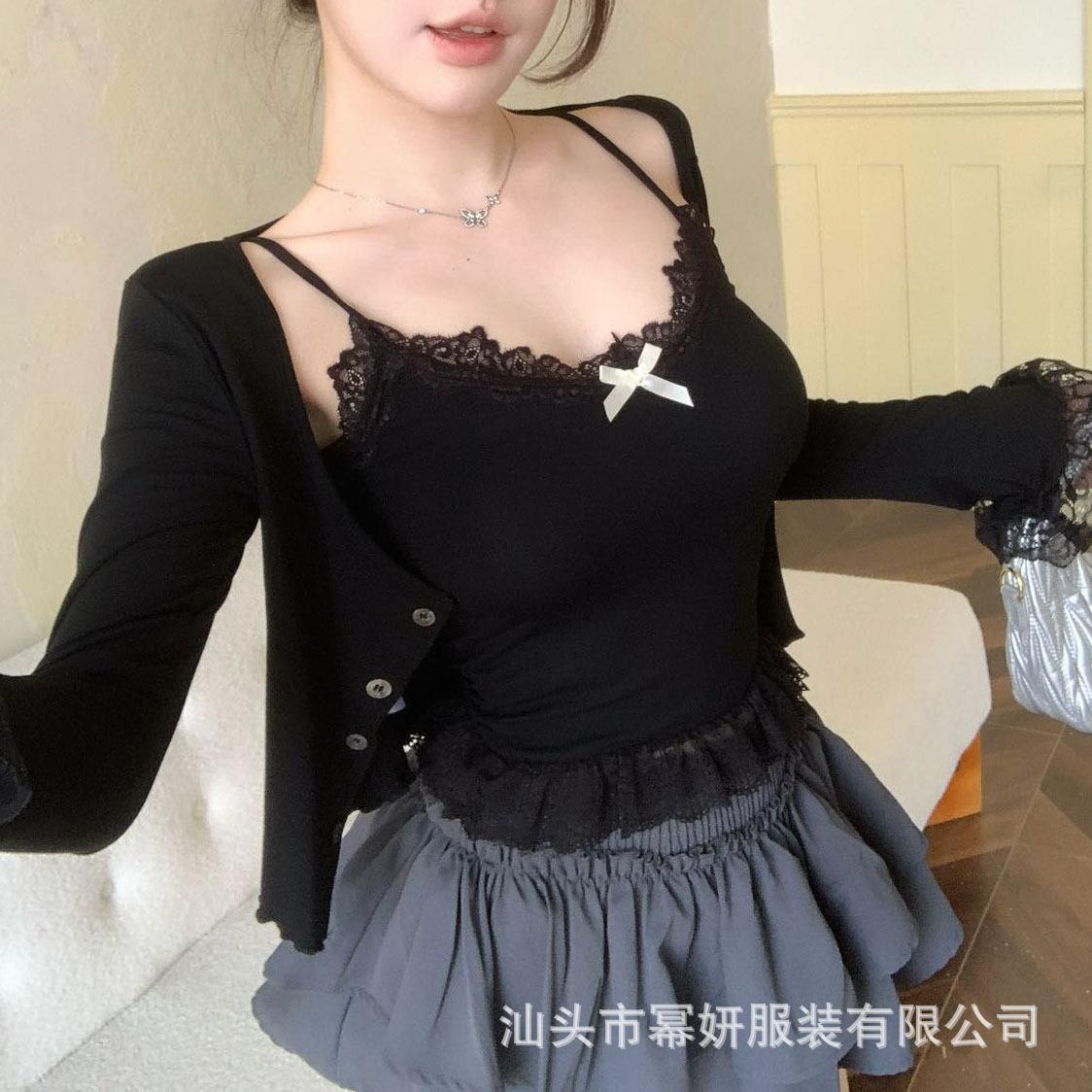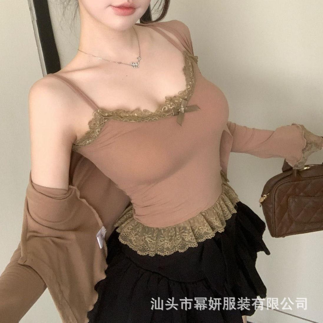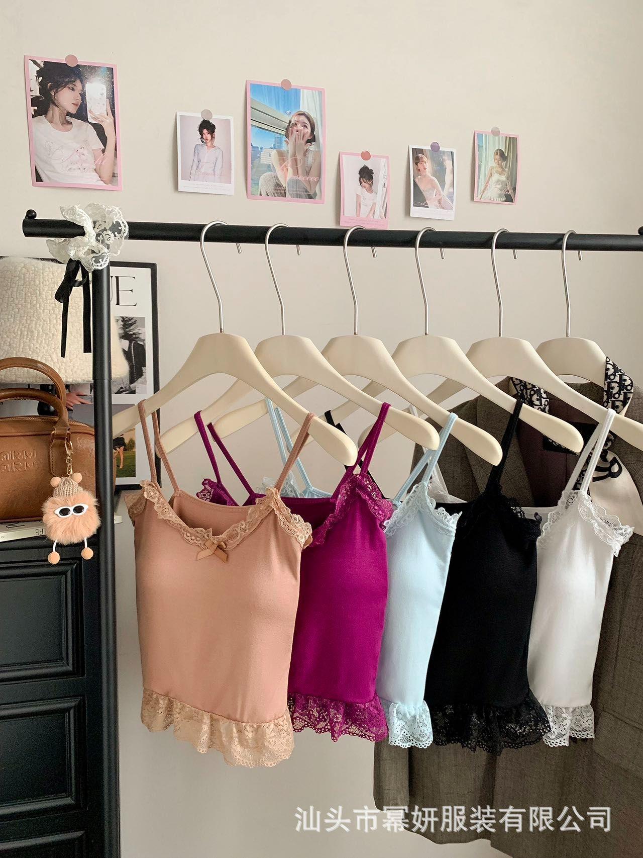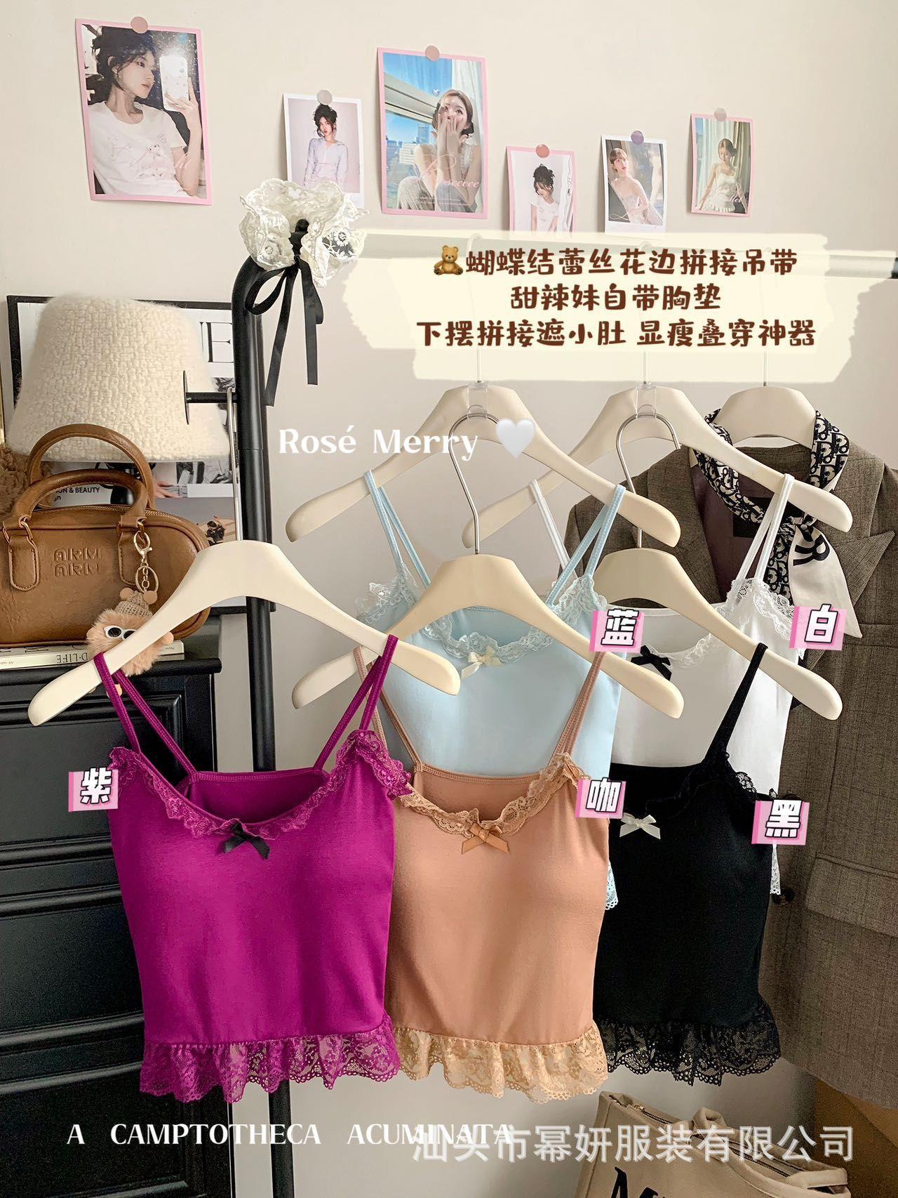 Algodón Chica Picante Dulce Lazo Encaje Camisola Pequeña para Mujer Puro Deseo Top Interior con Almohadilla en el Pecho Top Strapless de Espalda Hermosa