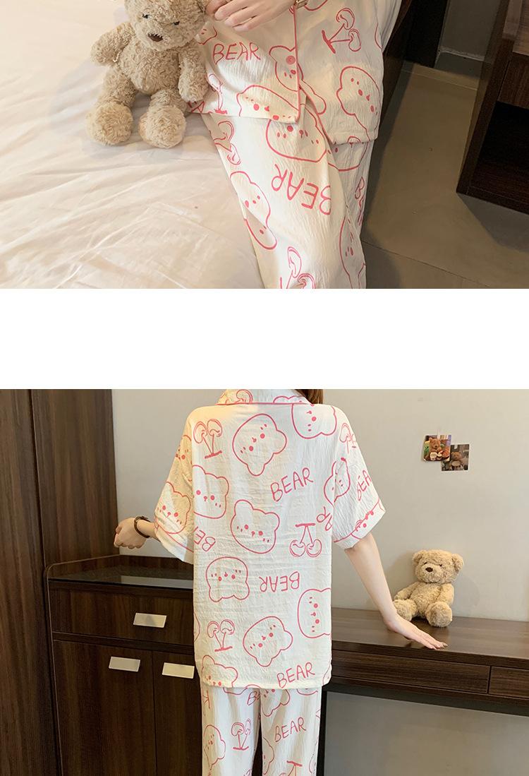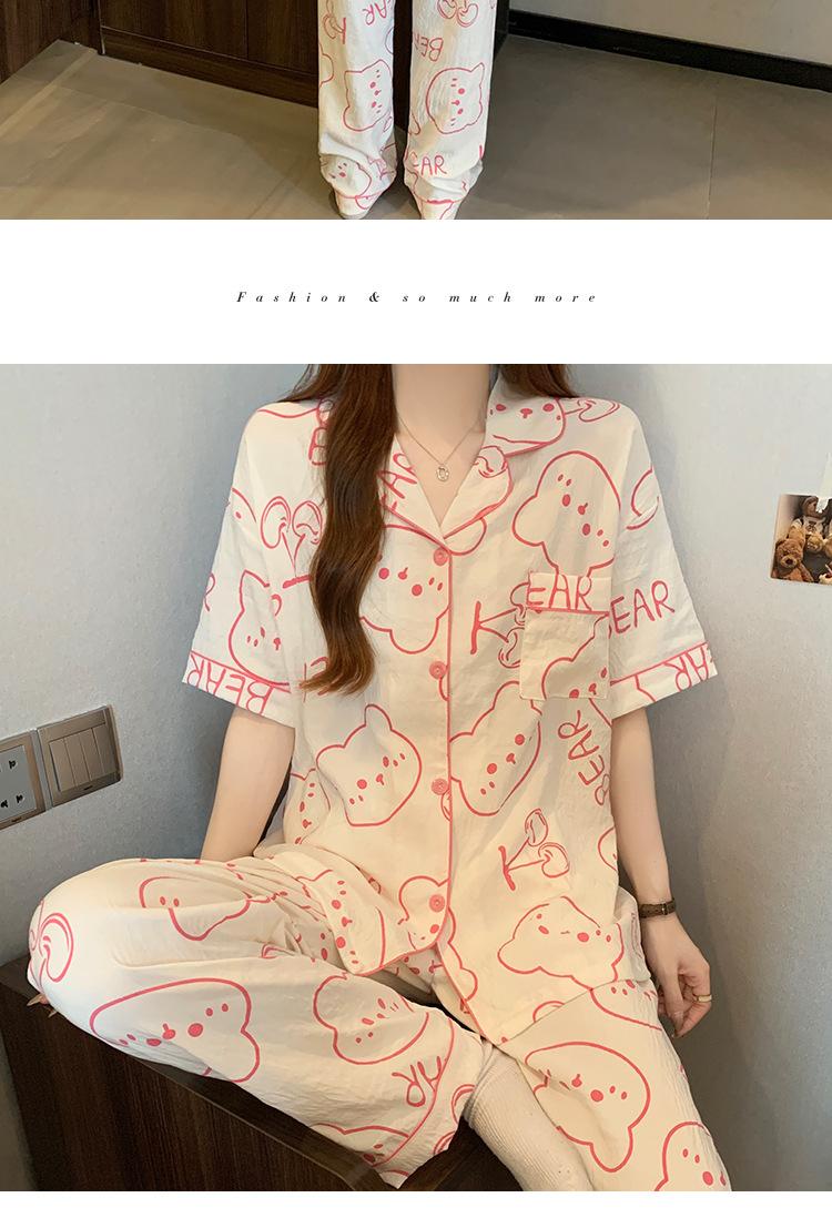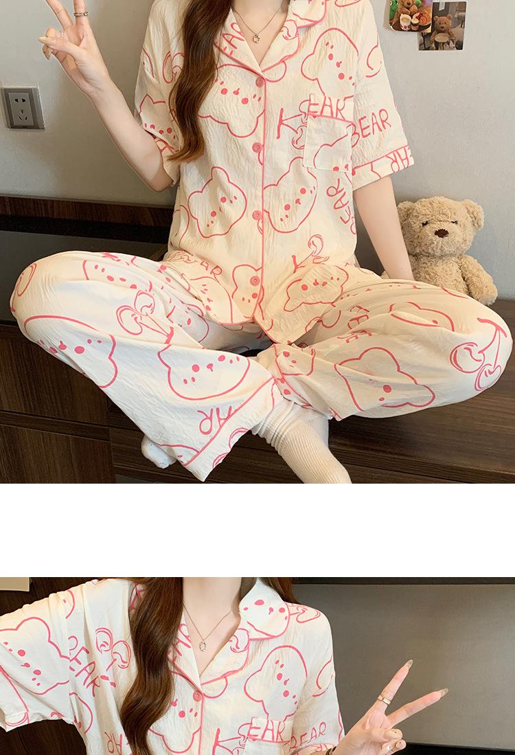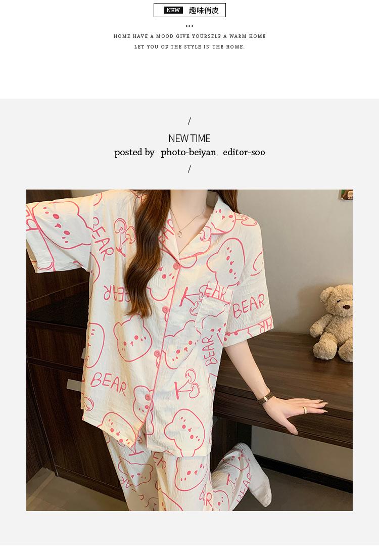 Pijama de Algodón Nube Estampado de Niña de Dibujos Animados Osito Rosa para Mujer Verano Nuevo Manga Corta Pantalón Ropa Casual para Casa Venta al por Mayor