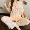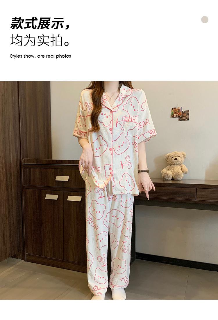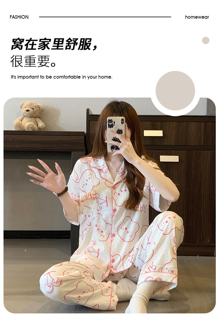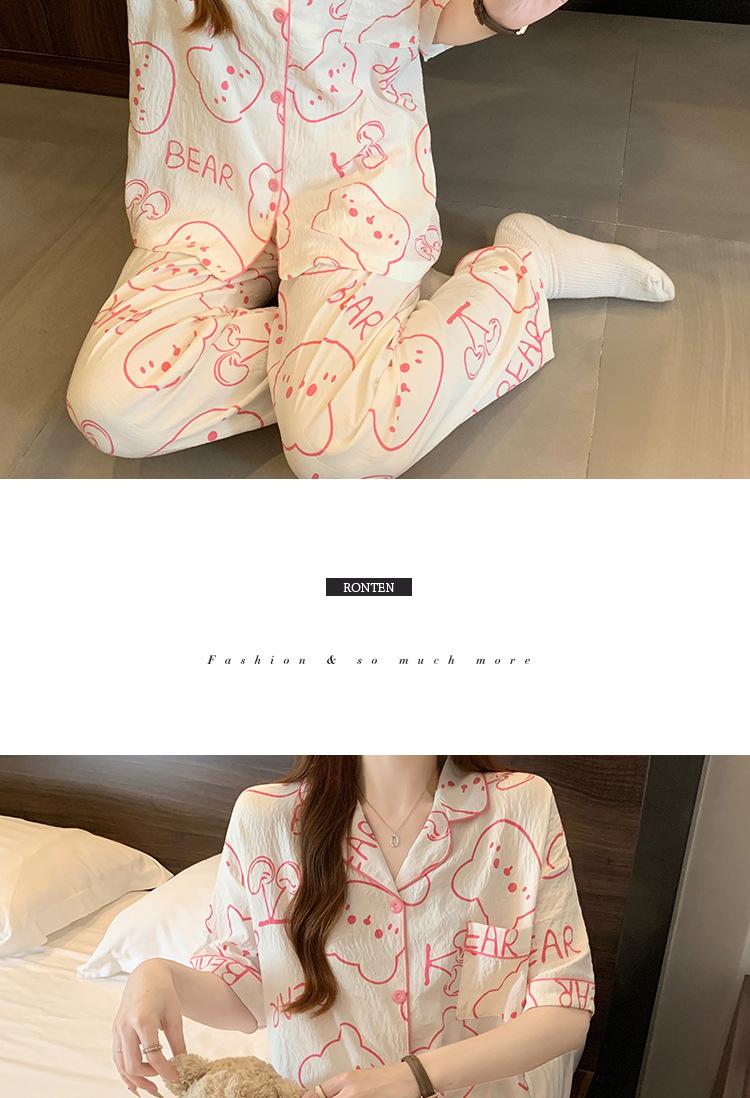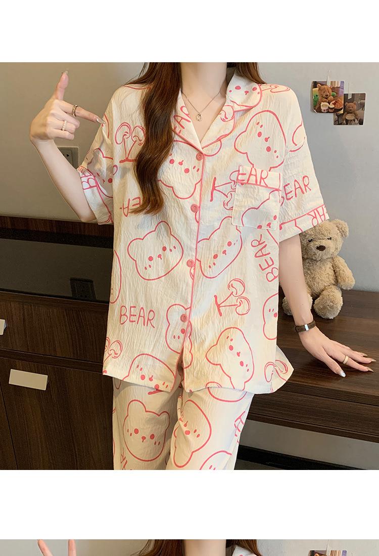 Pijama de Algodón Nube Estampado de Niña de Dibujos Animados Osito Rosa para Mujer Verano Nuevo Manga Corta Pantalón Ropa Casual para Casa Venta al por Mayor