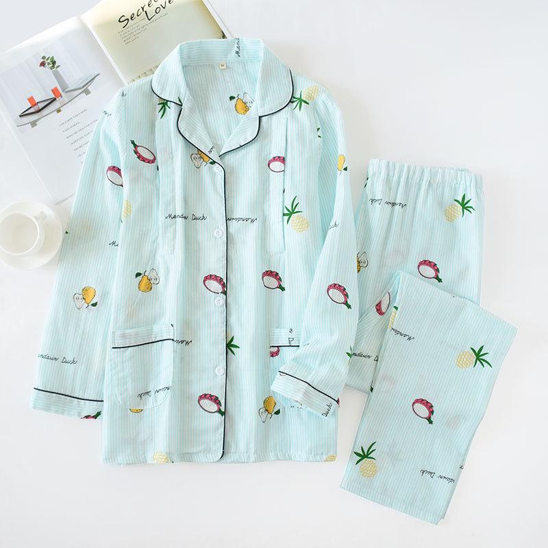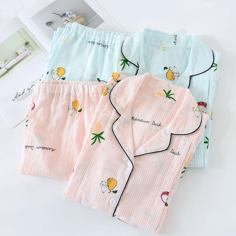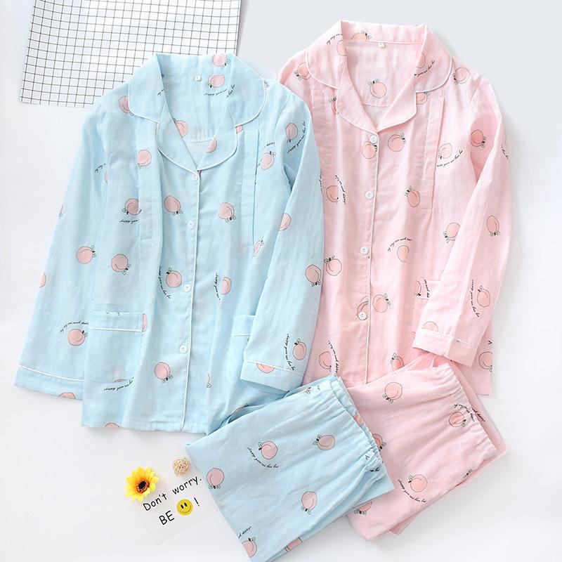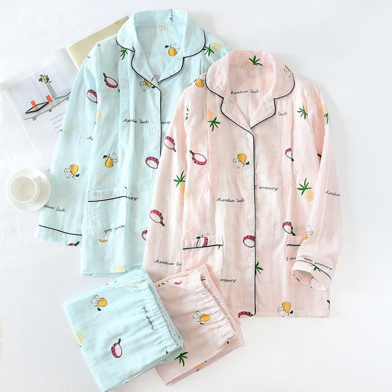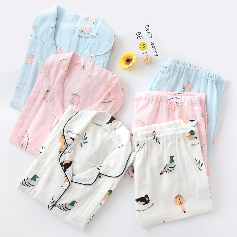 Ropa de Maternidad de Primavera y Otoño Gasa de Algodón Puro Delgada Ropa de Casa de Maternidad para Después del Parto Pijama de Maternidad para Lactancia Set para Mujer Versátil