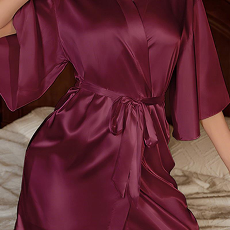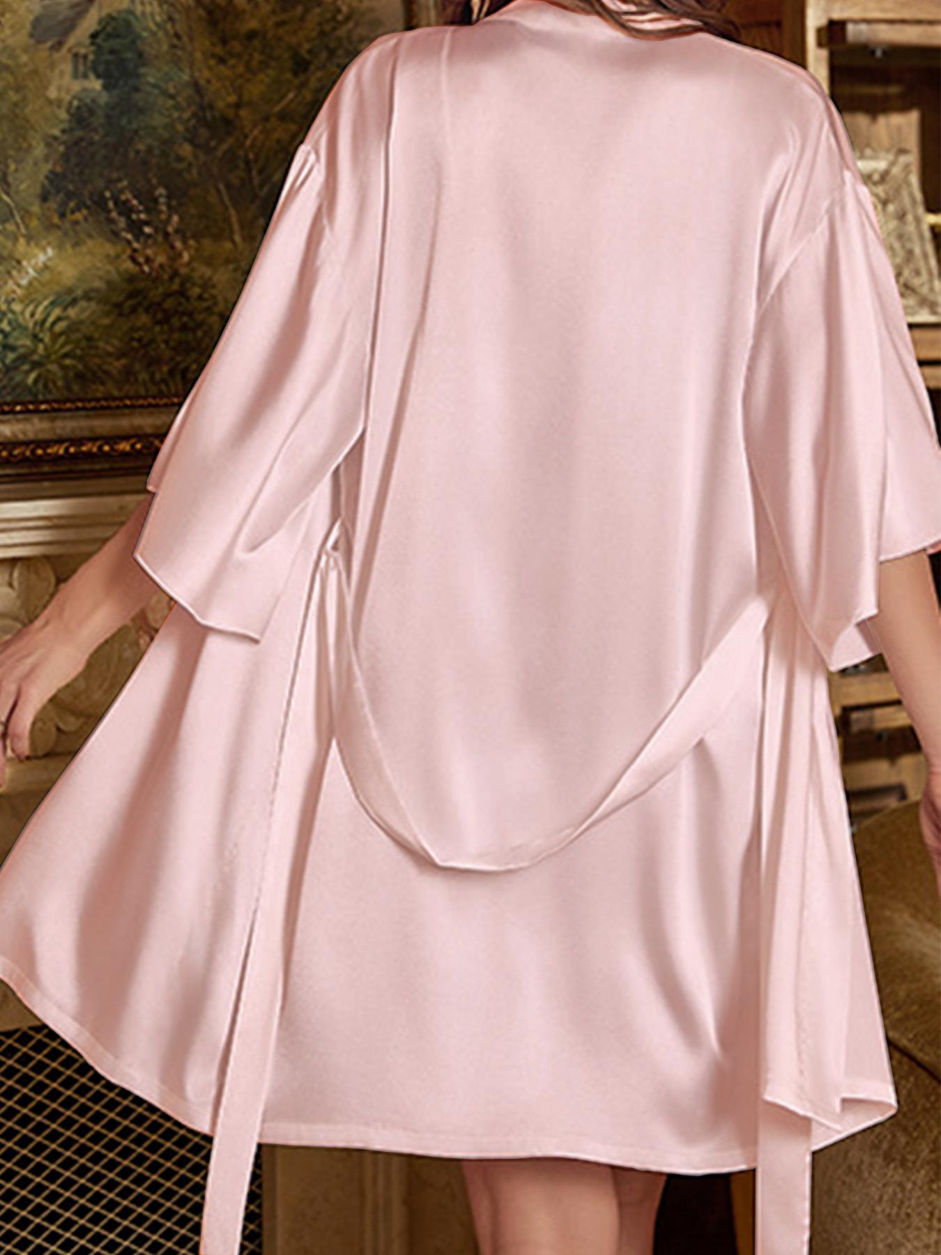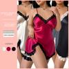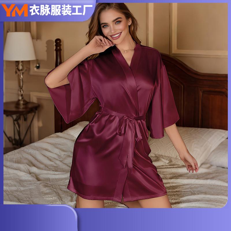 Pijama de Verano para Mujer Nuevo Transfronterizo de Dos Piezas Manga Corta Bata Falda con Tirantes Camisón de Satén Fino y Sexy para Mujer Venta al por Mayor