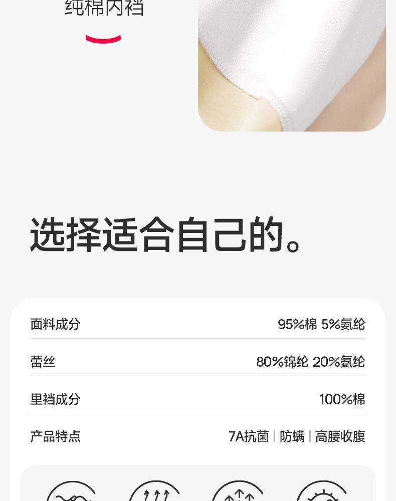 [7A Antibacterial] Ropa Interior para Mujer Entrepierna de Algodón Puro Cintura Alta Calzones Delgados Transpirables Levanta Glúteos Sexy Cómodo Talla Grande