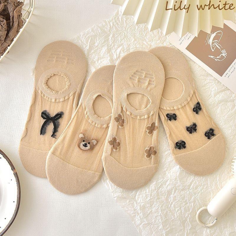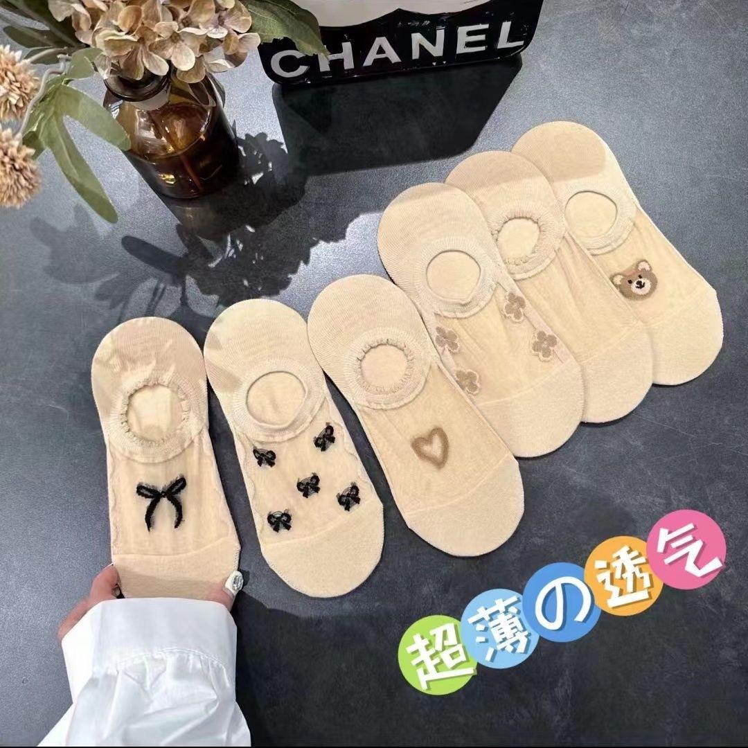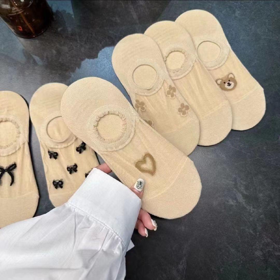 Calcetines de Primavera y Verano para Mujer, Calcetines Invisibles de Seda de Hielo Color Piel, Antideslizantes, Calcetines de Barco de Silicona que No se Ven, Calcetines de Corte Bajo Transpirables de Moda al Por Mayor