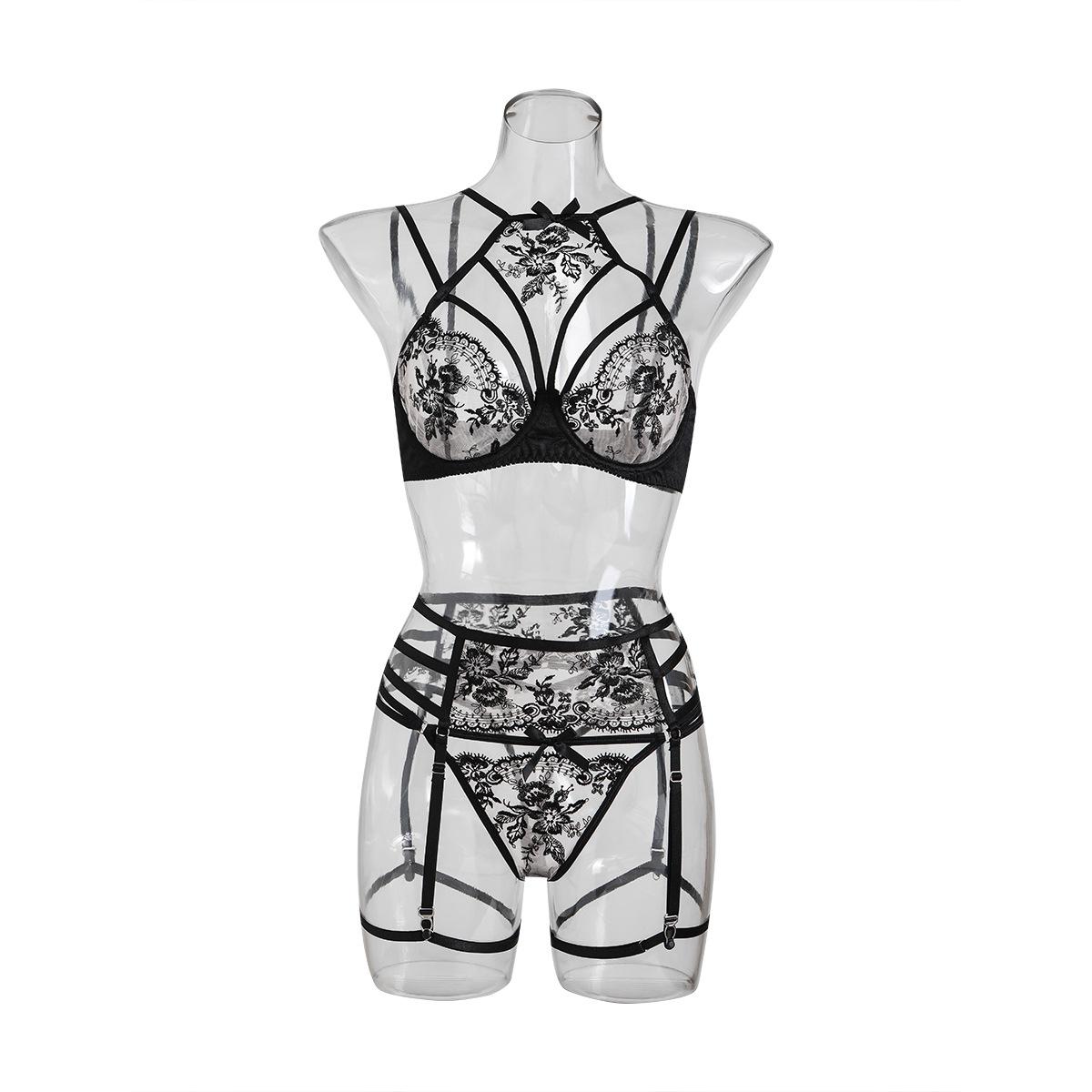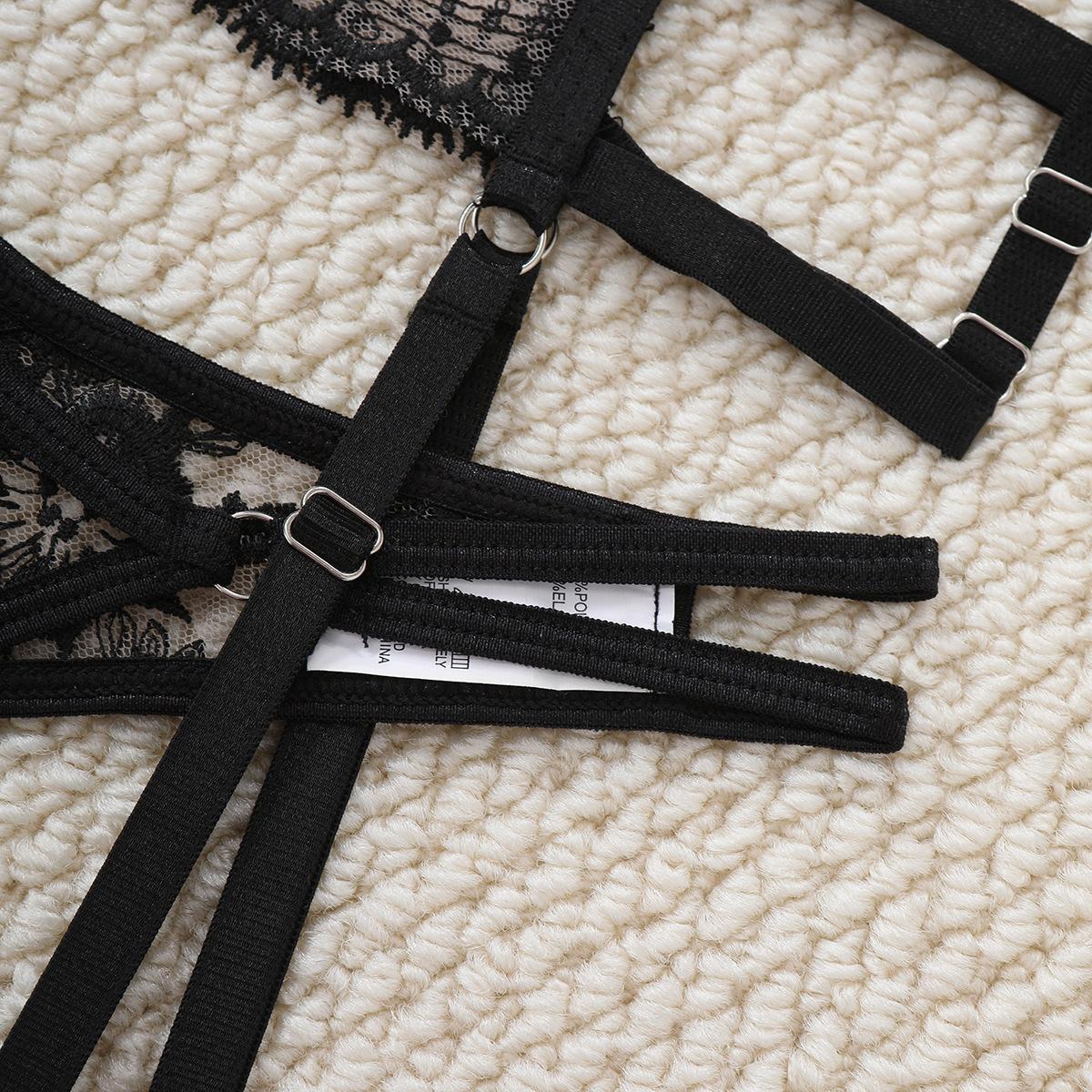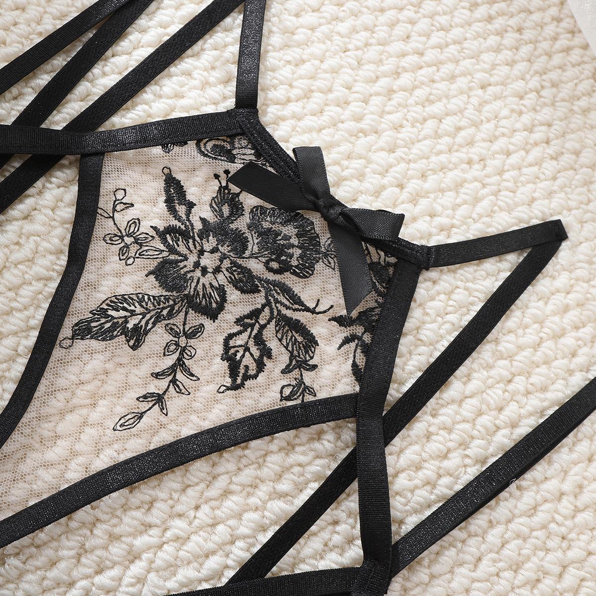 Explosiones de comercio exterior Moda nueva para mujer europea y americana Encaje bordado Encaje cosido Cruz Ropa interior sexy Traje divertido