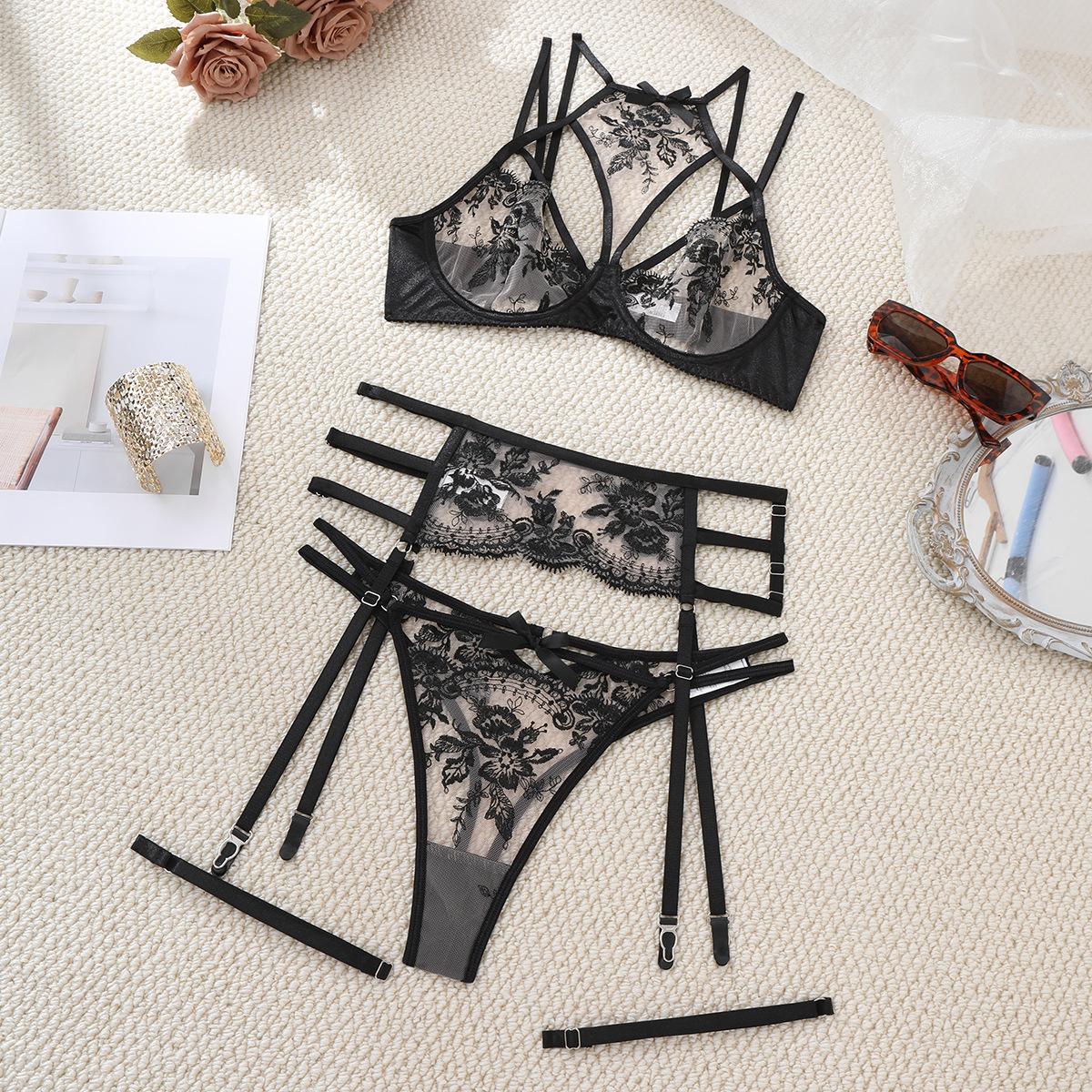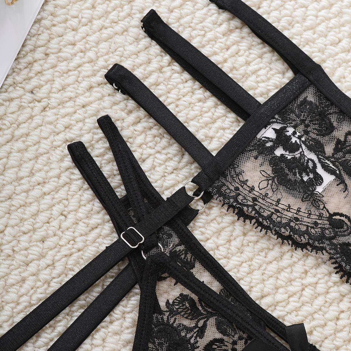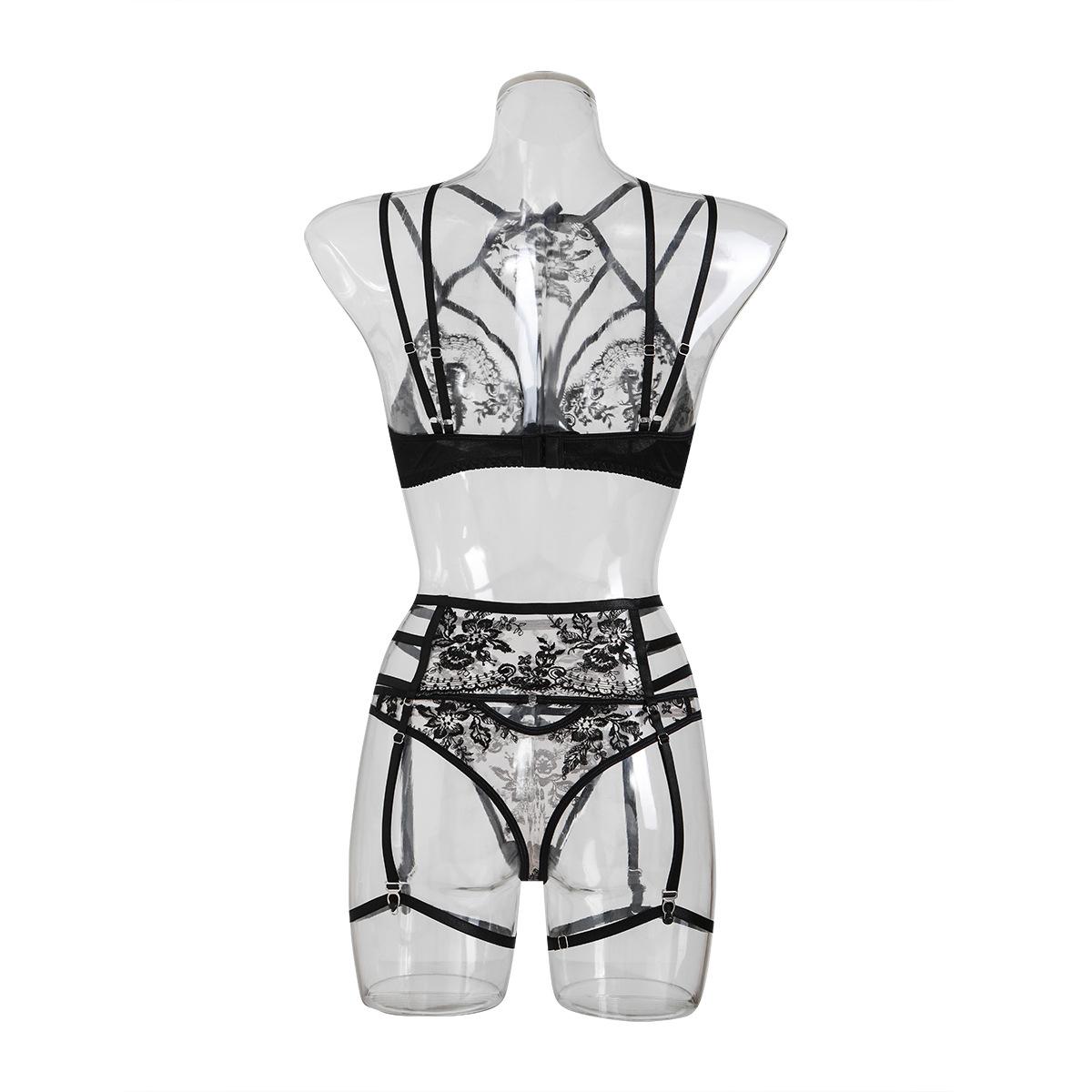 Explosiones de comercio exterior Moda nueva para mujer europea y americana Encaje bordado Encaje cosido Cruz Ropa interior sexy Traje divertido