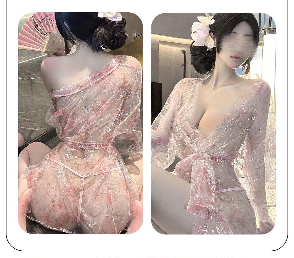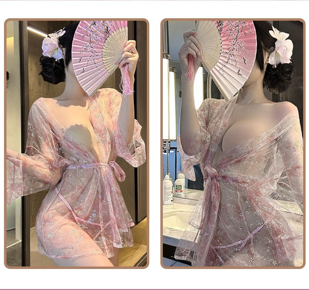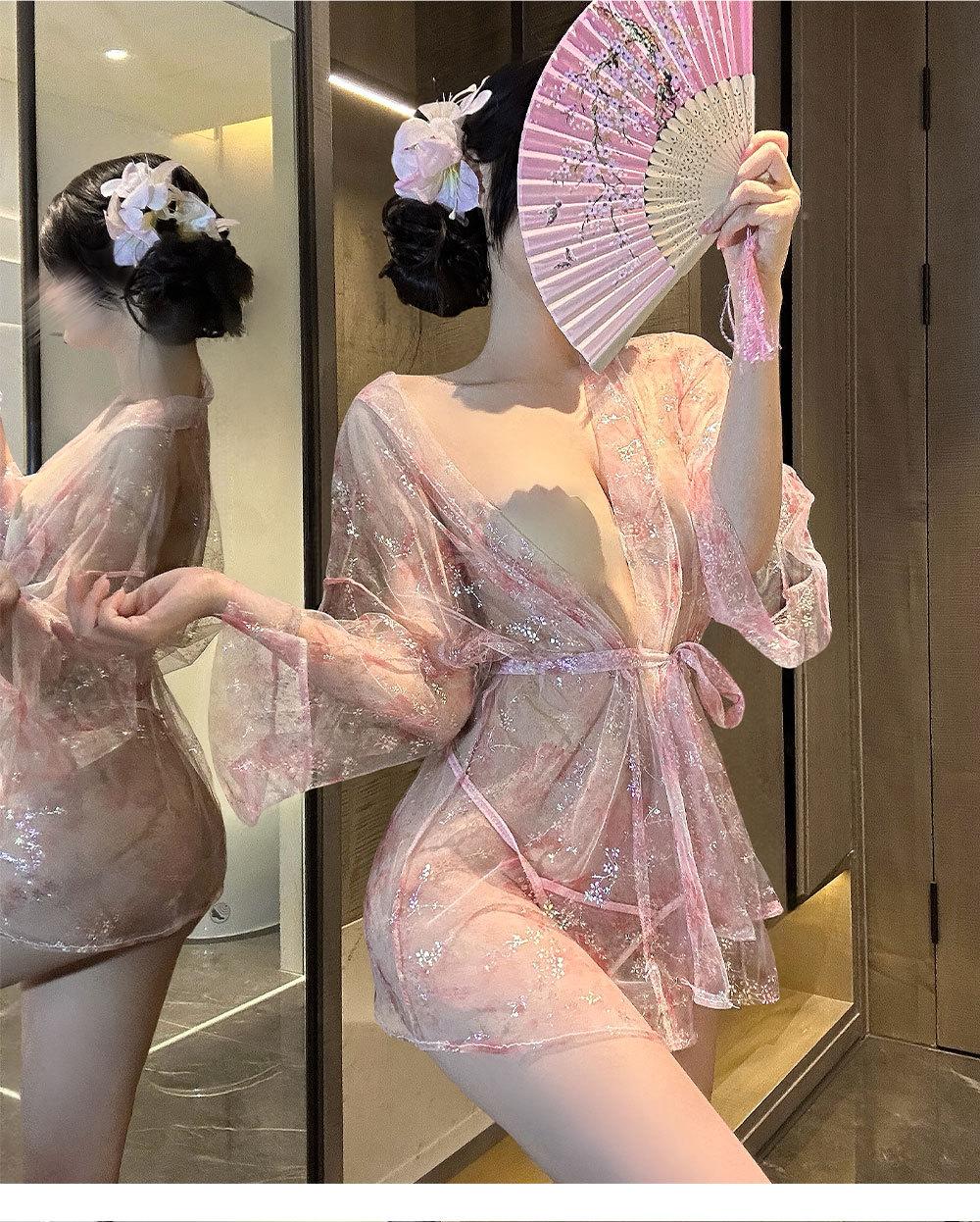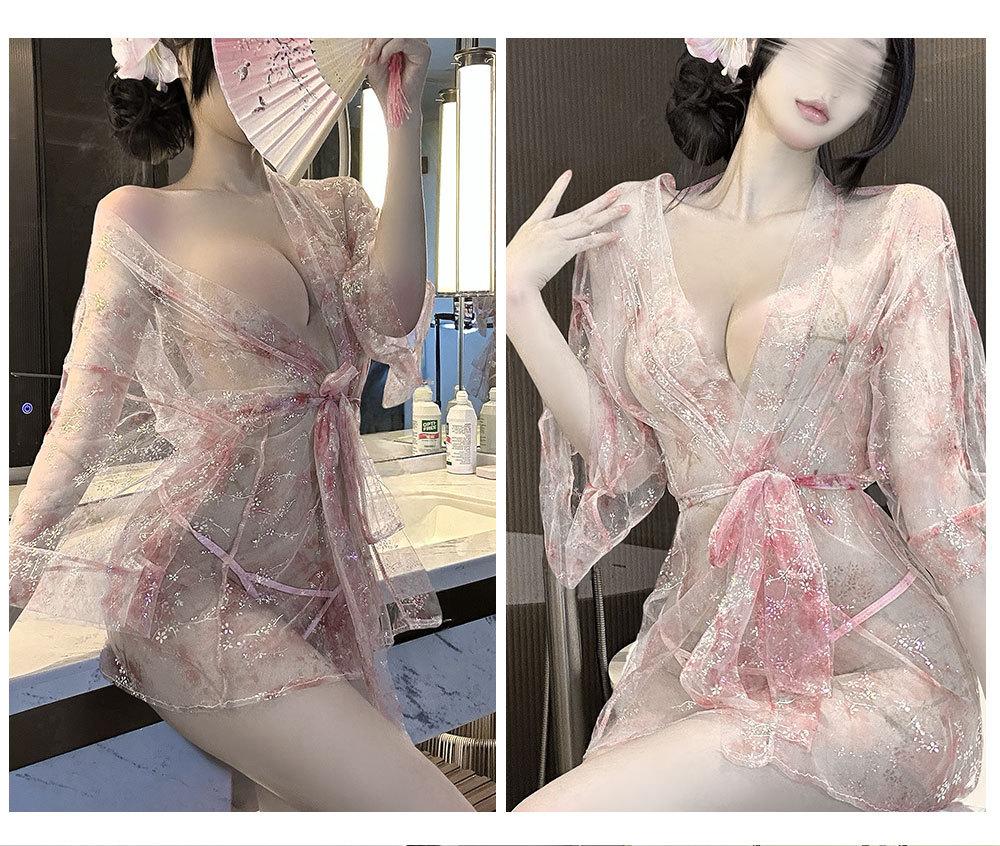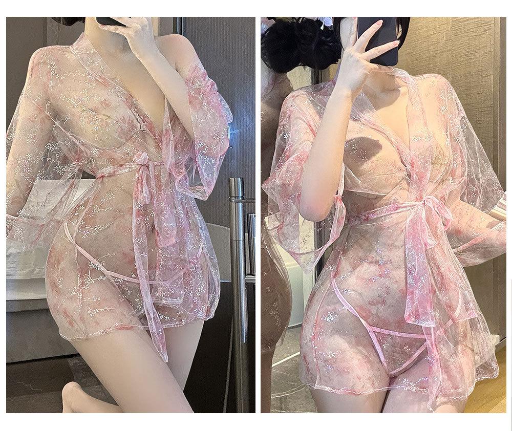Lencería Sexy Bata con Cuello en V Una Pieza Transparente Ropa Exterior Pijama Sexy Cárdigan y Ropa Estampados en Dorado