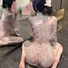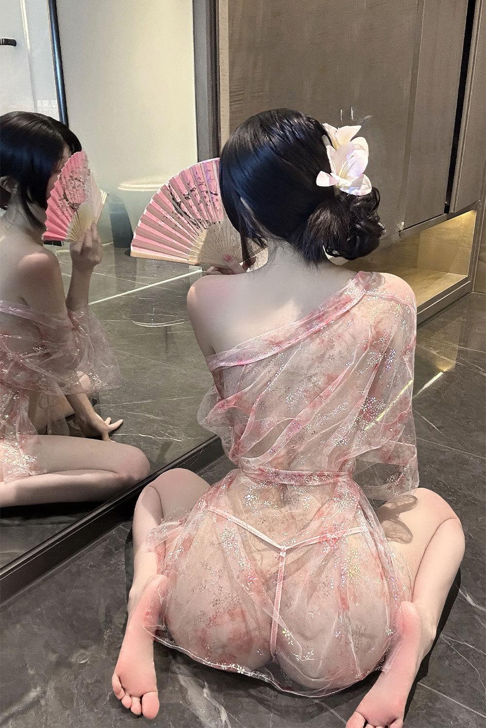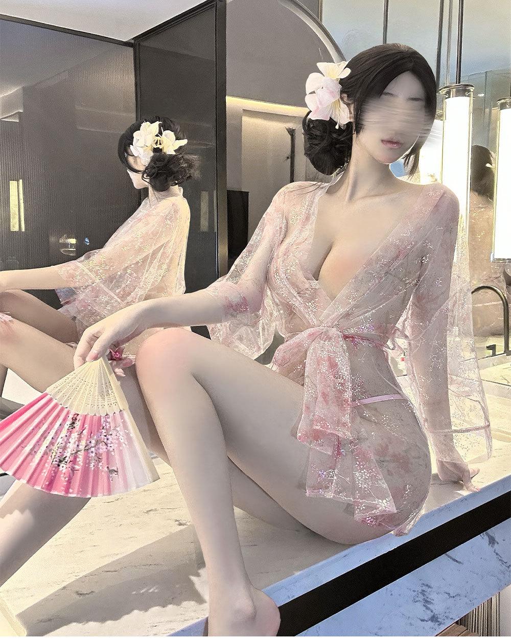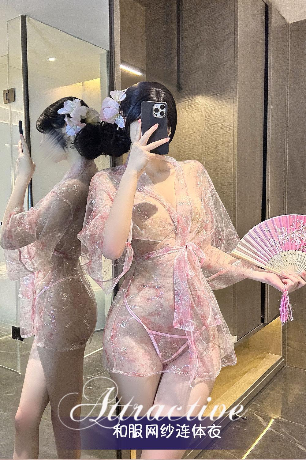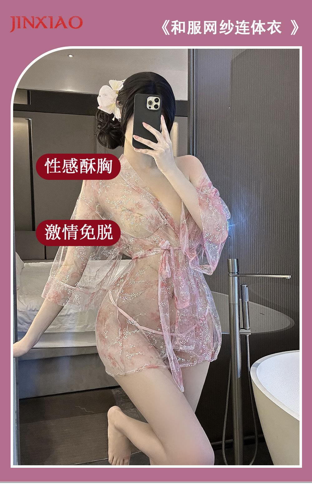 Lencería Sexy Bata con Cuello en V Una Pieza Transparente Ropa Exterior Pijama Sexy Cárdigan y Ropa Estampados en Dorado