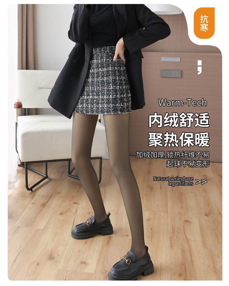 Artefacto de Pierna Ligera de Seda Negra para Pantimedias Gruesas de Invierno para Mujer Negro Transparente al Color de la Piel de Una Pieza Sin Costuras Falsos Leggings Afelpados