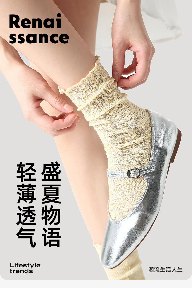 Calcetines finos de verano renacentistas para mujer, de hilo de lunares, estilo princesa, de punto fino, de malla, transpirables, de tubo medio para verano.