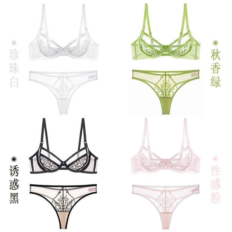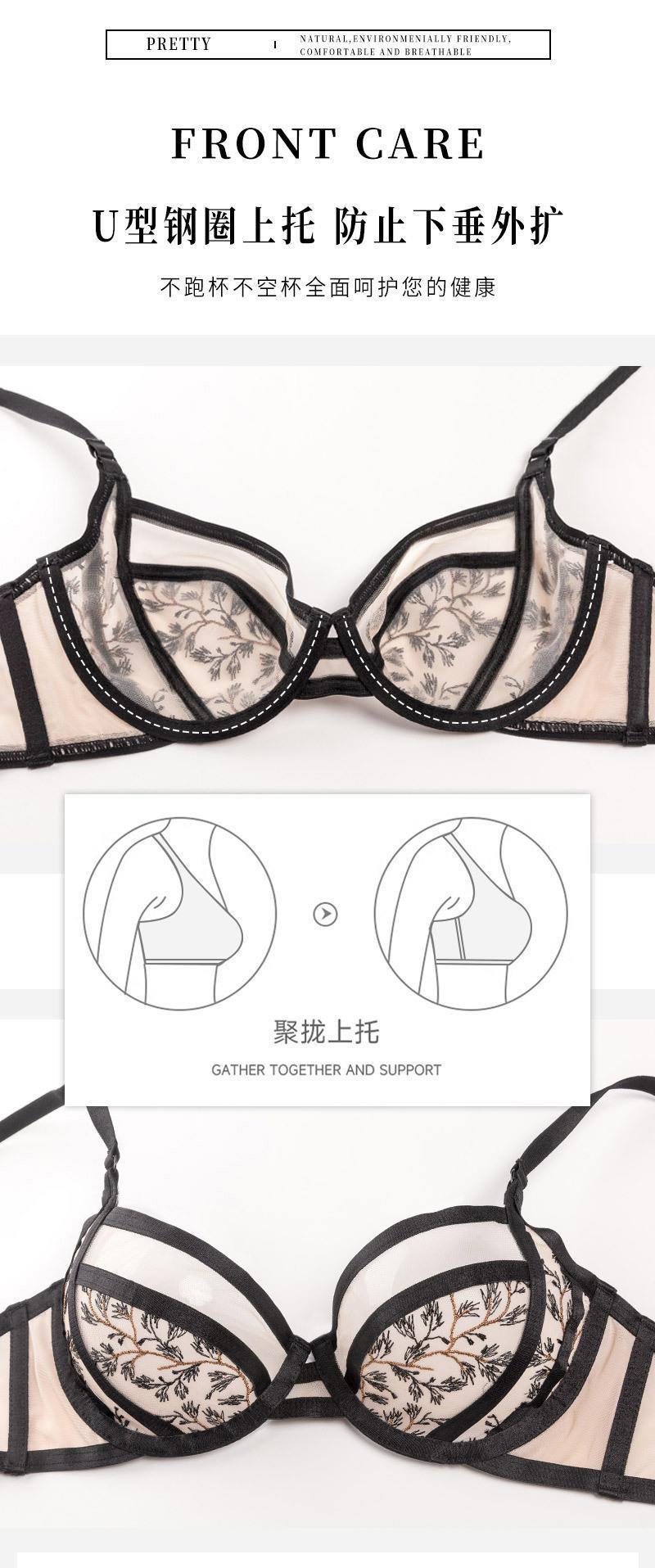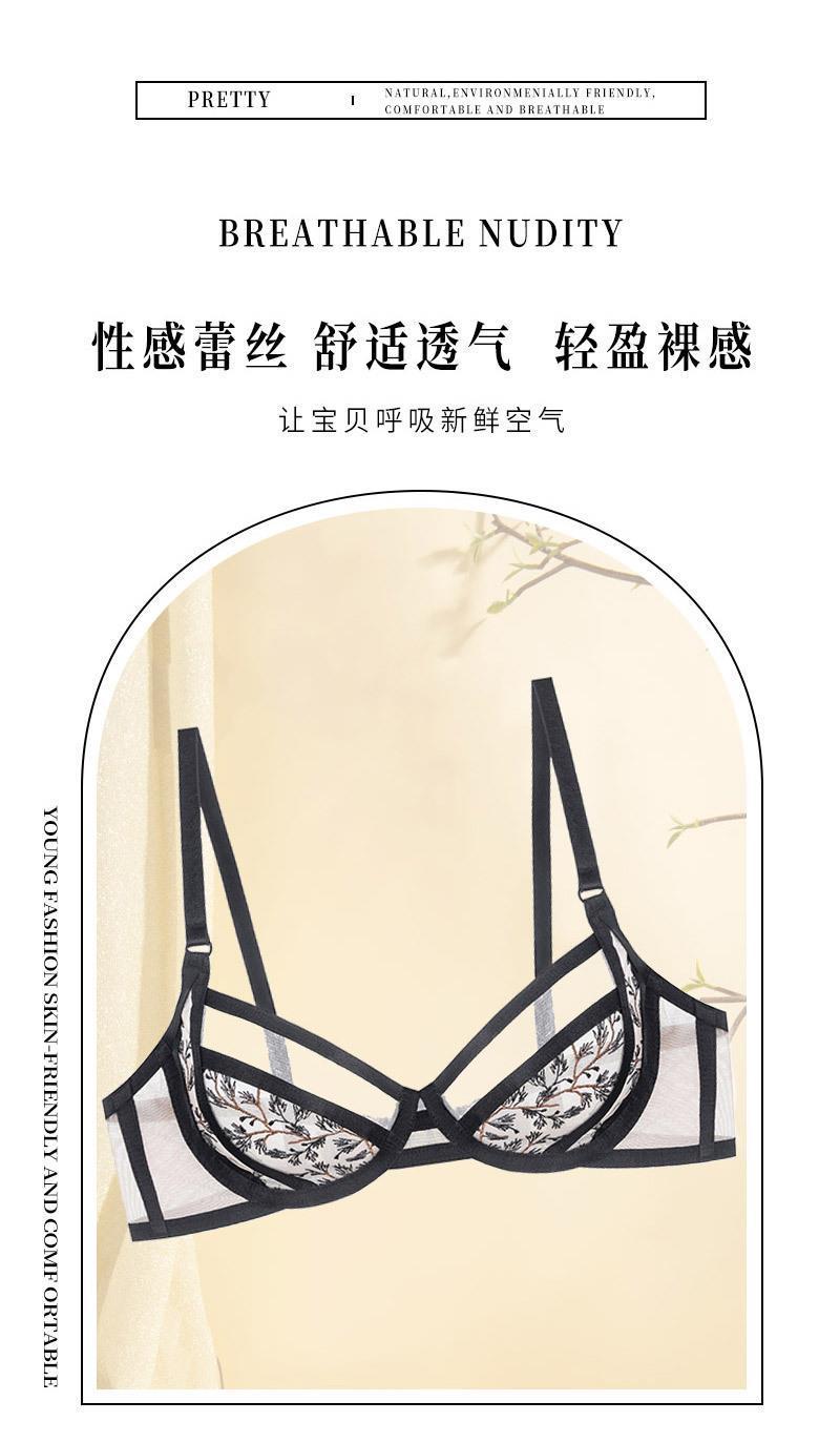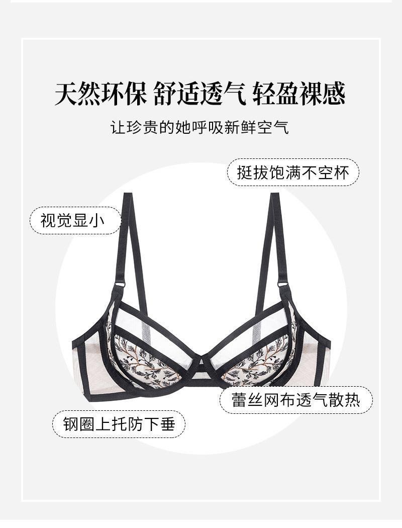 Íntimos Ultrafinos Personalizados Copa de Cristal para Mujer Encaje Bordado Íntimos Busto Grande Muestra Pequeño Anticaída Sexy Conjunto de Brasier