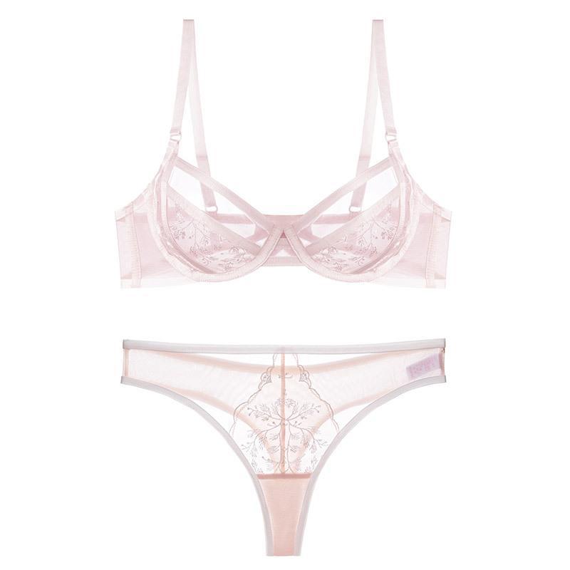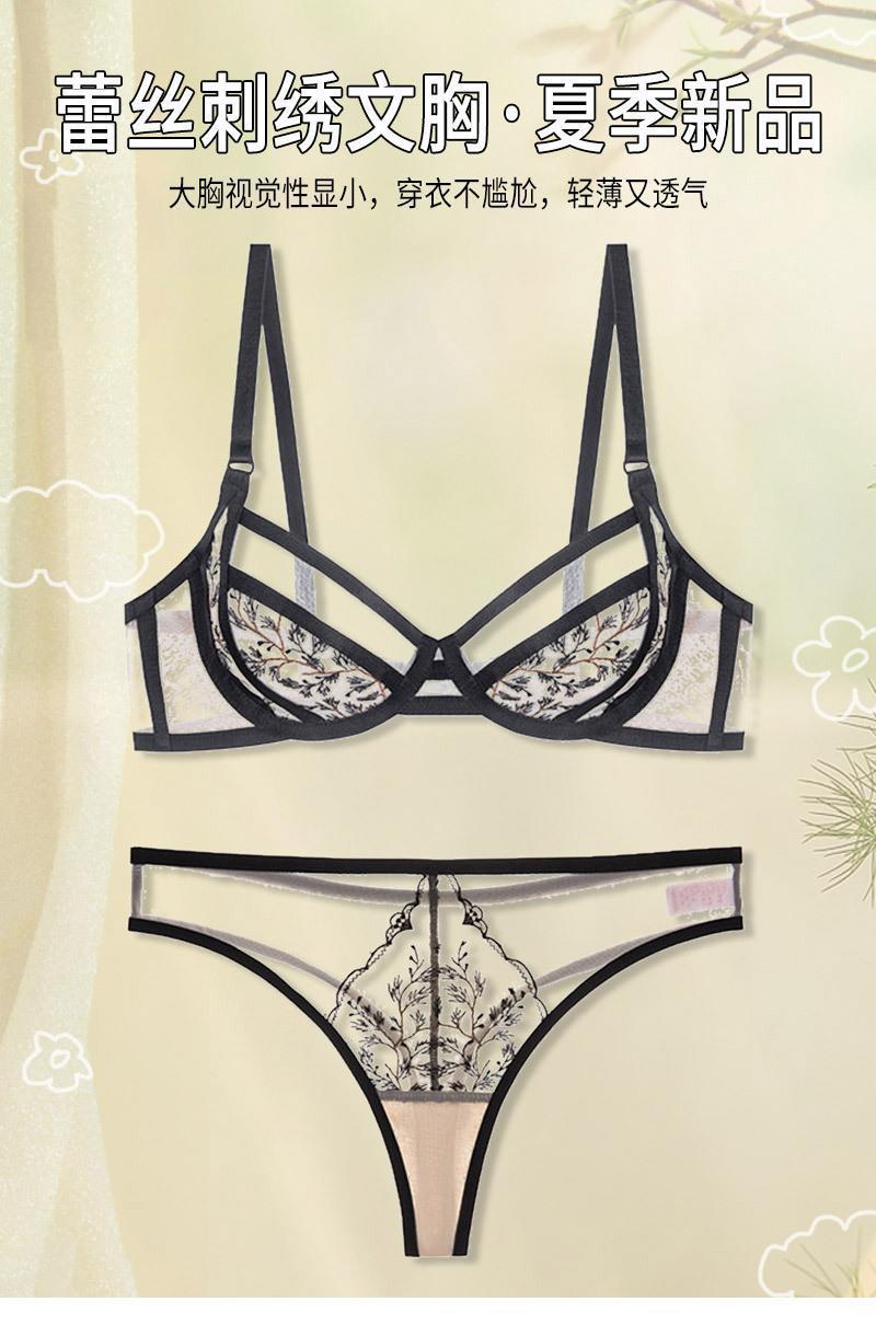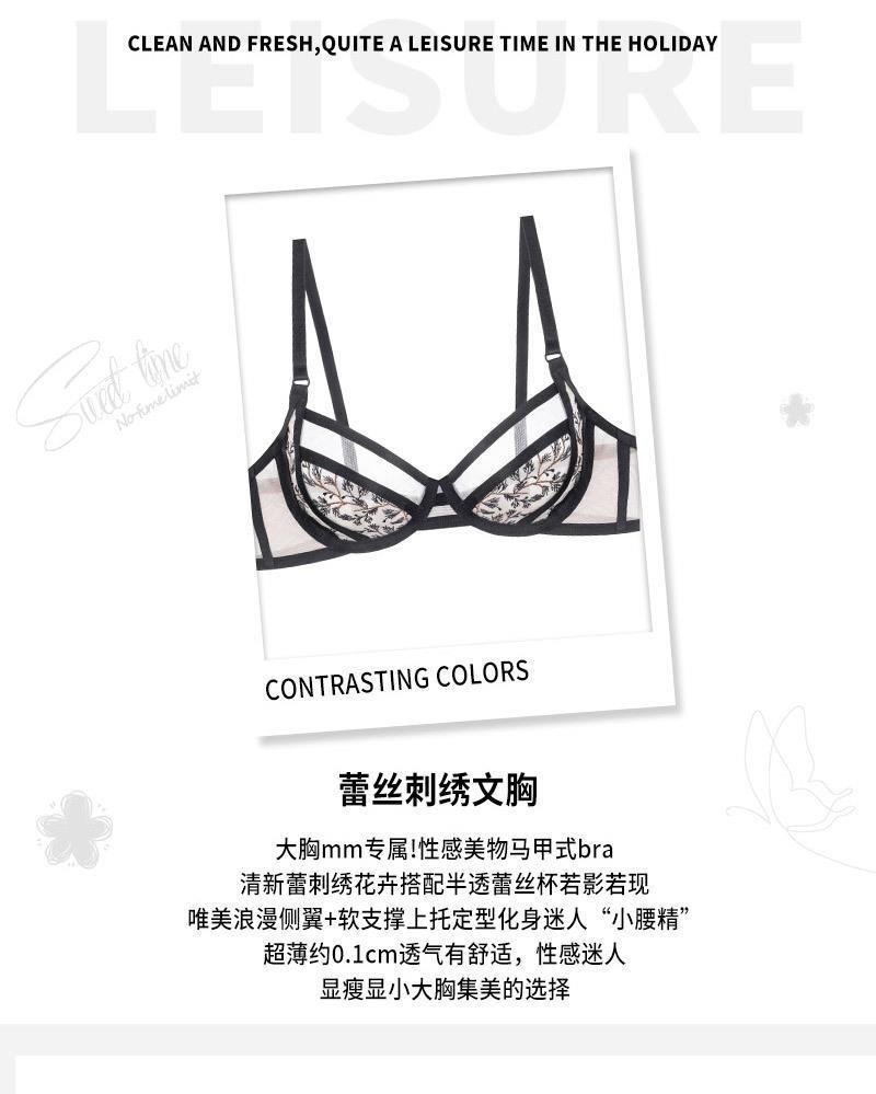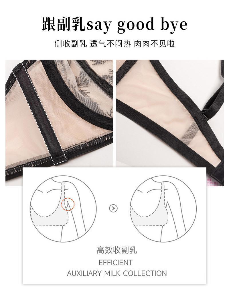 Íntimos Ultrafinos Personalizados Copa de Cristal para Mujer Encaje Bordado Íntimos Busto Grande Muestra Pequeño Anticaída Sexy Conjunto de Brasier