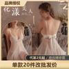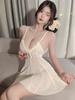 Lencería Indulgente, Pijamas Sexy, Deseo Puro, Liguero Transparente de Gasa Suave Descubierto en la Espalda, Escote Profundo en V, No es Necesario Quitarlo, Camisón para Flirtear 6437