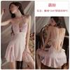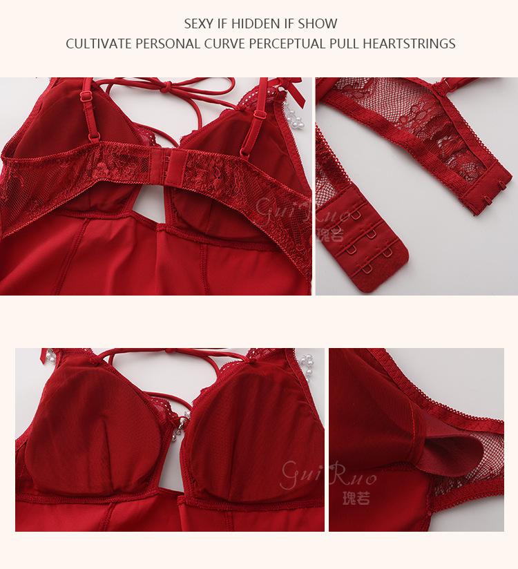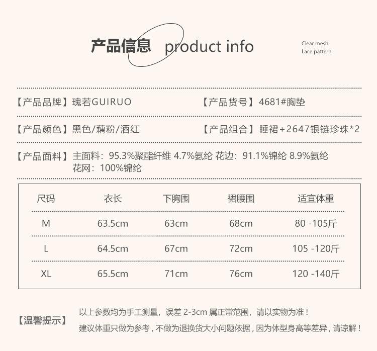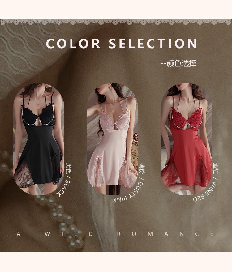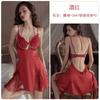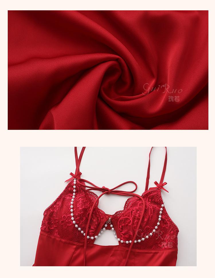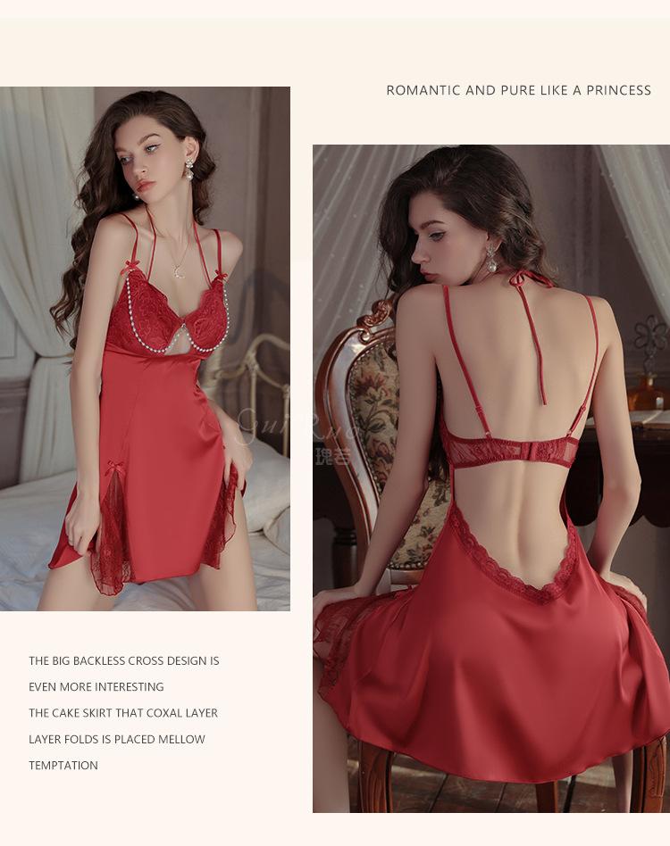 Guiruo Talla Grande Lencería de Satén de Lujo Accesible Encaje Dulce Sexy Escote Profundo V con Almohadillas para el Busto Camisón para el Hogar Traje para Mujer 4681