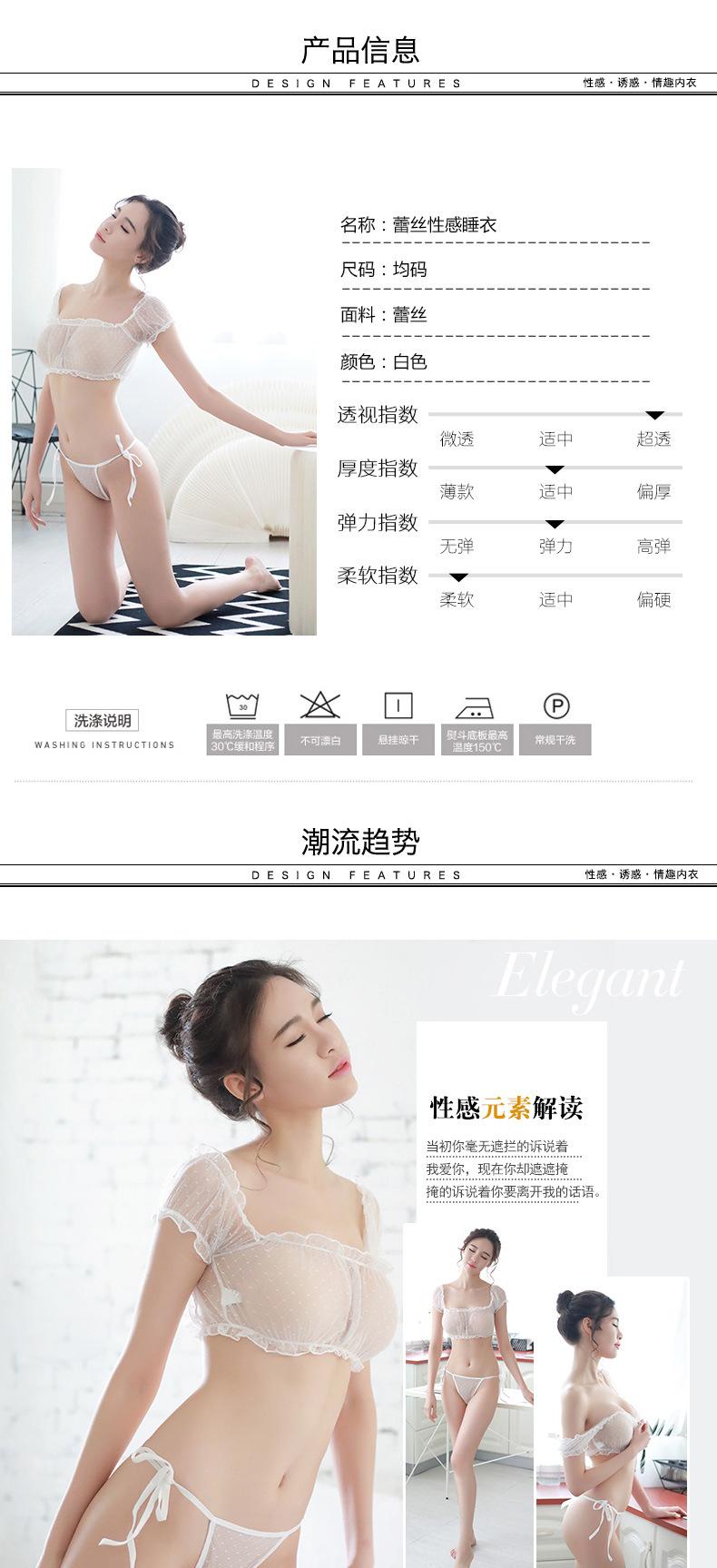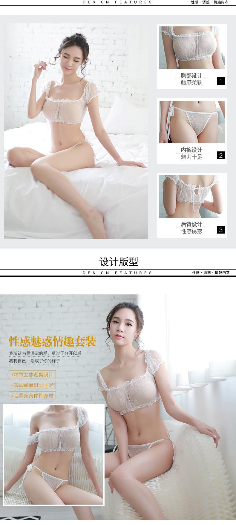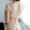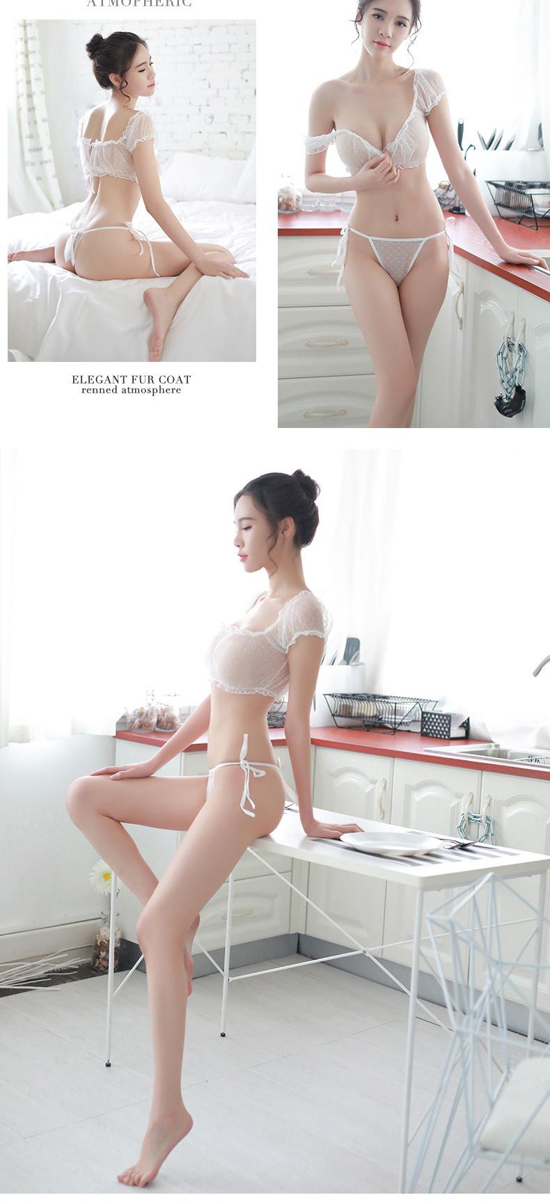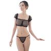 Lencería Sexy para Mujer Gasa Transparente Recorte Tentación Un Hombro Manga Corta Sexy Tanga Conjunto de Pijama Nuevo 1544