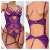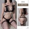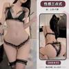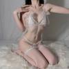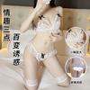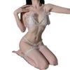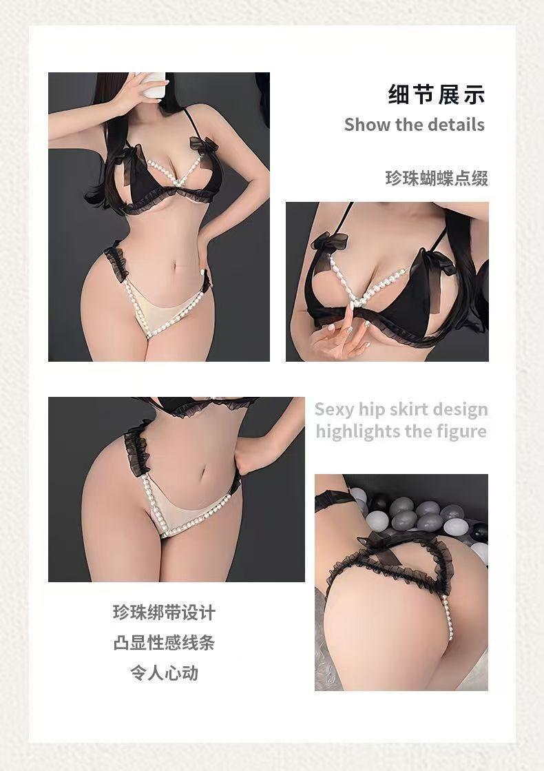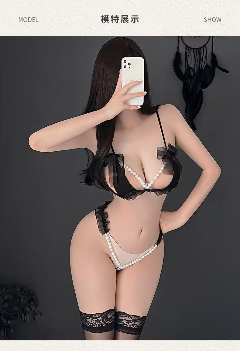 Lencería Sexy, Sujetador Sexy de Encaje con Lazo de Tres Puntos con Perlas, Tanga Abierta en la Entrepierna, No Necesitas Quitarla, Tentación de Chica
