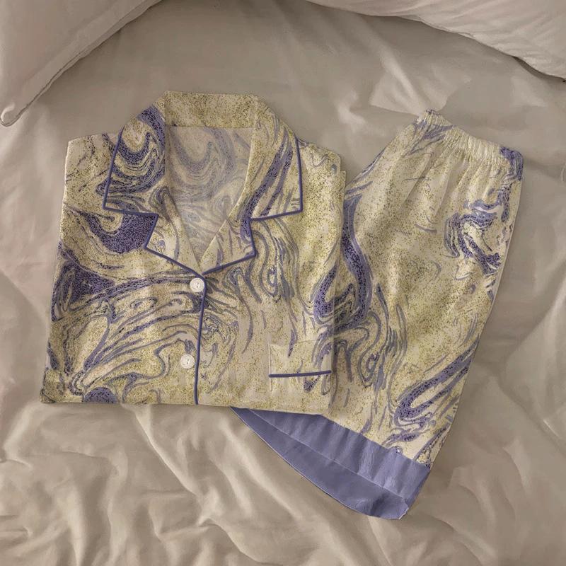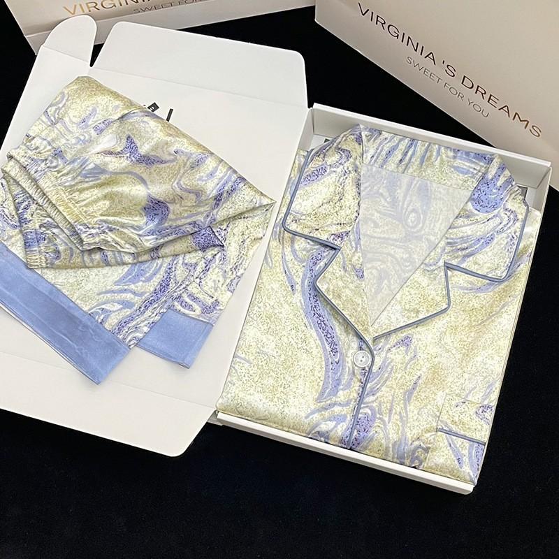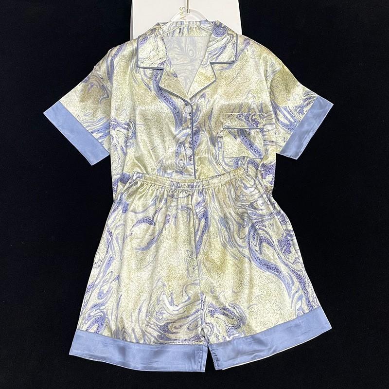 Verano nuevo pijama de seda para mujer traje ins de alto valor pantalones cortos de manga corta ropa de casa para mujer se puede usar al por mayor