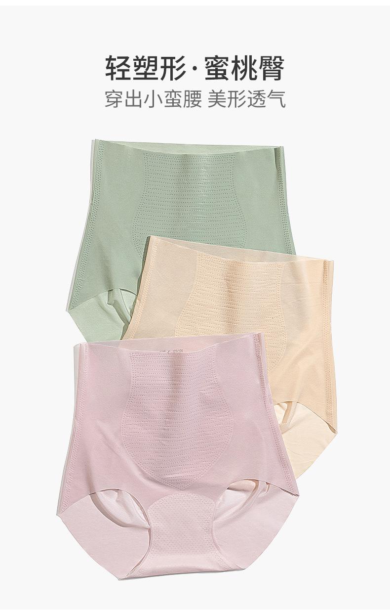 Ropa interior de cintura alta de seda de hielo sin costuras para mujer, con proteína de seda, antibacteriana, para levantar la cadera y la entrepierna, para ejercicios de yoga, bragas finas