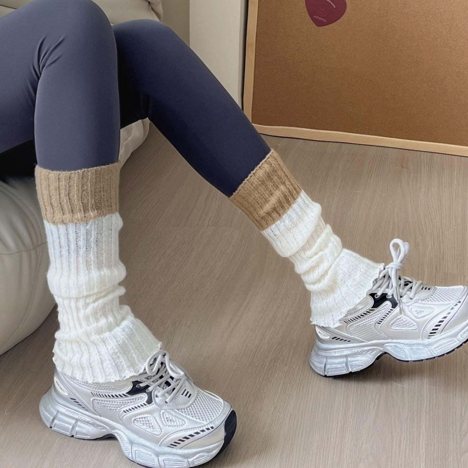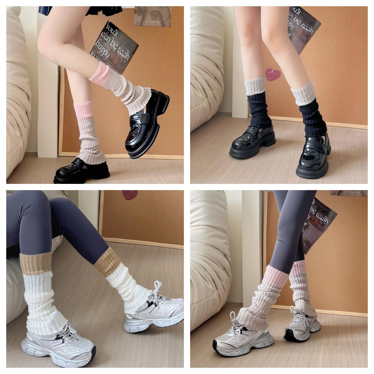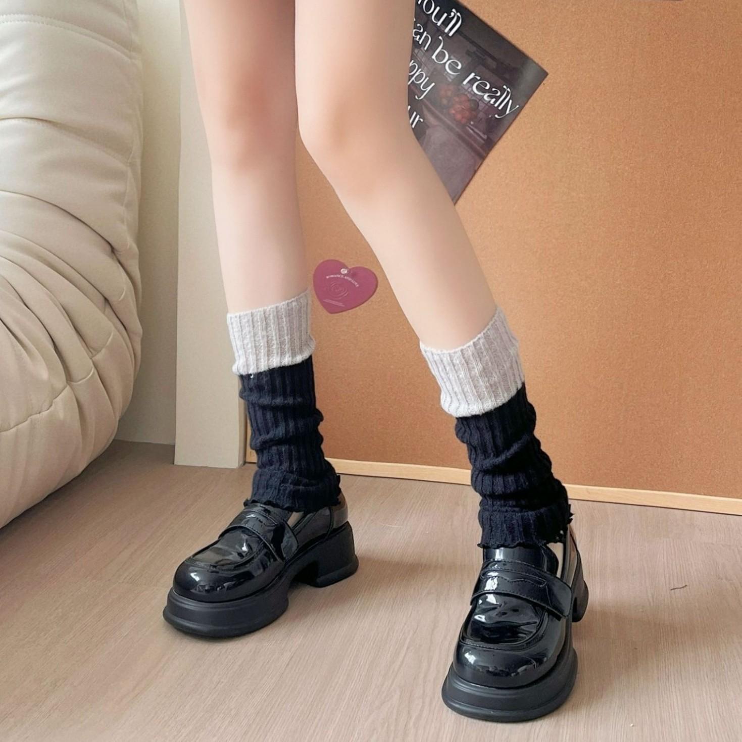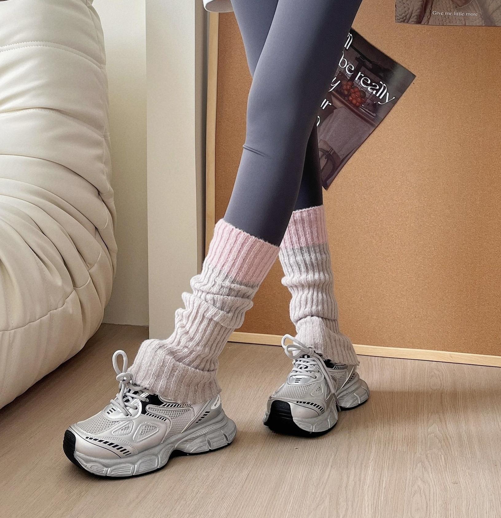 Cubrepies, Calcetines de Felpa, Calentadores de Pierna para Mujer, Combinación de Colores Otoño e Invierno Y2K con Zapatos de Cuero Pequeños, Calcetines de Felpa hasta la Pantorrilla para Primavera, Calcetines de Punto