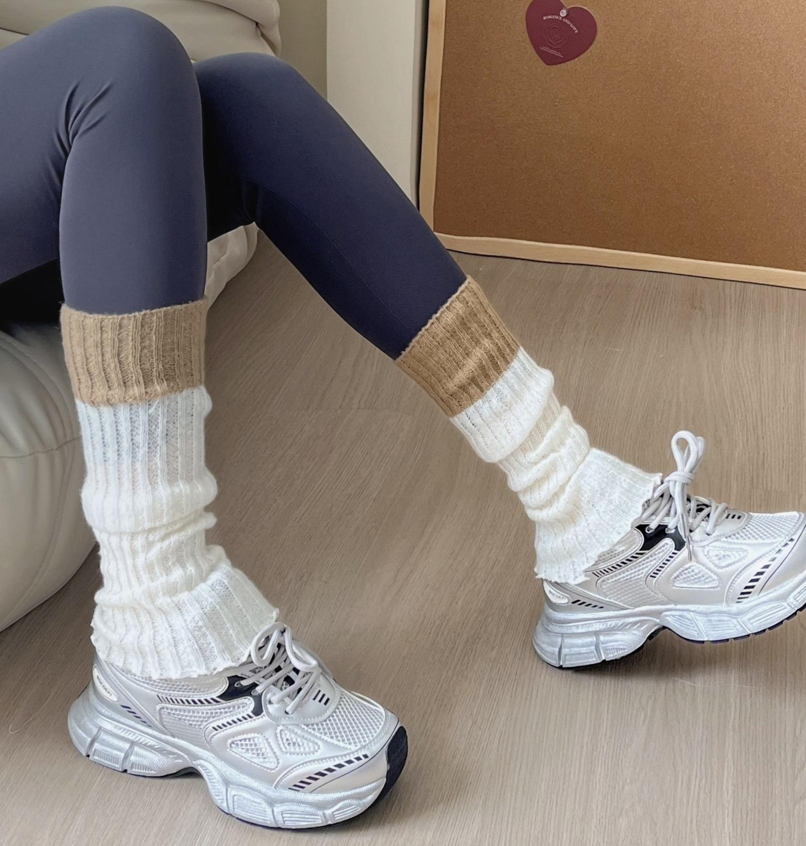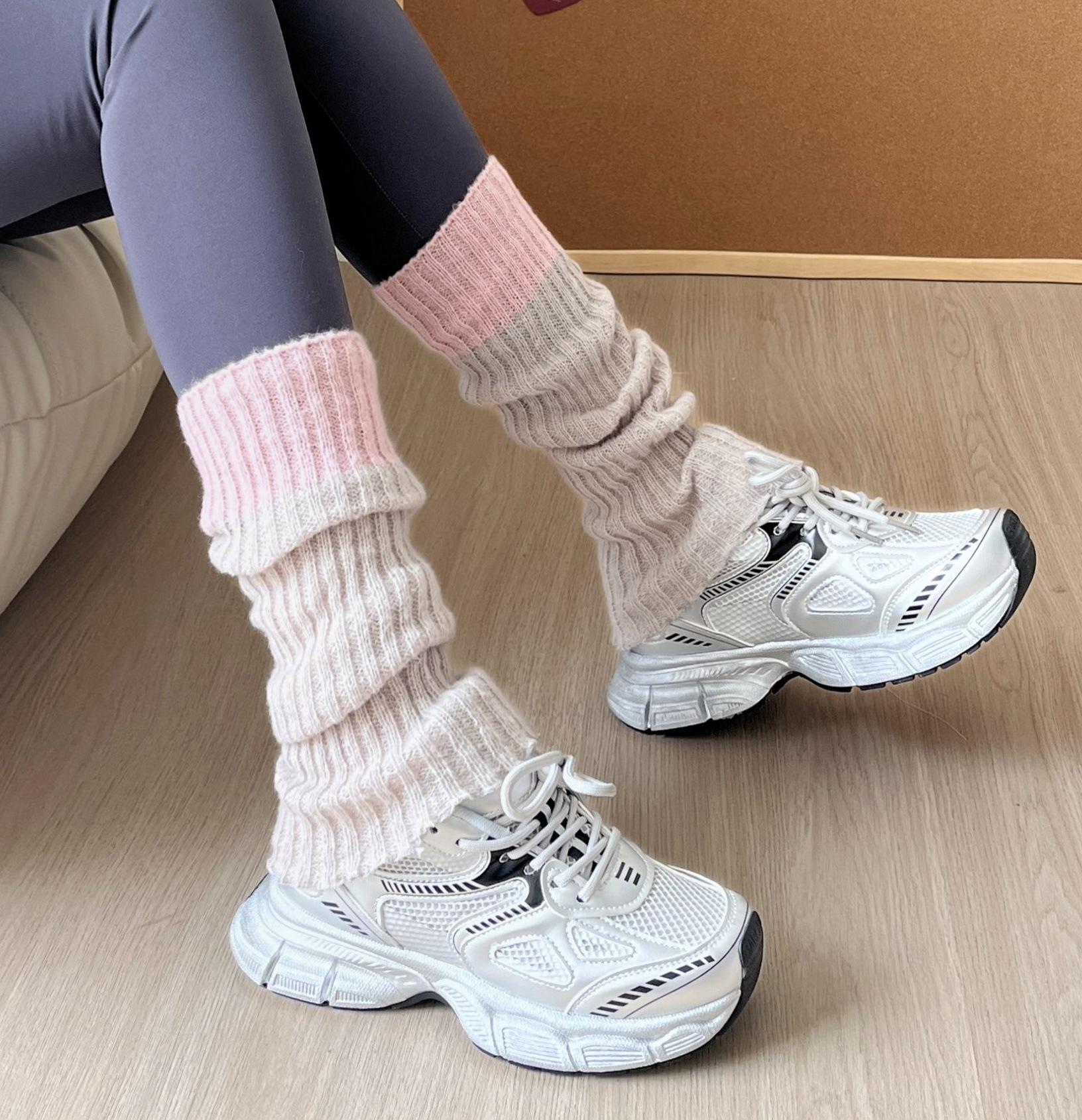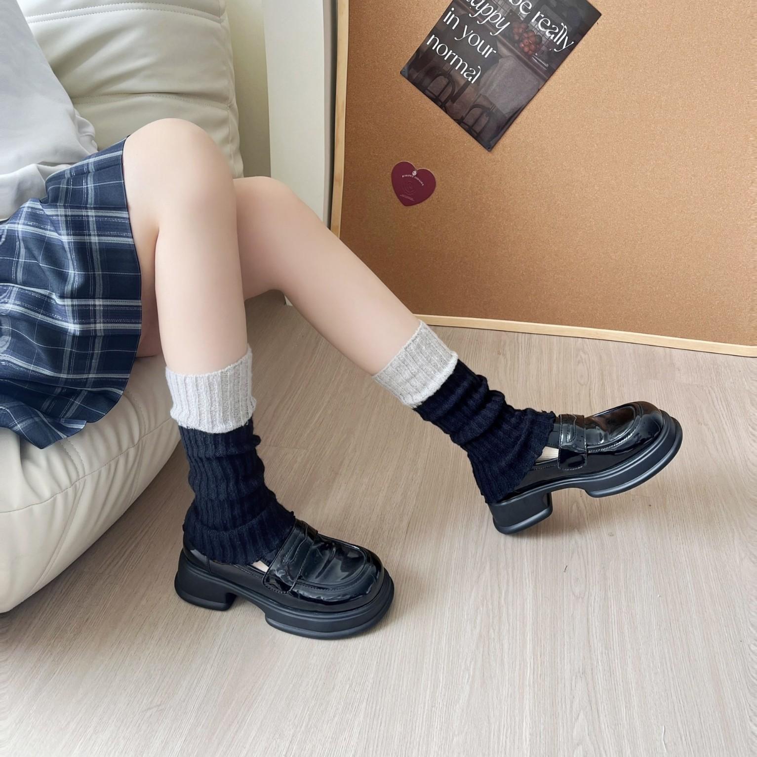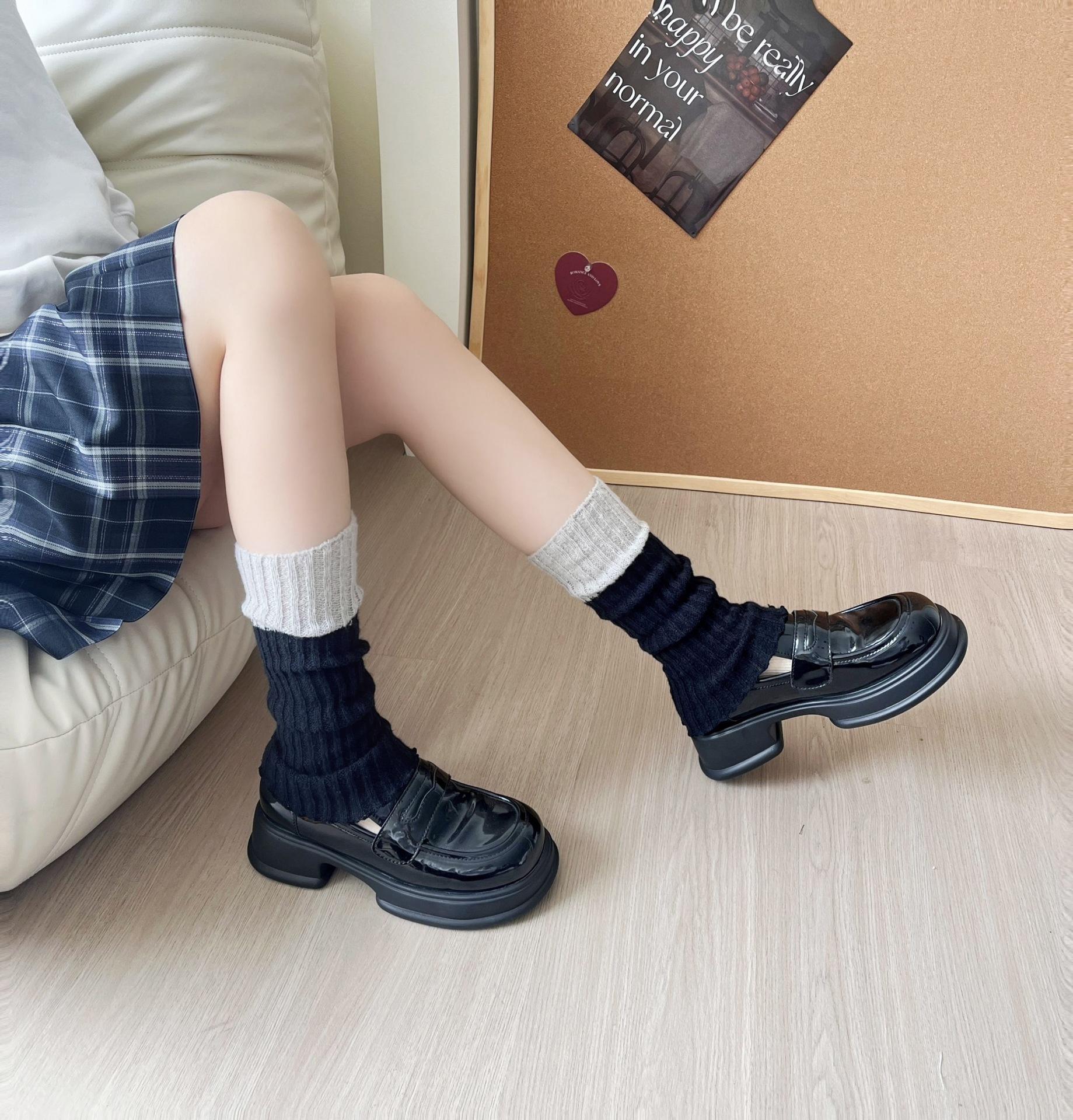Cubrepies, Calcetines de Felpa, Calentadores de Pierna para Mujer, Combinación de Colores Otoño e Invierno Y2K con Zapatos de Cuero Pequeños, Calcetines de Felpa hasta la Pantorrilla para Primavera, Calcetines de Punto