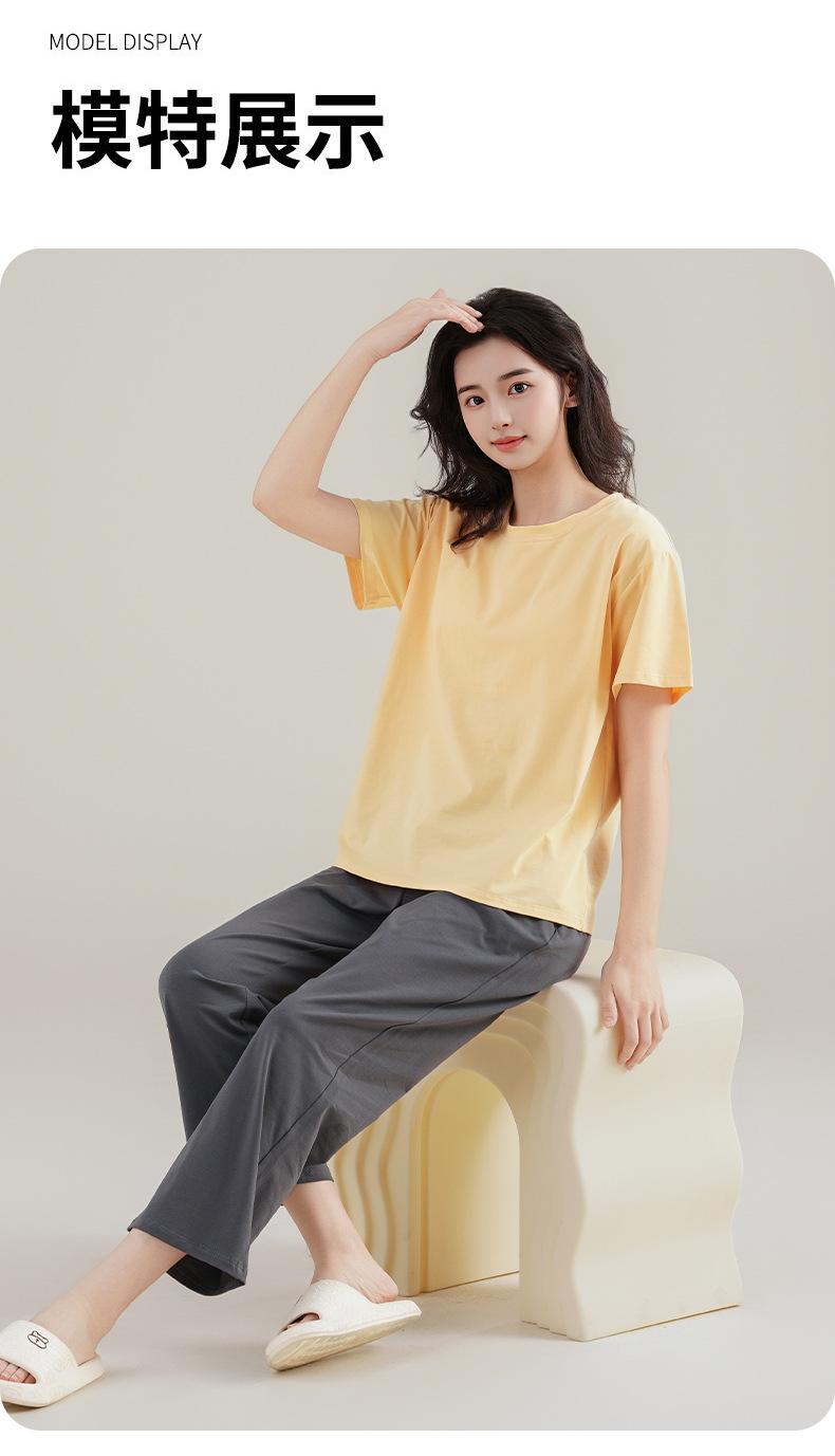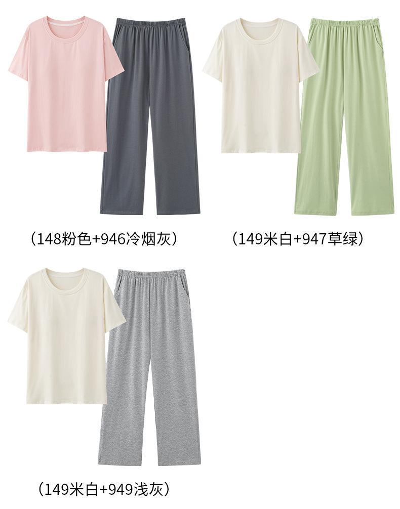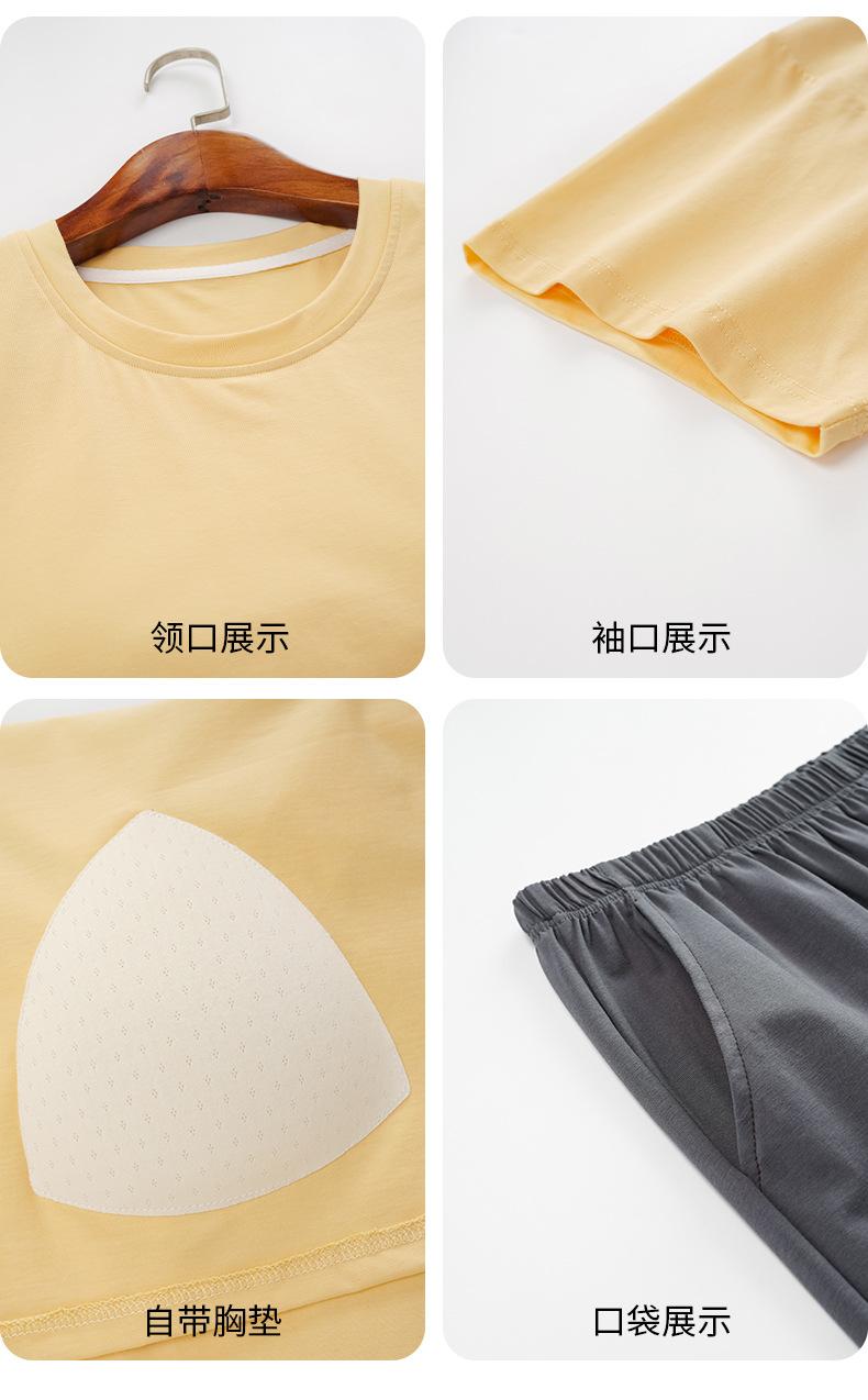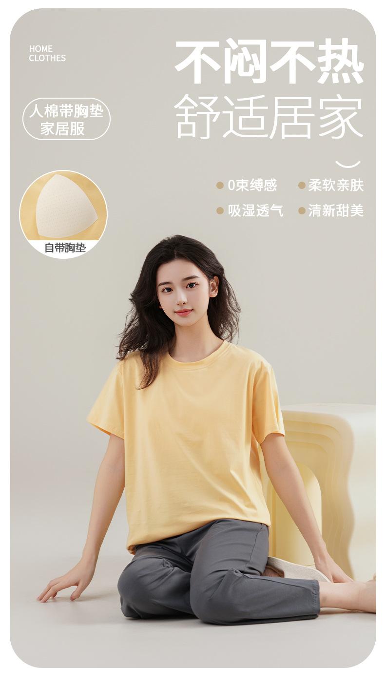 Pijama de Verano con Almohadillas para el Busto para Mujer, Jersey Modal de Manga Corta con Pantalón, Conjunto Sencillo Casual Delgado para Exterior y para Casa
