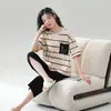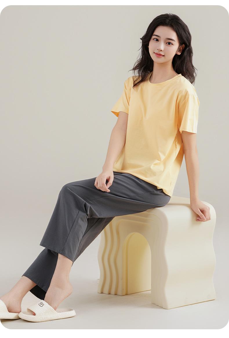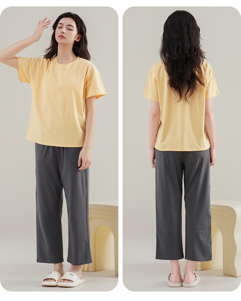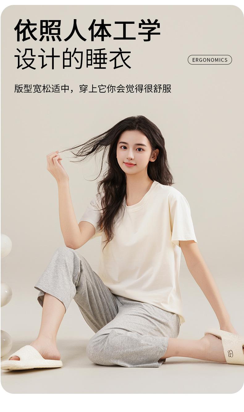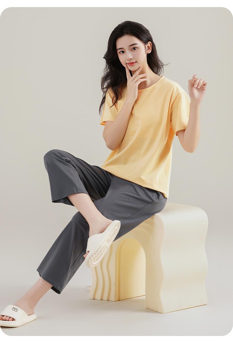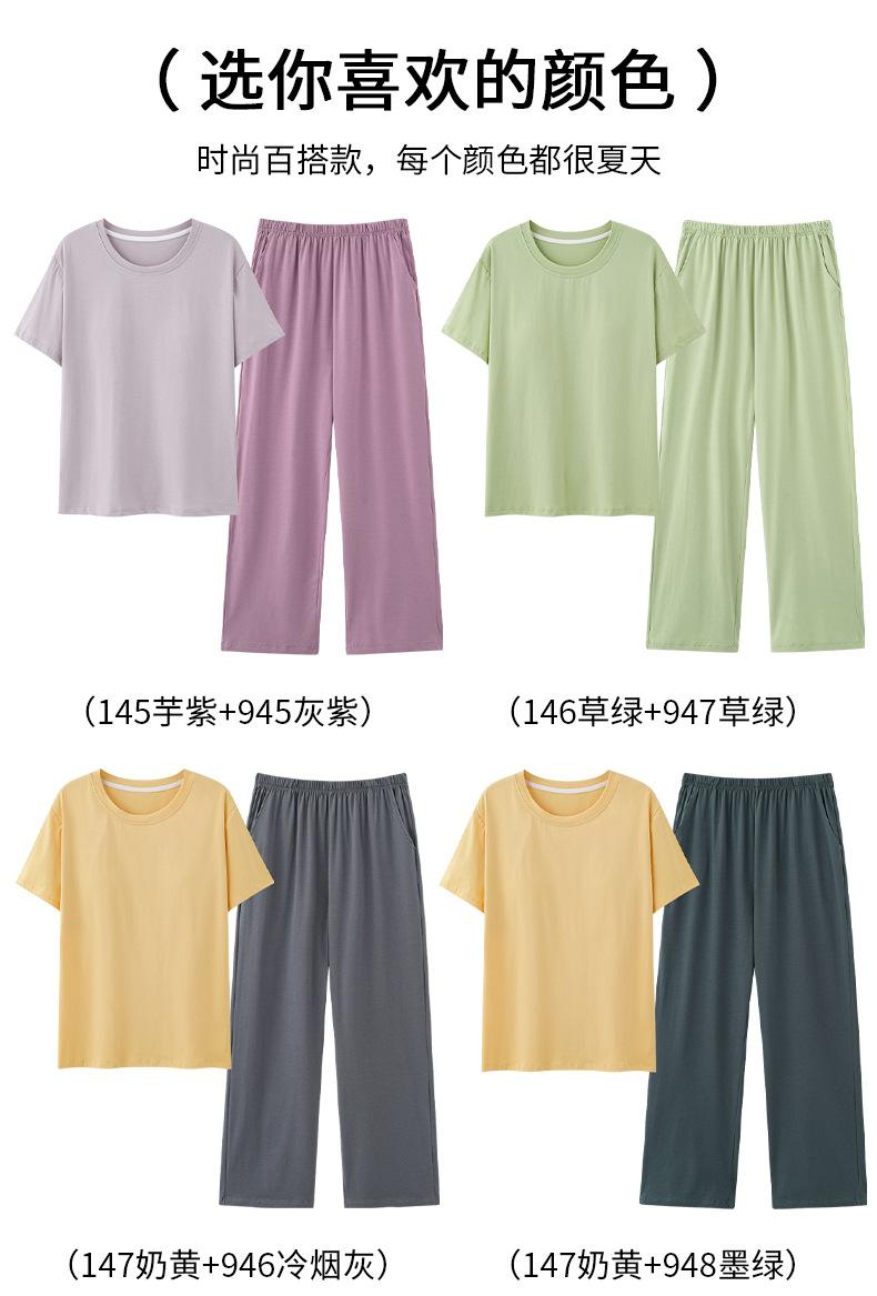 Pijama de Verano con Almohadillas para el Busto para Mujer, Jersey Modal de Manga Corta con Pantalón, Conjunto Sencillo Casual Delgado para Exterior y para Casa