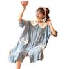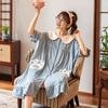 Pijama Nuevo de Algodón 100% de Alta Gama para Mujer Verano Estilo Coreano Lindo Camisón para Mujer Verano Largo hasta la Rodilla Largo Medio Ropa de Casa para Mujer