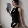 Club nocturno Sexy Encaje Negro Cuello en V Corte bajo Falda Slip para Mujer Picante Ajustada Abertura Alta Falda Cola de Pescado