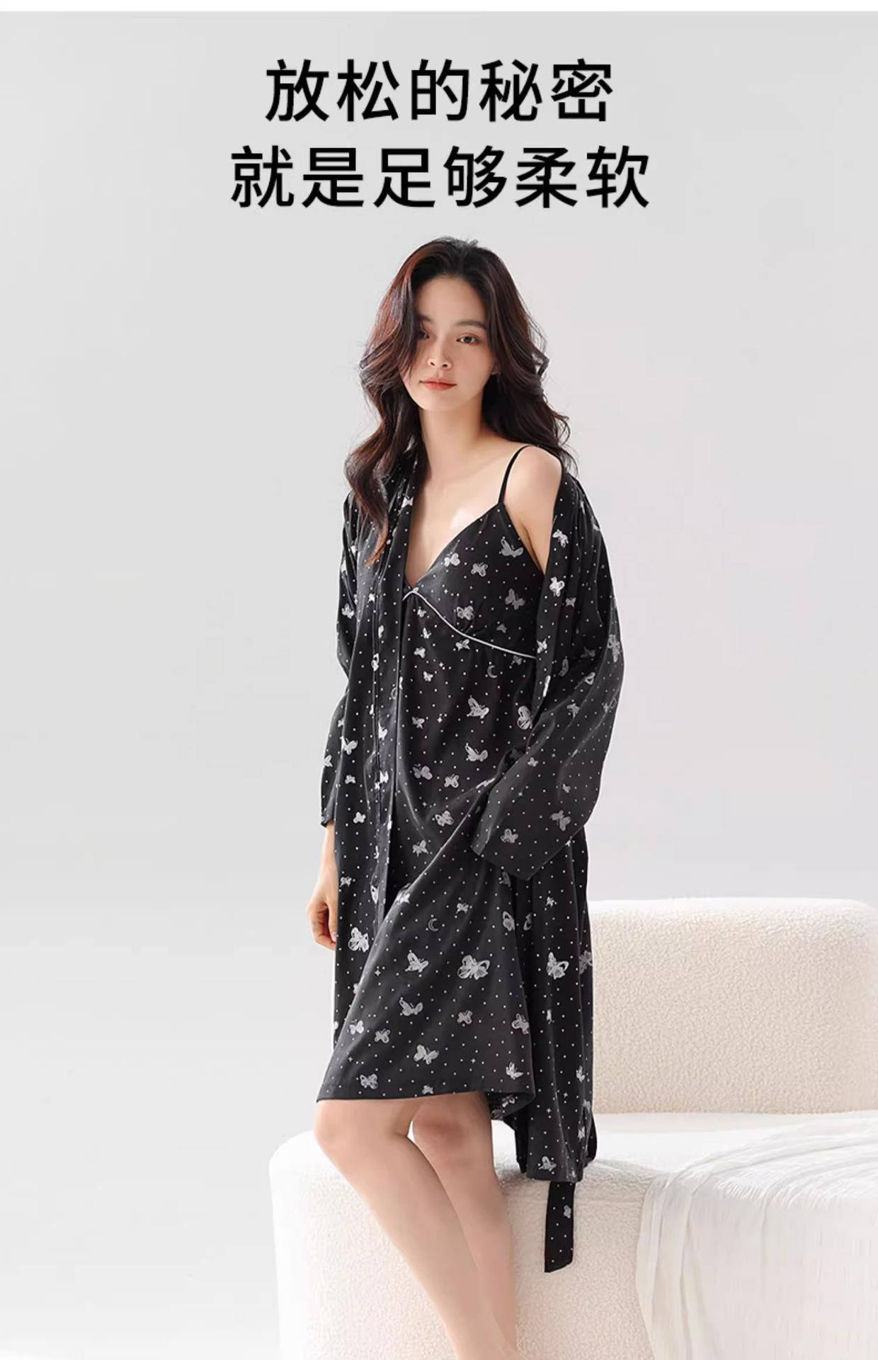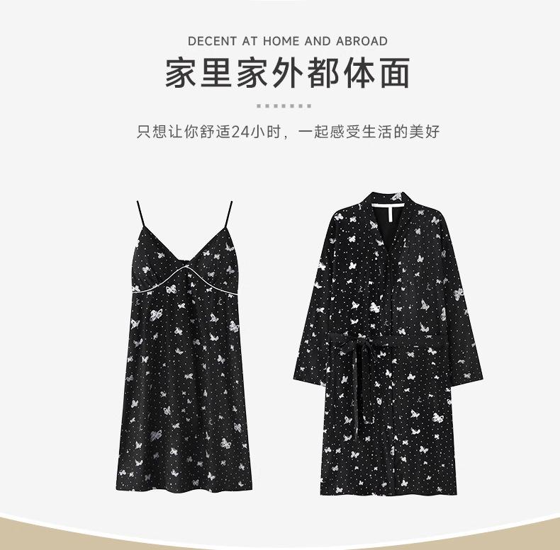 Camisón Longsha para Mujer Verano Delgado Tirantes Almohadilla para el Busto Camisón de Dos Piezas Seda de Hielo Camisola Bata Larga Camisón Ropa para el Hogar