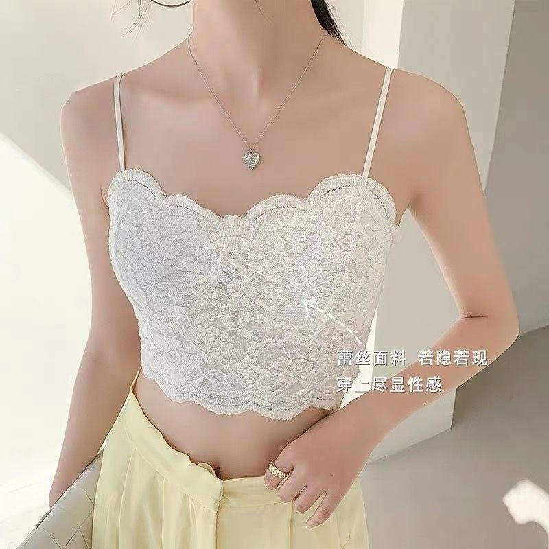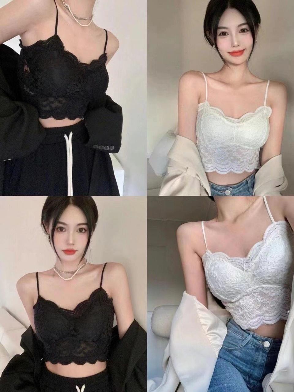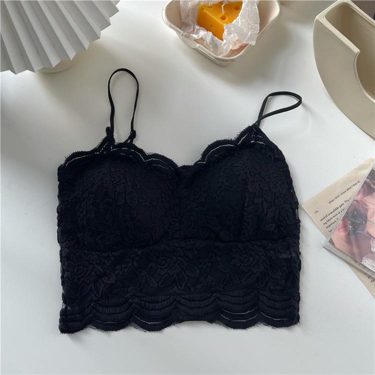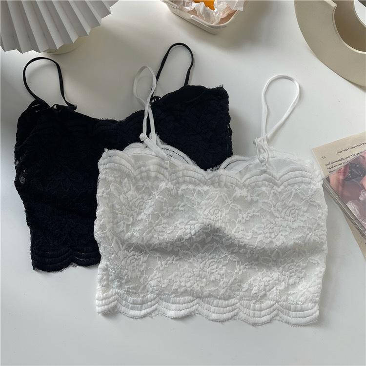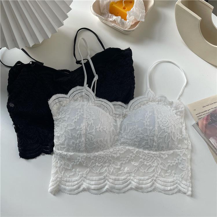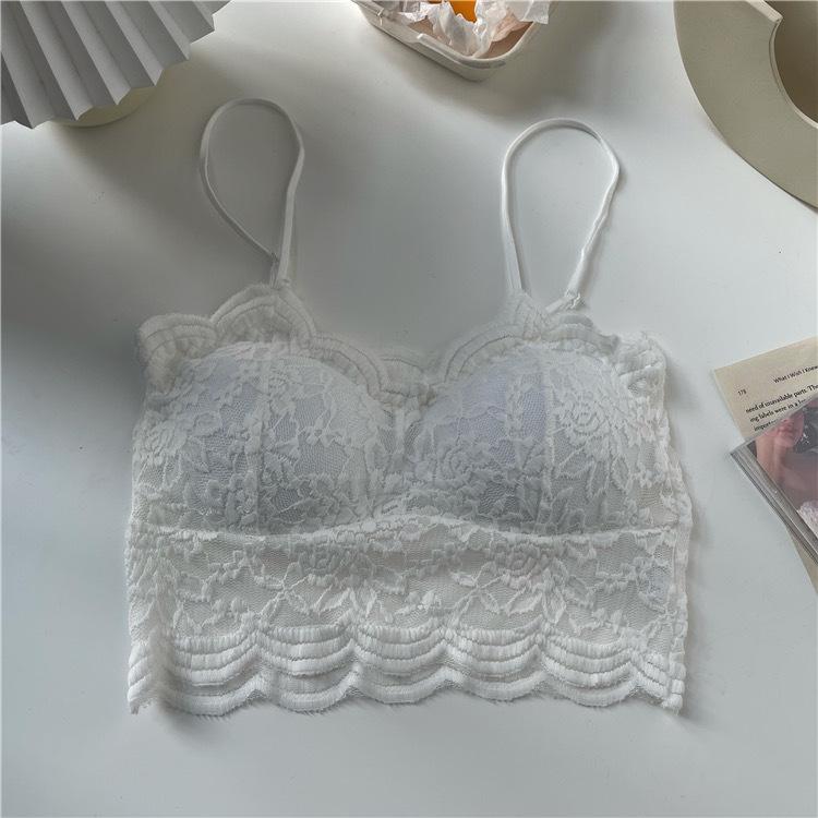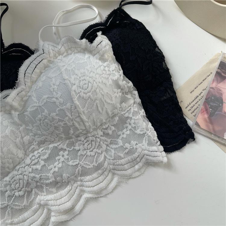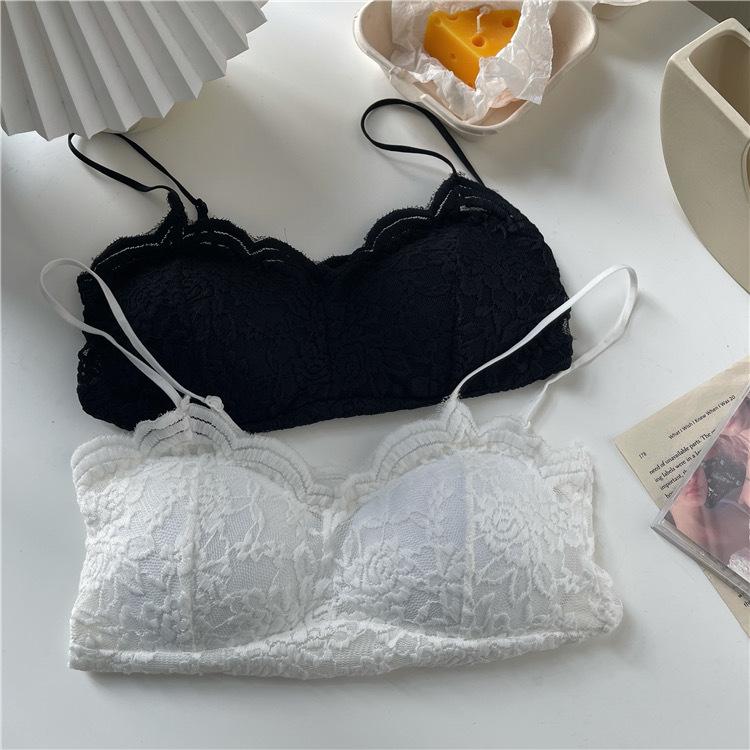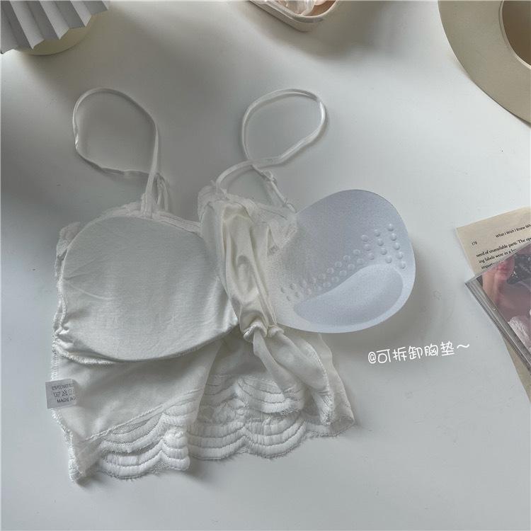 Camisola de Encaje Estilo Francés Sujetador Sexy para Niña Interior Pecho Pequeño Push-up Ropa Interior Sin Aro de Acero Hermosa Espalda Top Tubo