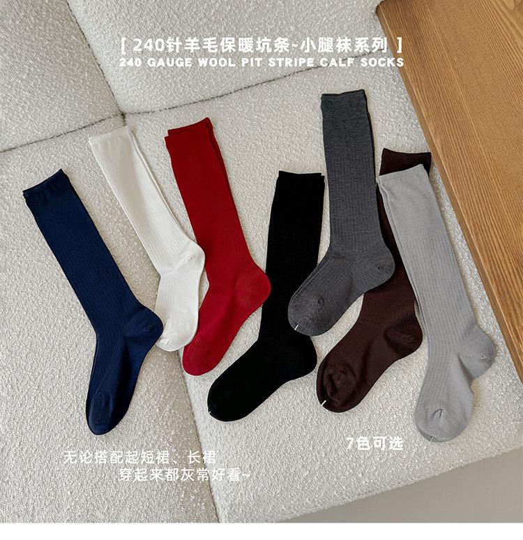 Calcetines para mujer Goodfa 2025 para otoño e invierno, calcetines de mujer de lana fina hilada de alta densidad de 240 agujas, calcetines acanalados hasta la pantorrilla/calcetines hasta el muslo