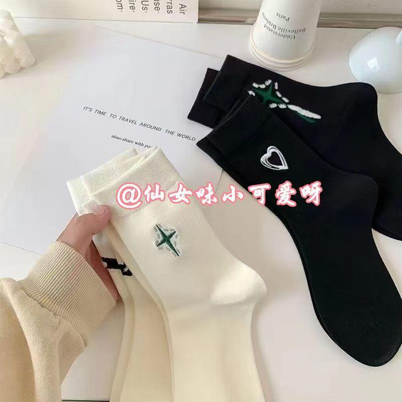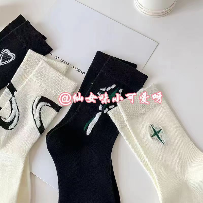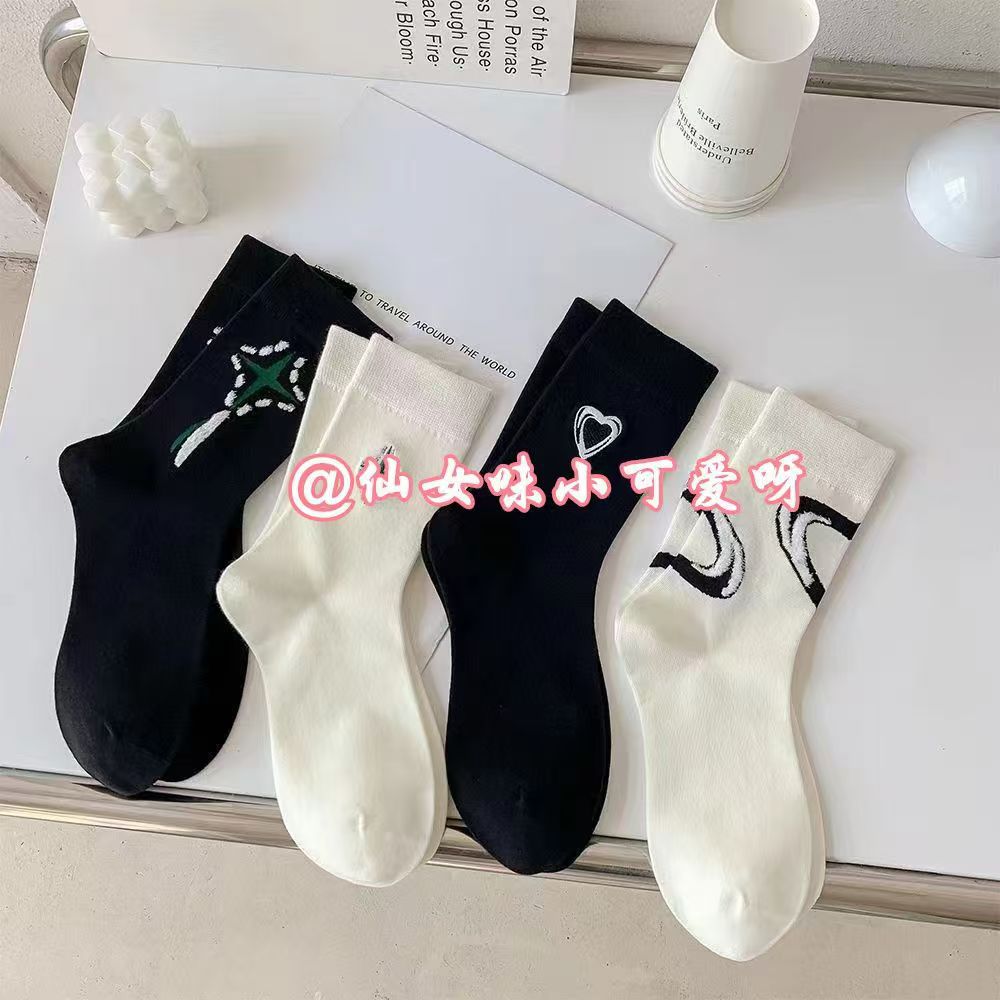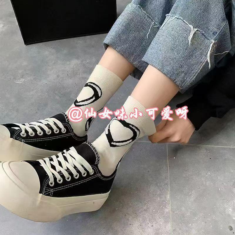 Calcetines para Mujer Personalizados Estilo Deportivo Blanco y Negro Calcetines para Mujer Estudiantes Estilo Coreano Japonés Modernos Combinan con Todo Calcetines de Amor